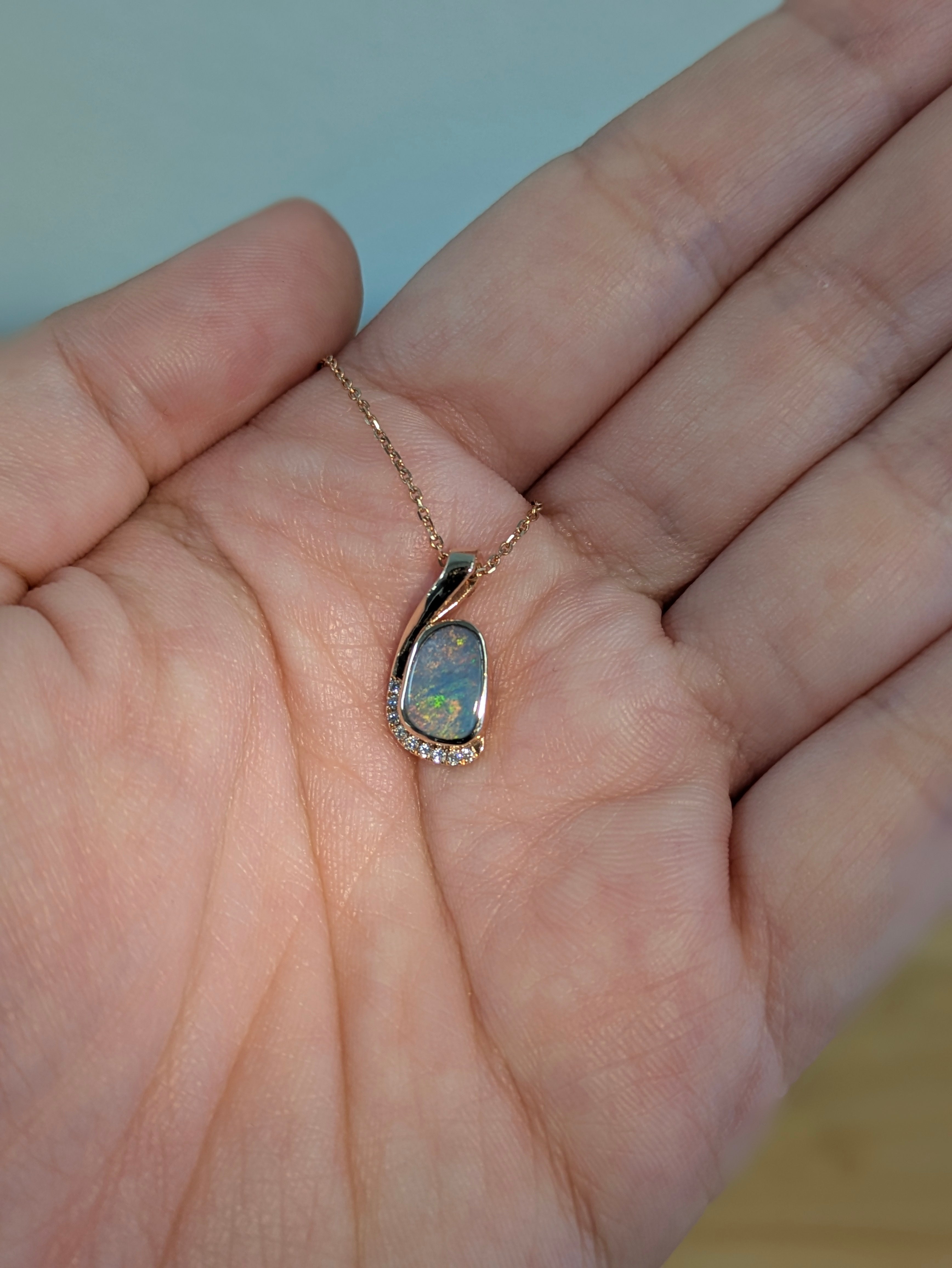 Meet Elara, a captivating ring that mirrors the beauty of nature’s magic. Its oval Boulder Opal glows with a kaleidoscope of colors, each stone uniquely enchanting. Set in 14k solid rose gold, the design radiates soft warmth and modern elegance. A timeless piece that feels both dreamy and effortlessly chic.