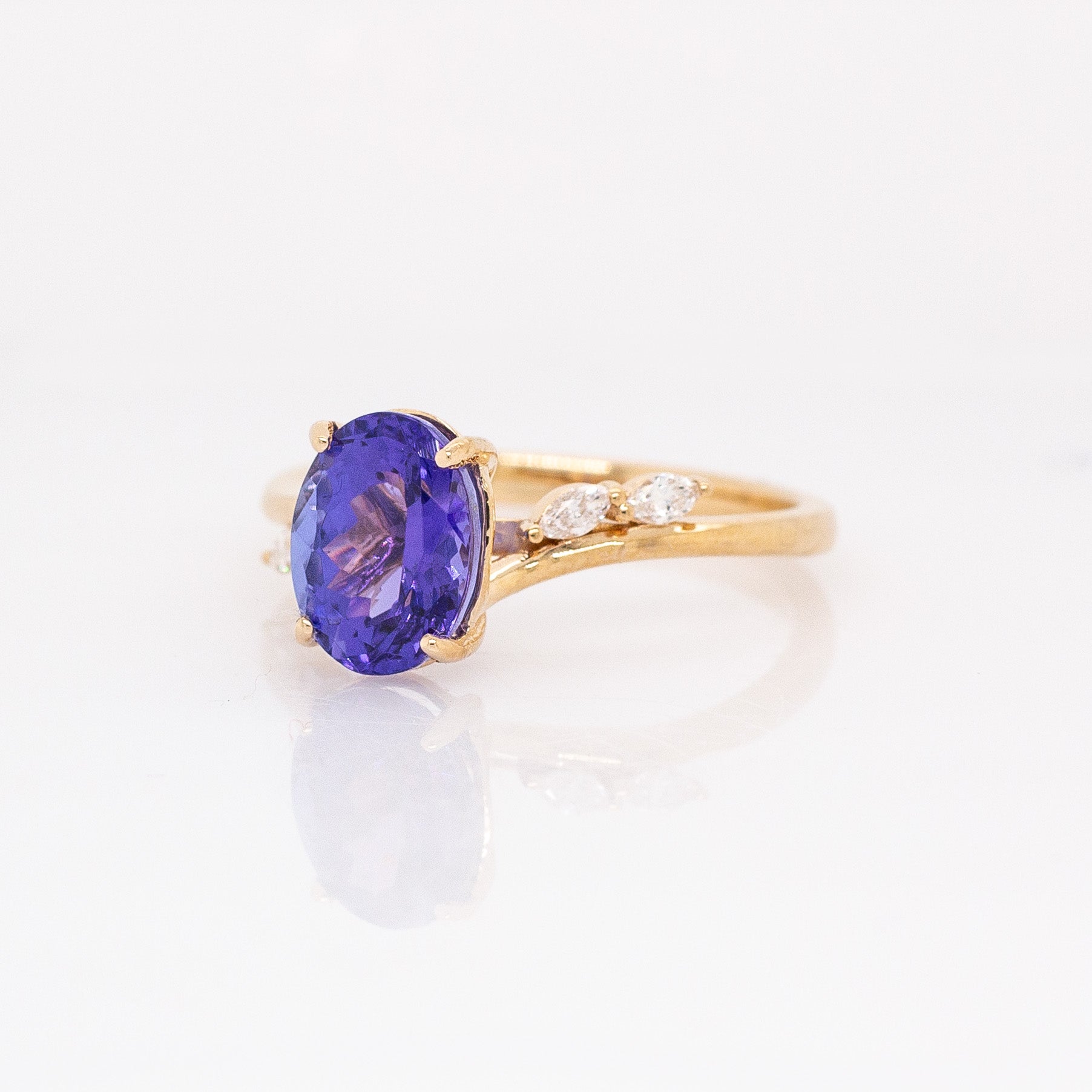 Ziya 14k Solid Gold Tanzanite Ring with Natural Diamond Accents | Oval 9x7mm