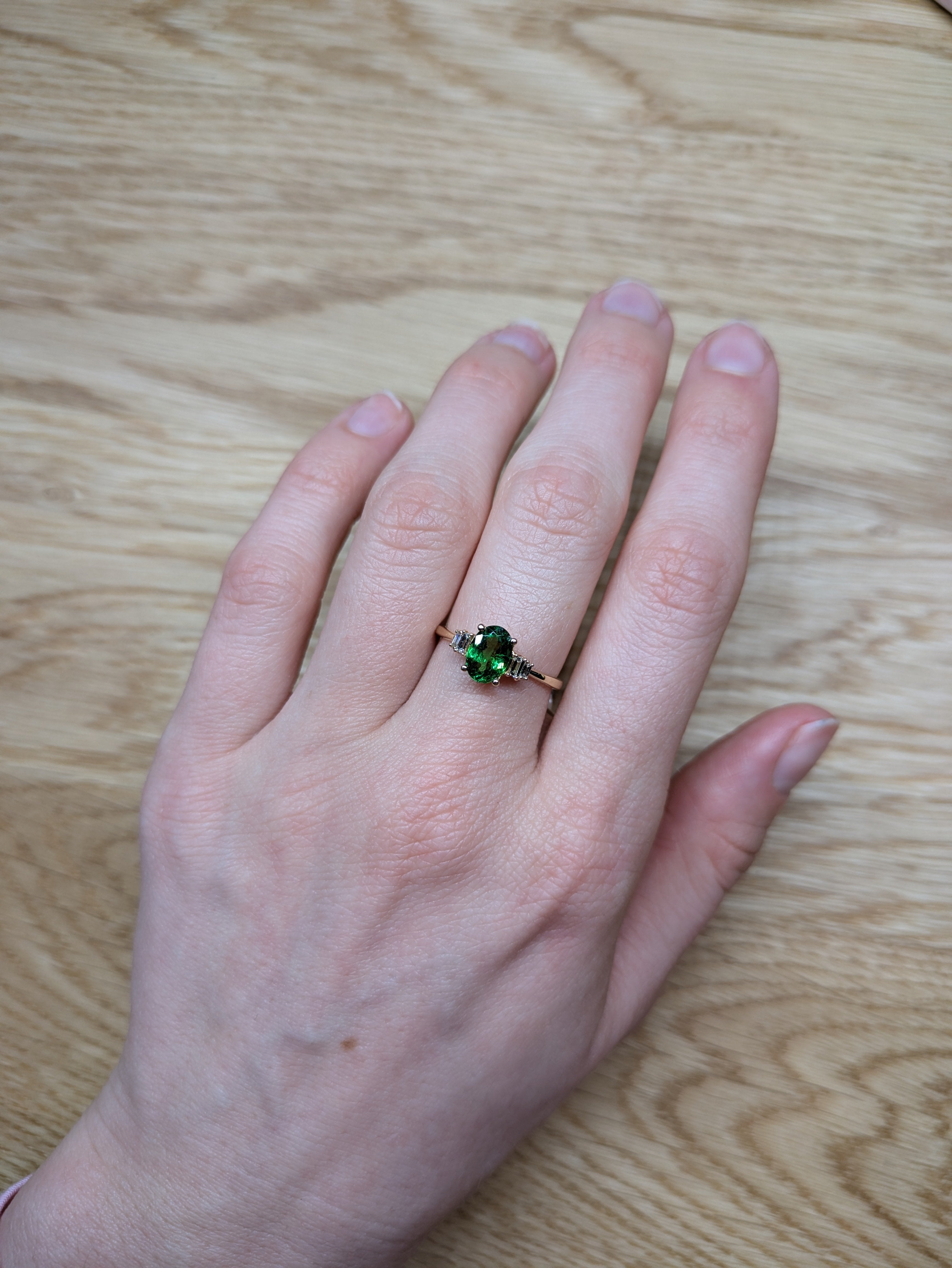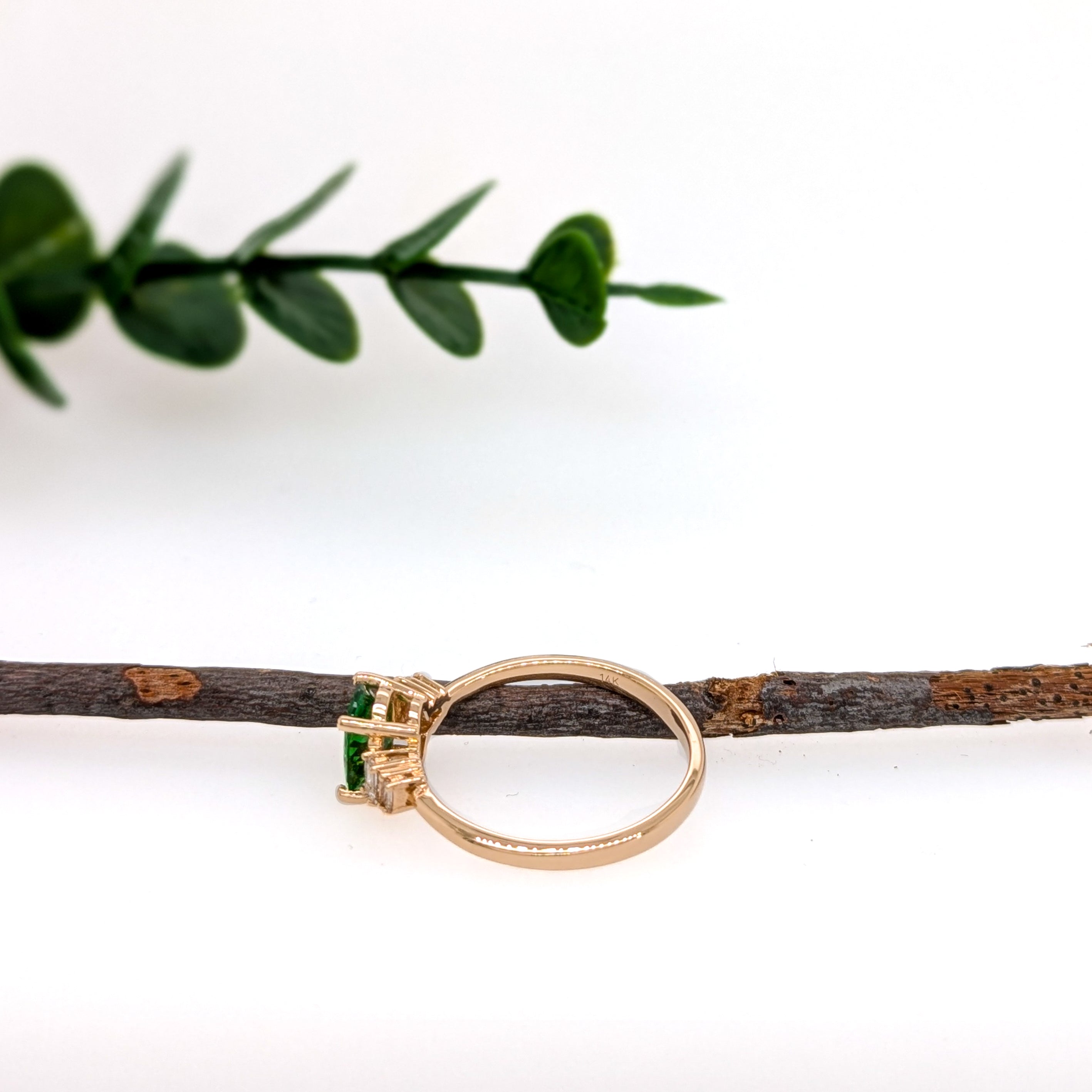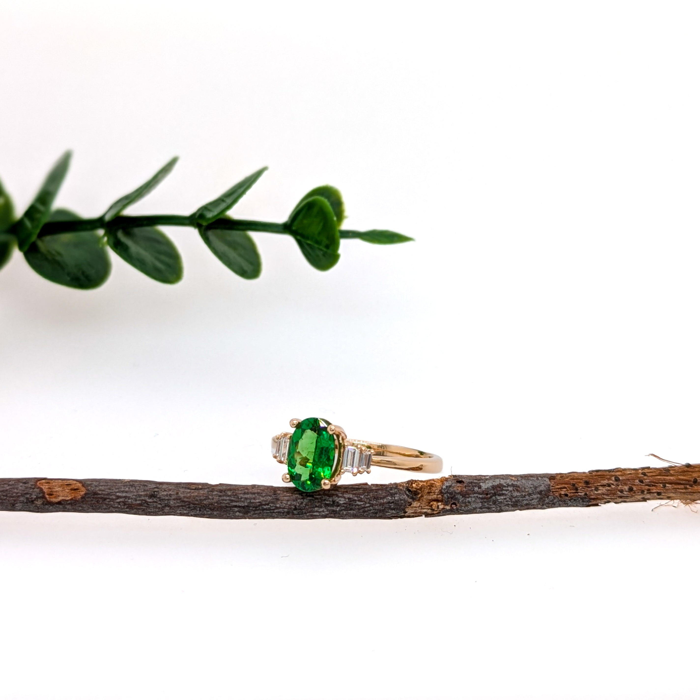 Elly 14k Solid Yellow Gold Tsavorite and Diamond Ring | Oval 8x6mm