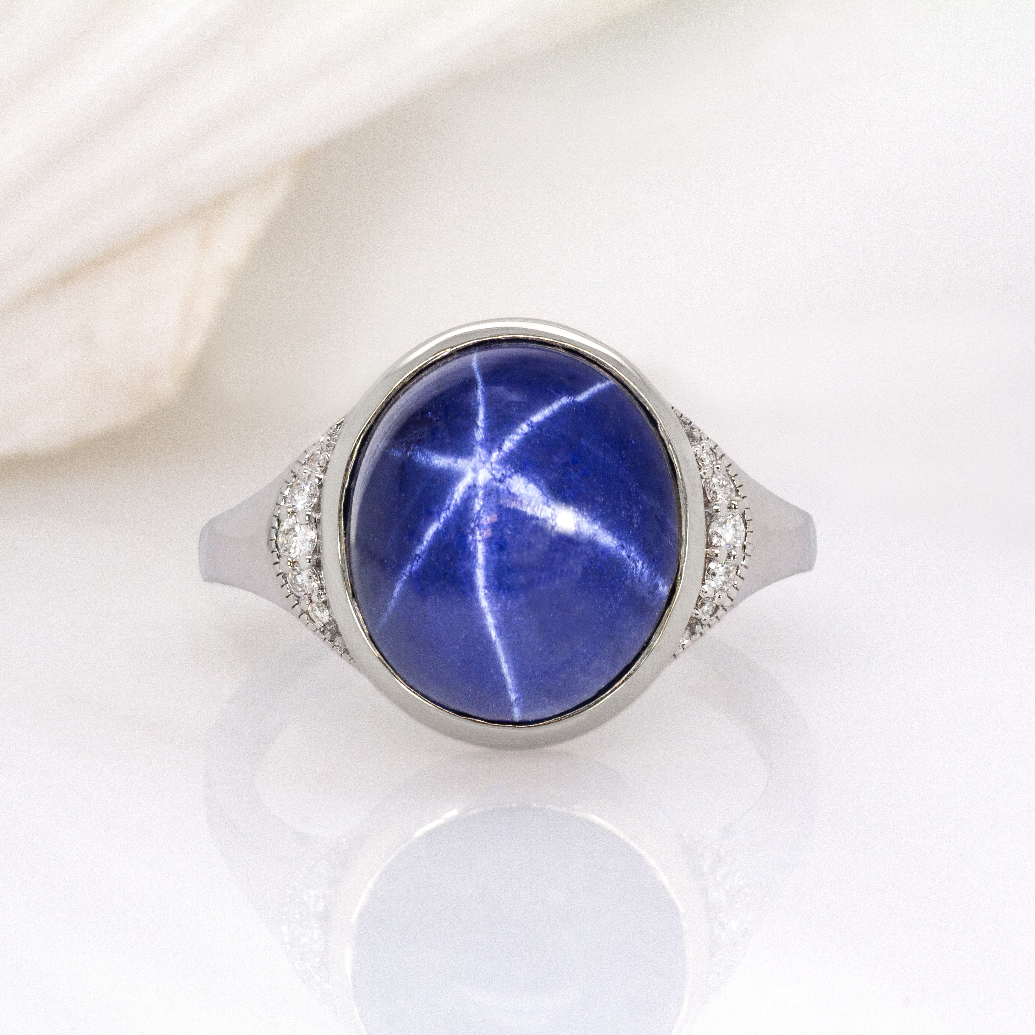 Ariana 14K Solid White Gold Star Sapphire and Diamond Ring | OV 13x11mm