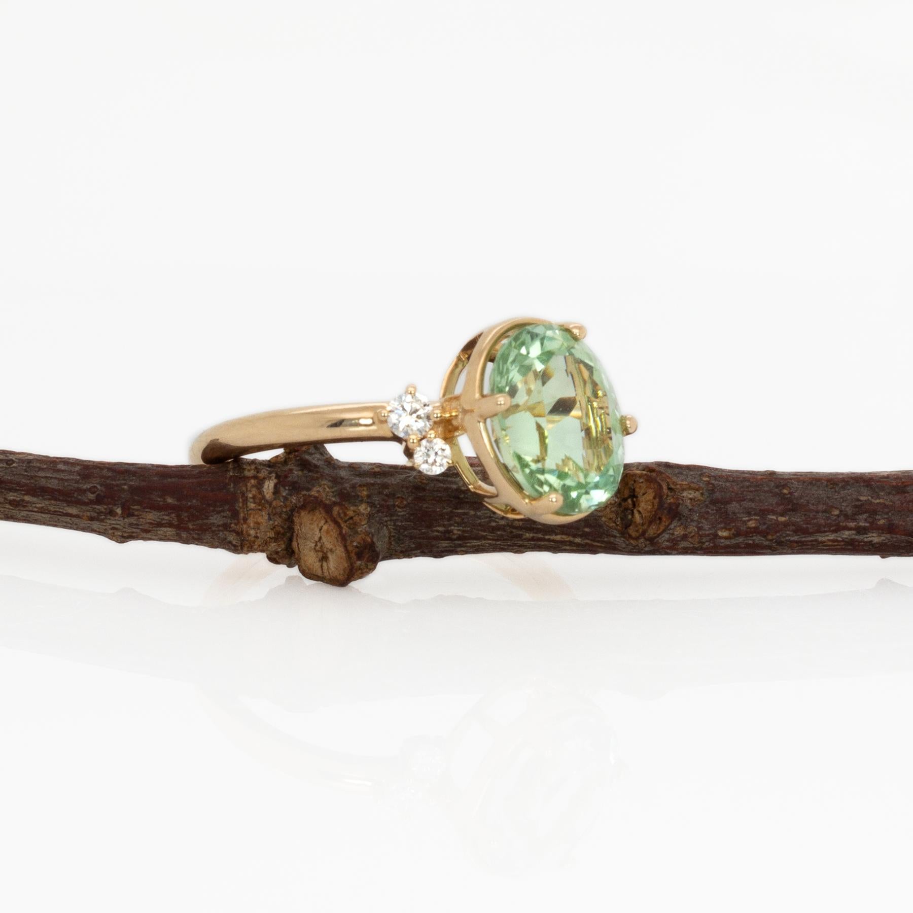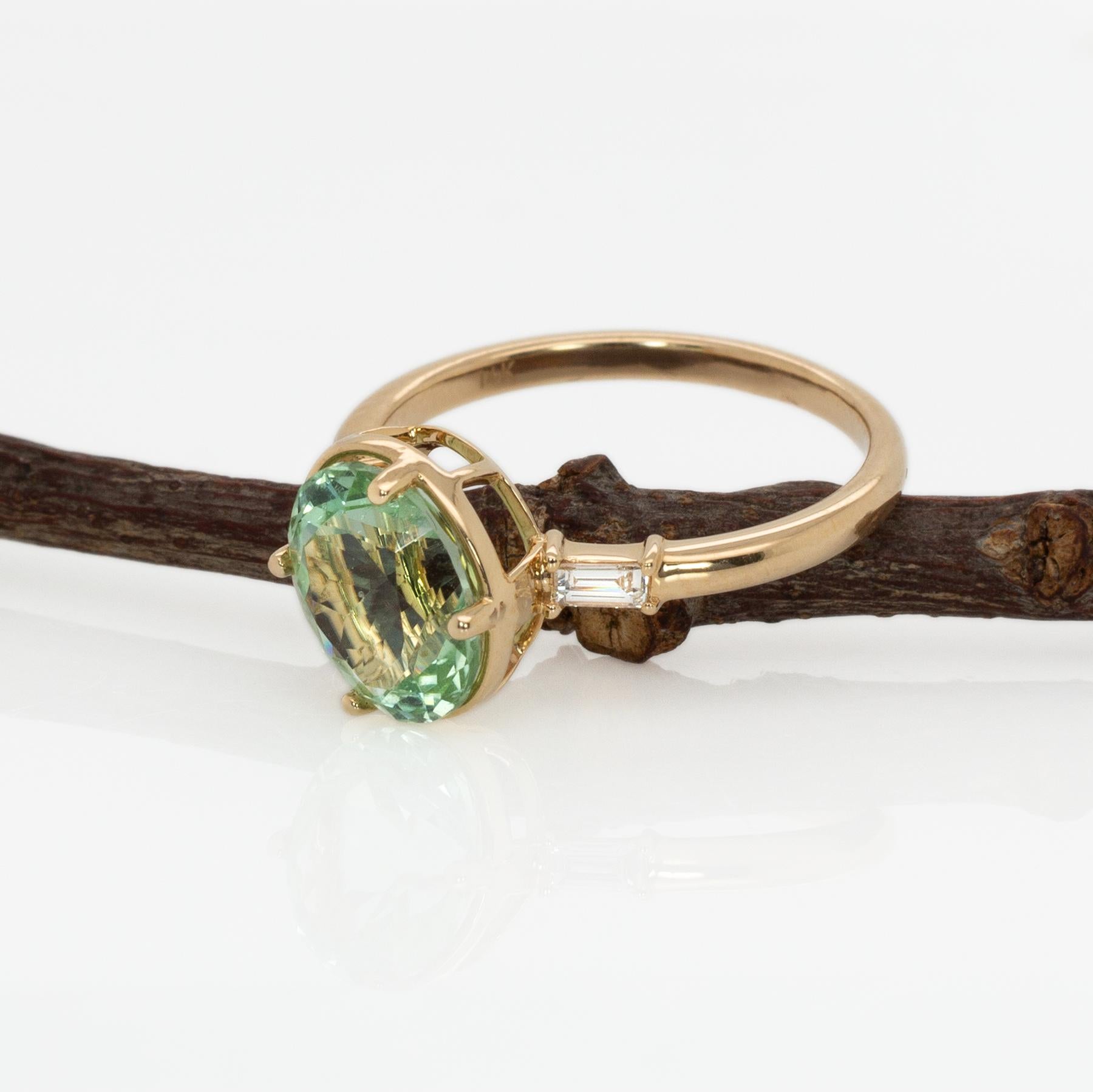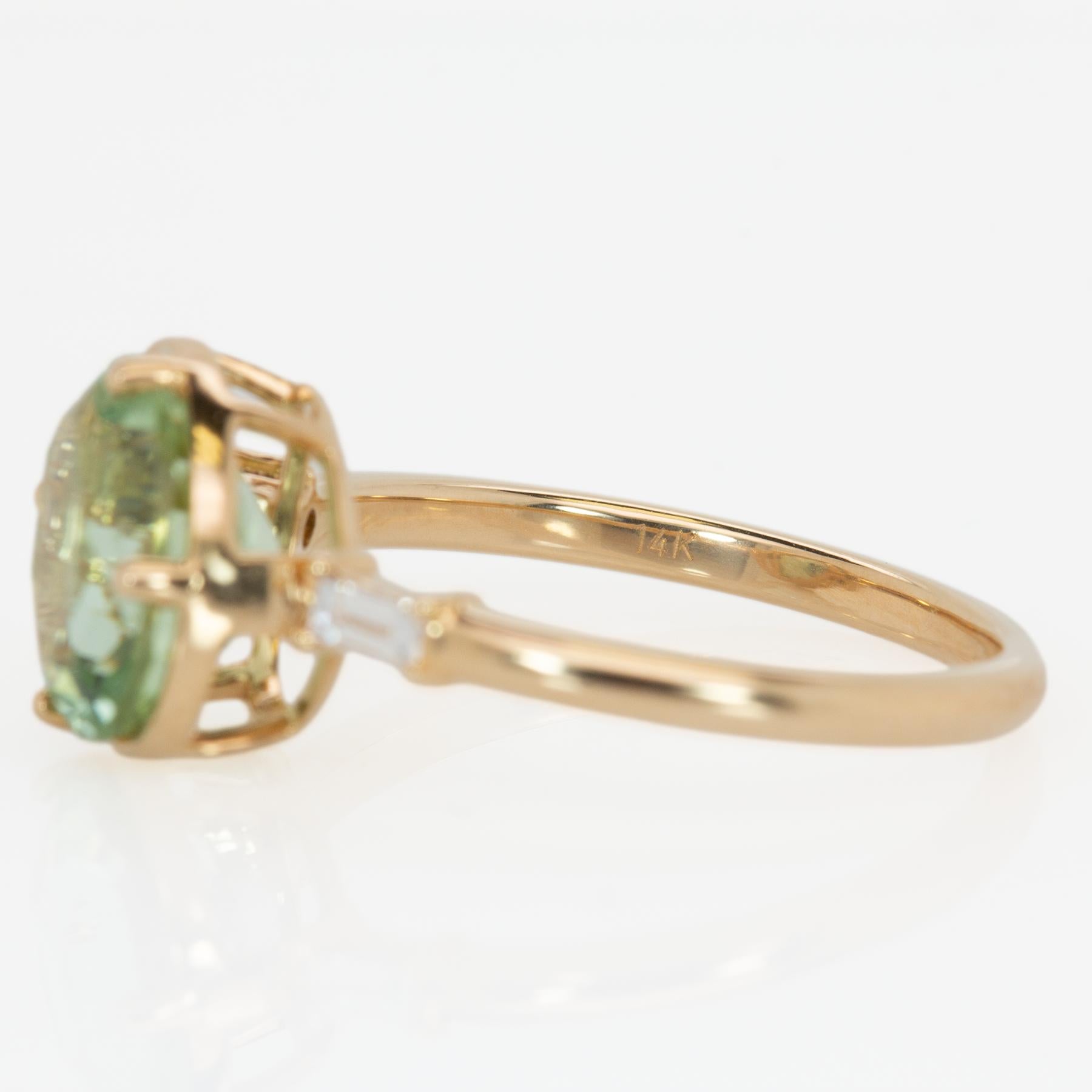 Eirlys Solid 14k Gold Green Tourmaline Ring with Natural Diamond Accents, 9x7mm