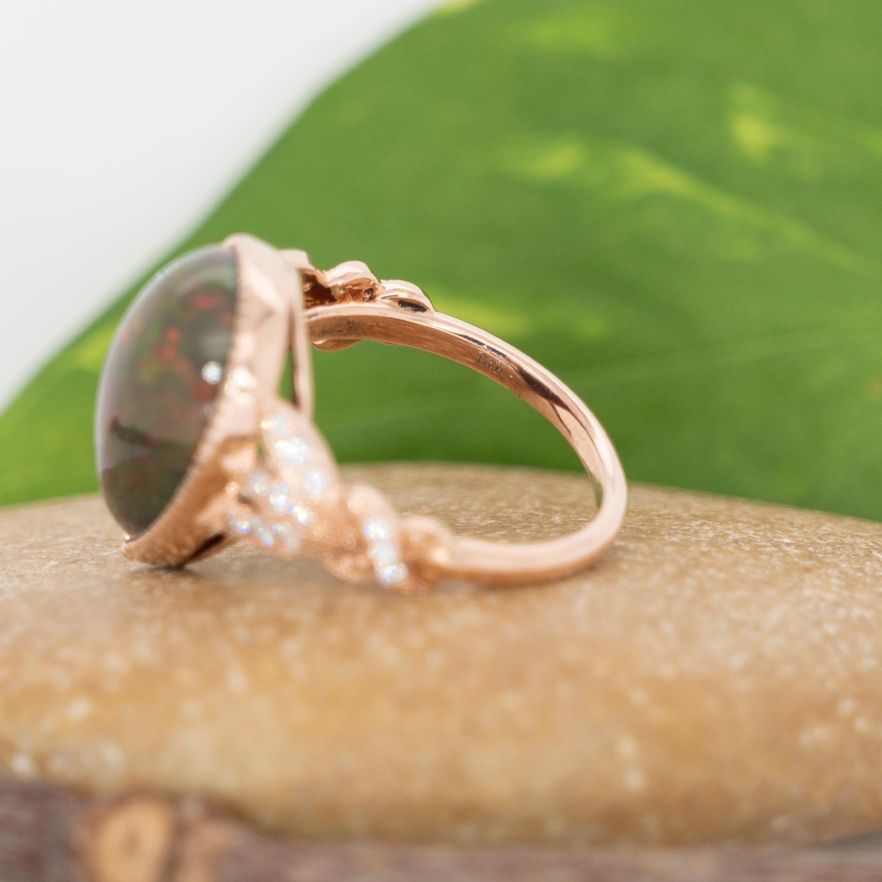 Briar Solid 14K Gold Ethiopian Black Opal Ring with Natural Diamonds Accents