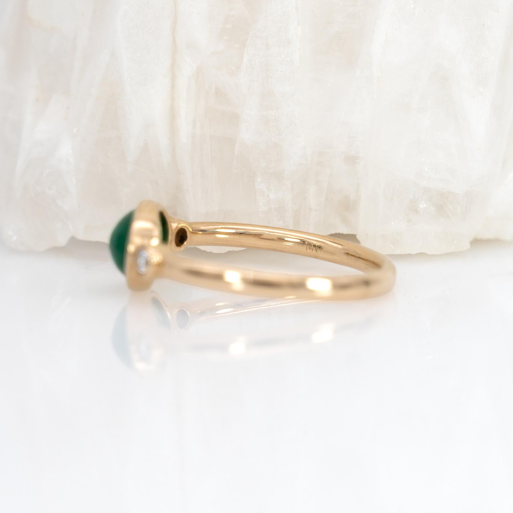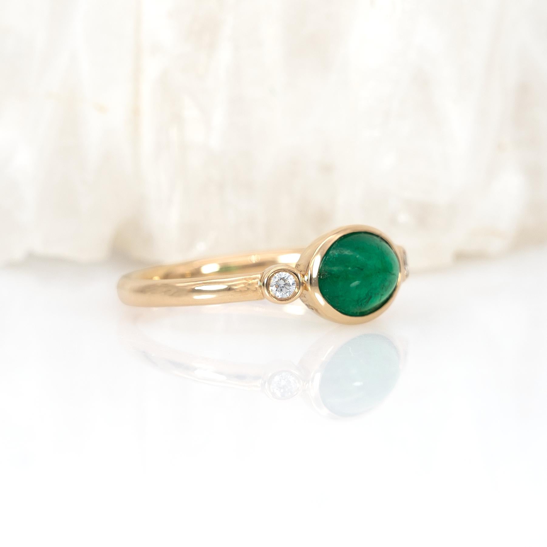 Set in solid 14K gold, the vibrant emerald is beautifully complemented by sparkling natural diamond accents.