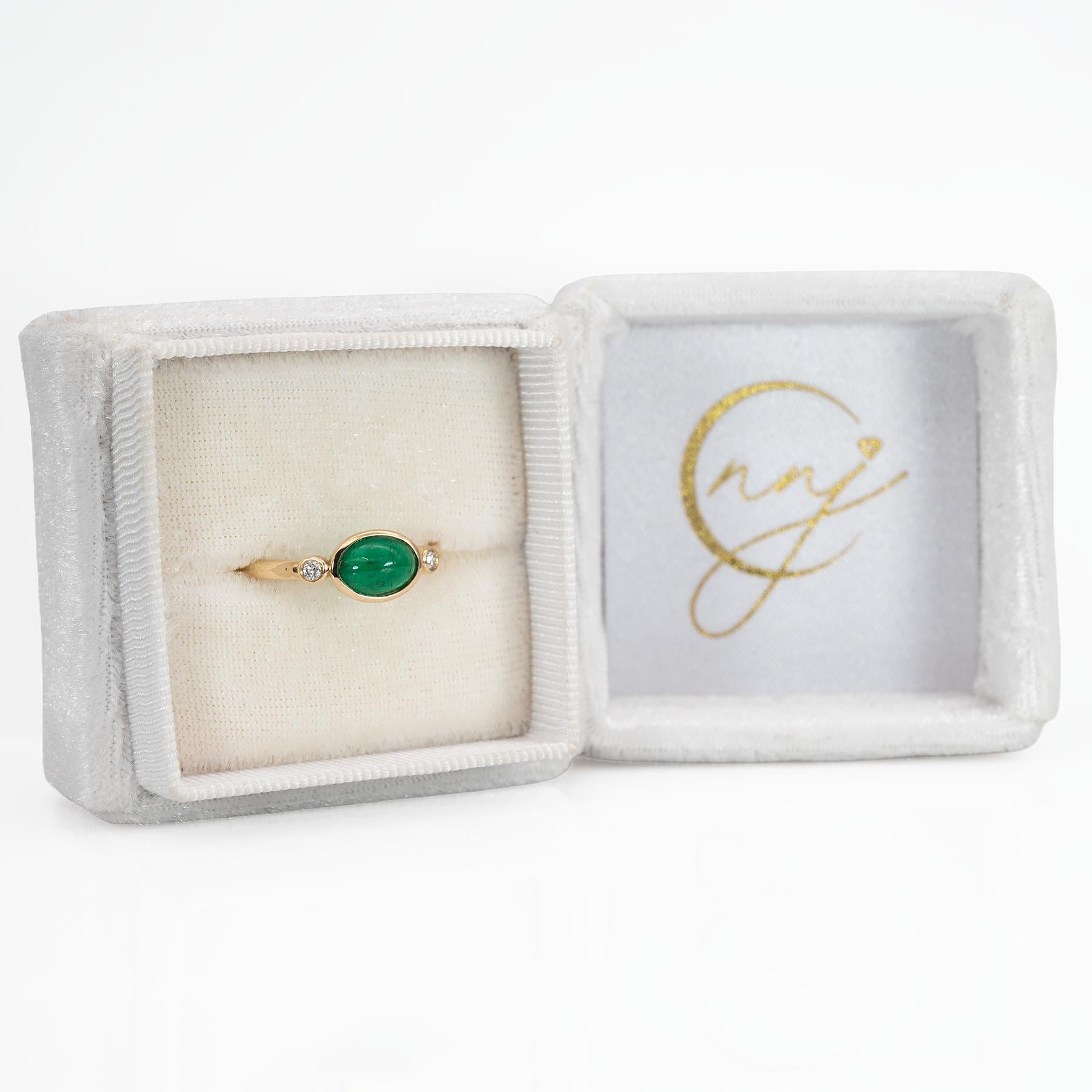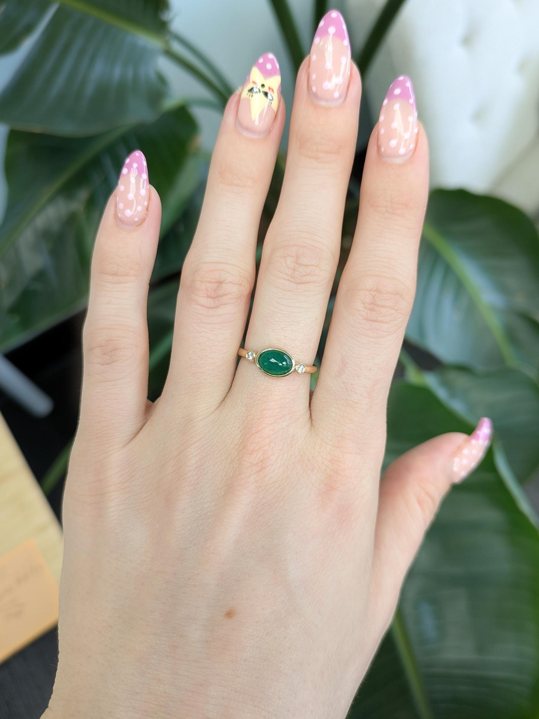 1.2ct Zambian Emerald Ring with Natural Diamonds Accents: Solid 14K Gold, 8x6mm
