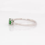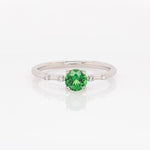 This minimalist tsavorite garnet ring features a vibrant round-cut gemstone that adds a fresh pop of green. Delicate natural diamond accents bring subtle sparkle without overwhelming the design. Crafted in 14k solid white gold, its clean lines and understated elegance make it perfect for everyday wear or special occasions. A timeless piece that balances simplicity with refined luxury.