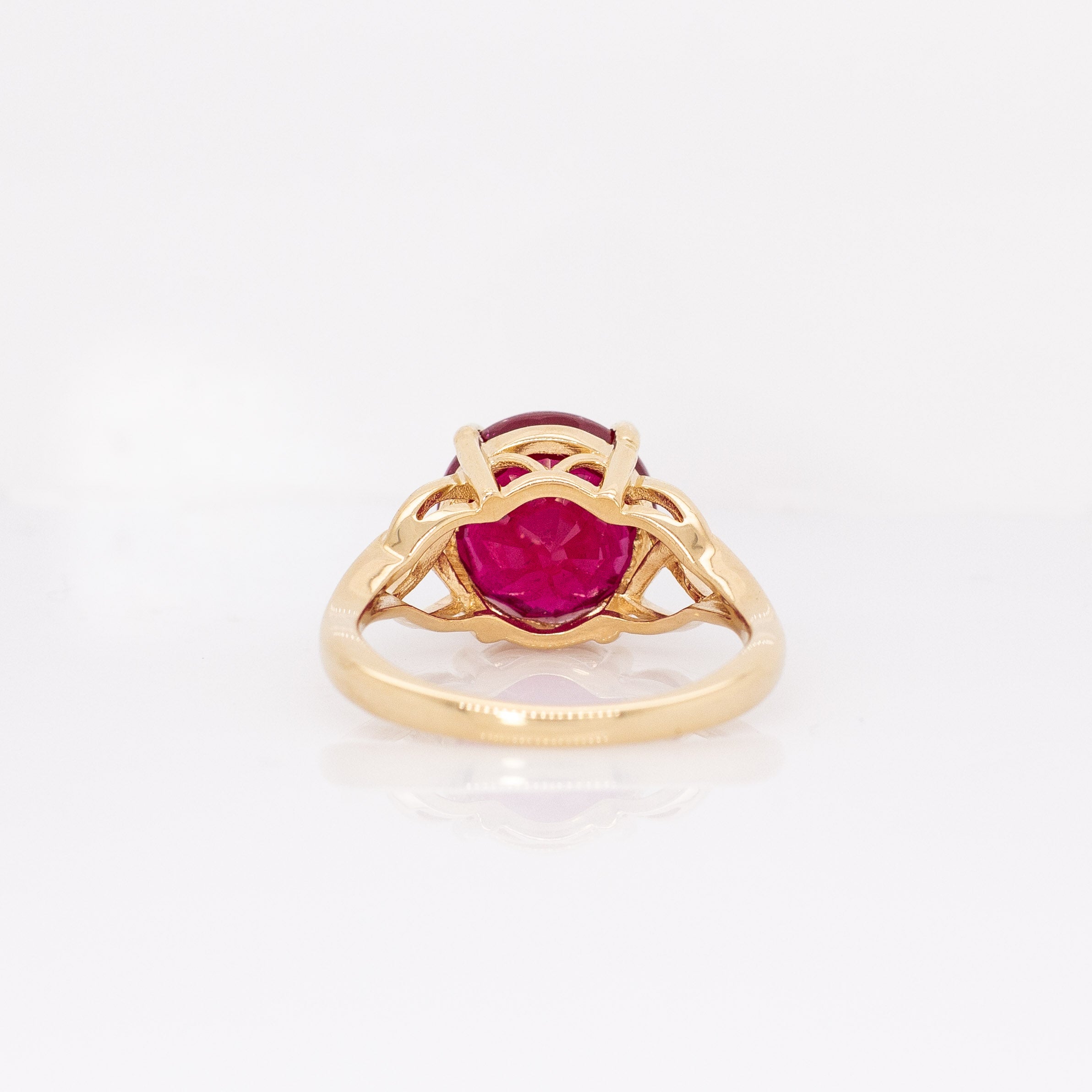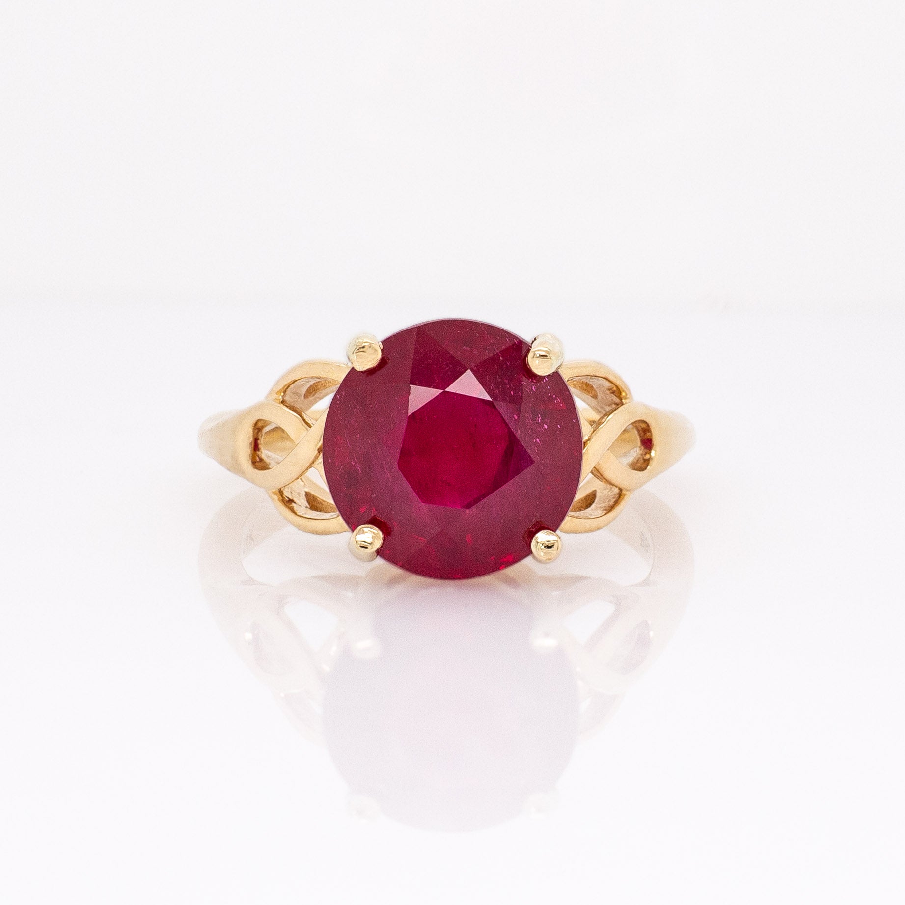 This captivating ring features a radiant round red ruby set in 14k solid yellow gold, exuding timeless elegance and fiery charm. The warm golden hue beautifully complements the ruby’s deep crimson glow, symbolizing passion and strength. Its classic design makes it perfect for both everyday wear and special occasions. A true embodiment of love and luxury in one stunning piece.