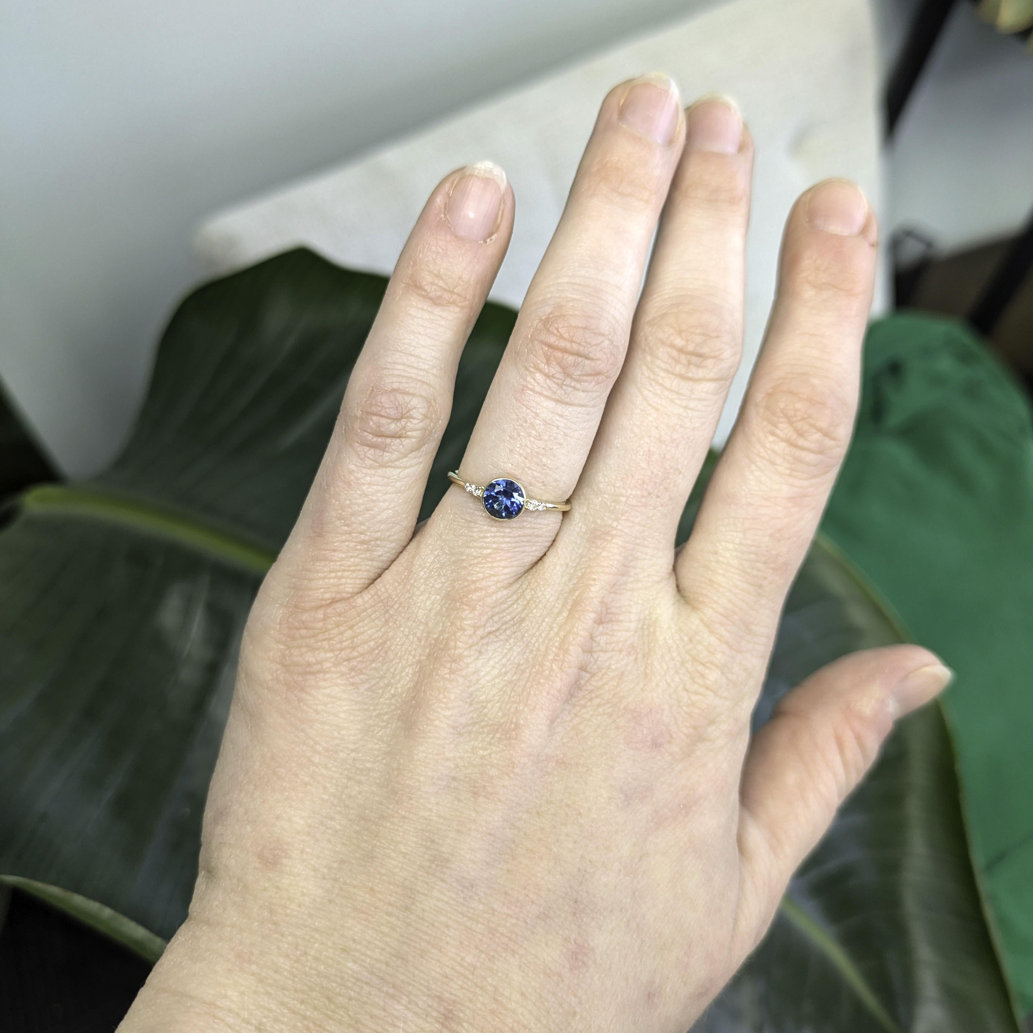 Hardika Solid 14k Gold Purple Garnet Ring with Natural Diamonds Accents, 7mm