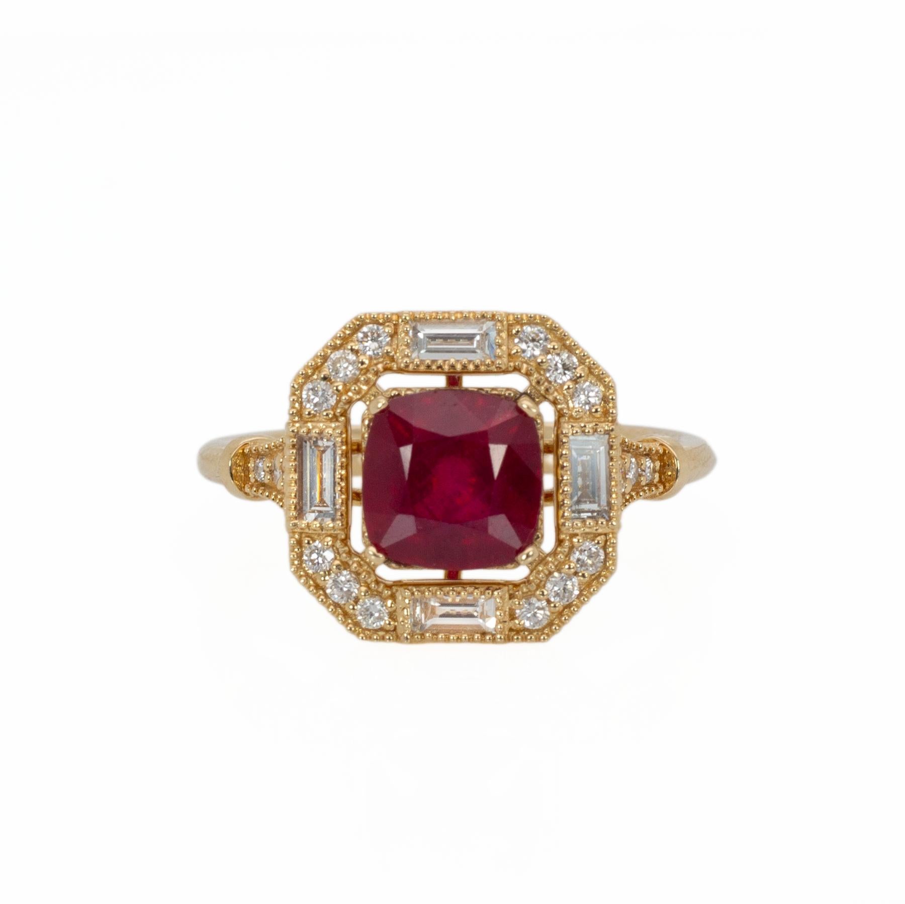 Mimi Solid 14k Gold Madagascar Ruby Ring with Natural Diamonds Accents, 6mm