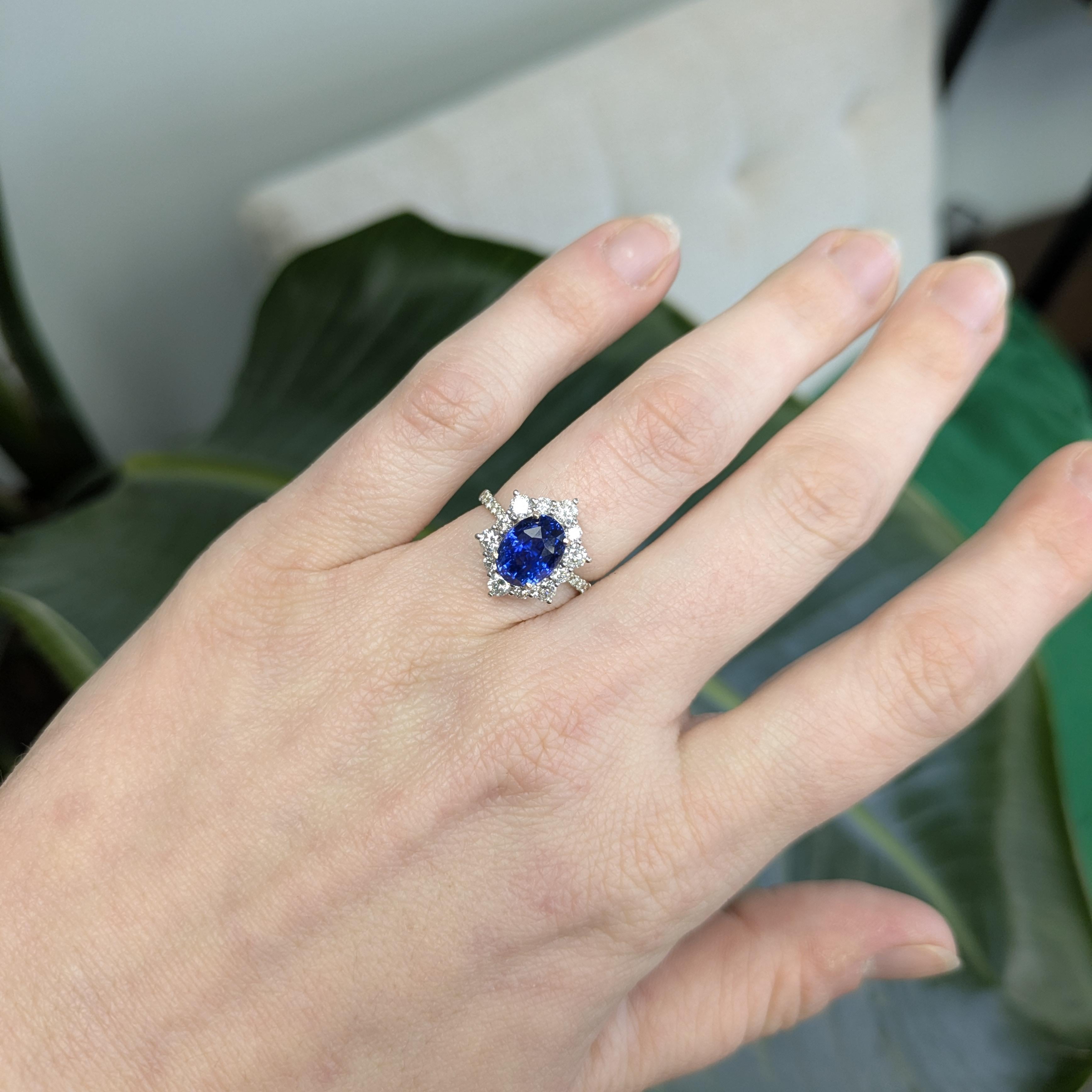 Irmak Solid 14k Gold GIA Certified Blue Sapphire Ring with Natural Diamonds Accents, Oval 8x6mm