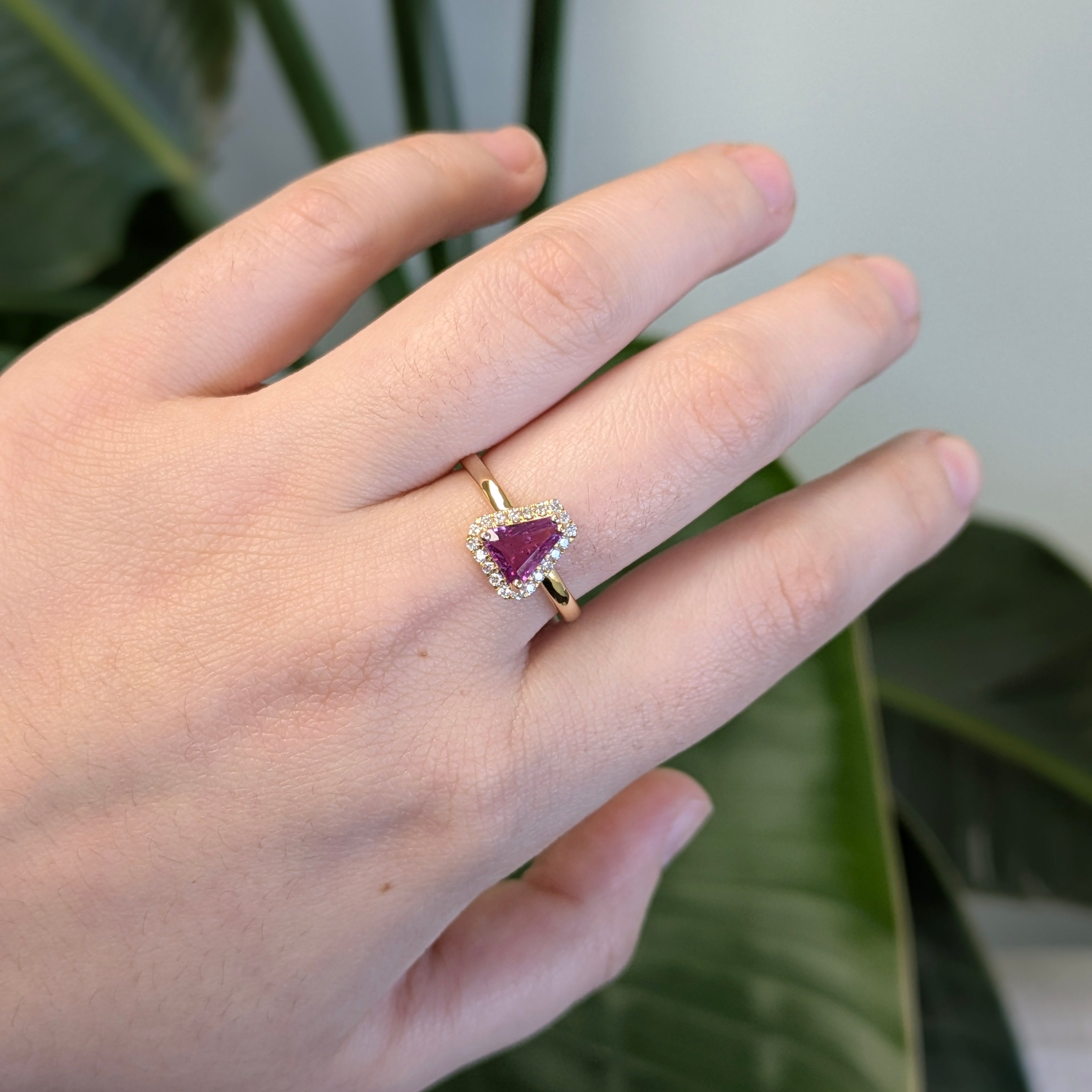 Suki 14k Solid Gold Purple Sapphire Ring with Natural Diamonds Accents | Trillion 8x7mm