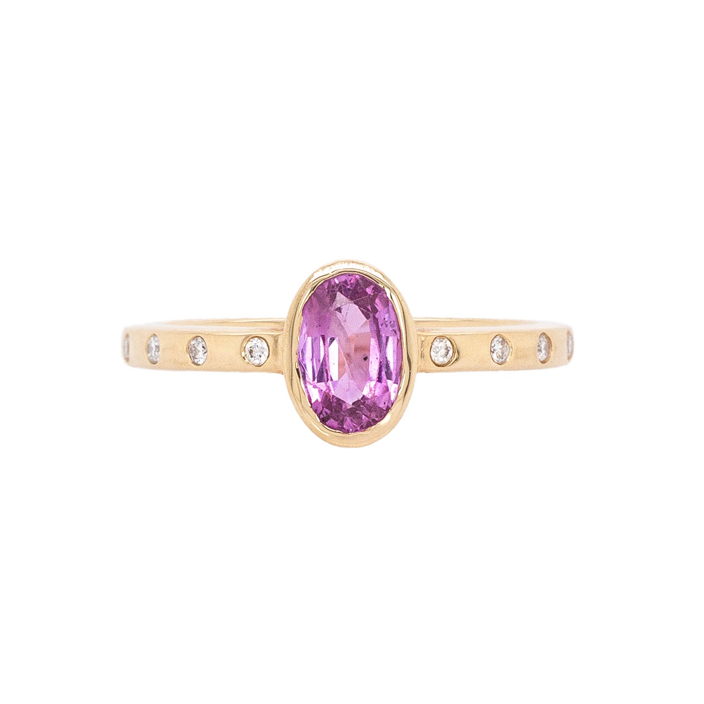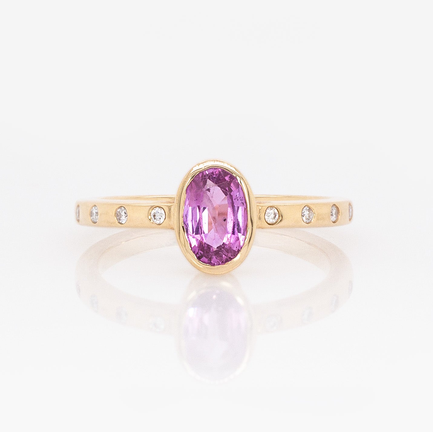 Vivia 14k Solid Gold Pink Sapphire Ring with Natural Diamonds Accents | Oval 7x5mm