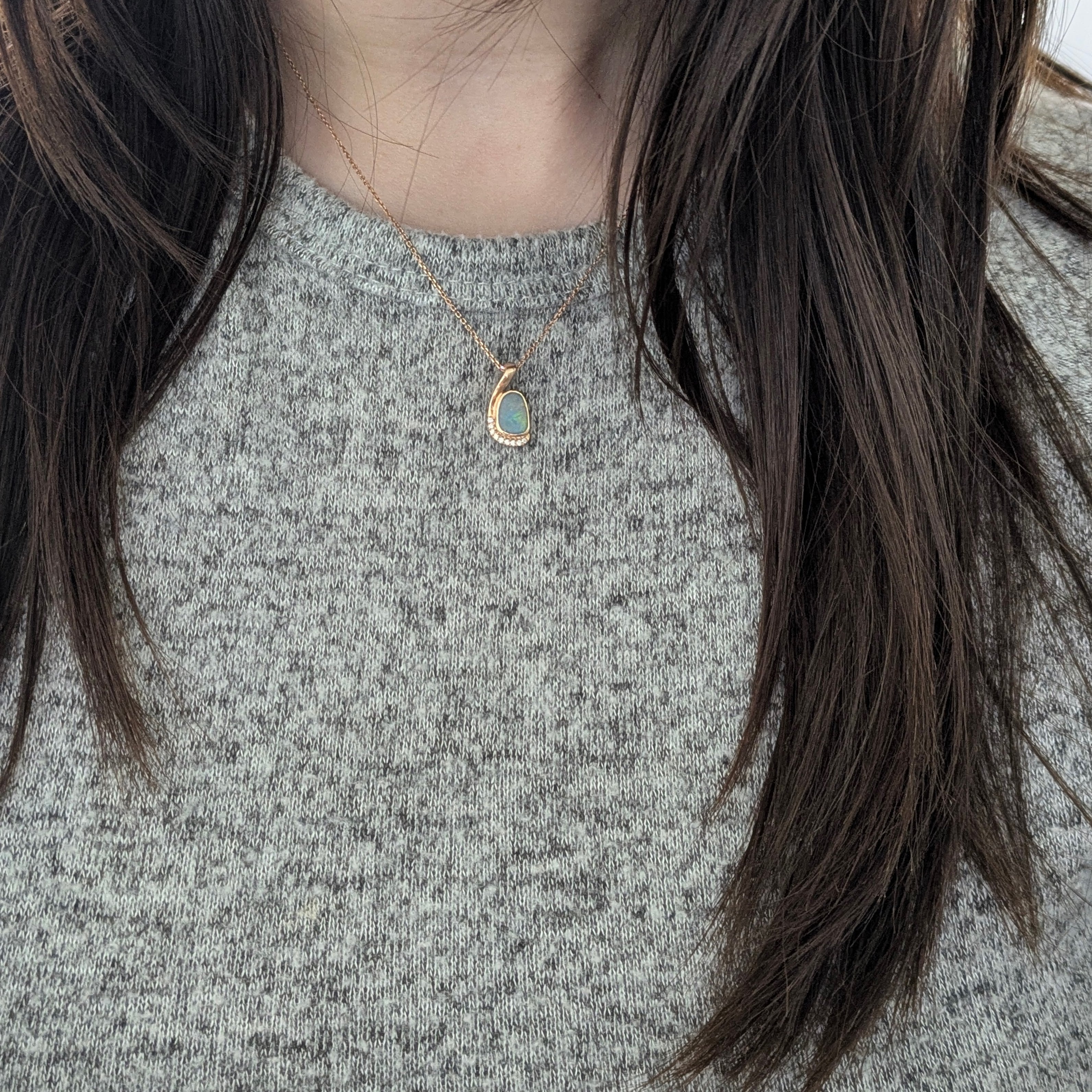 Ophelia Solid 14k Rose Gold Boulder Opal Pendant with Earth Mined Diamonds Accents