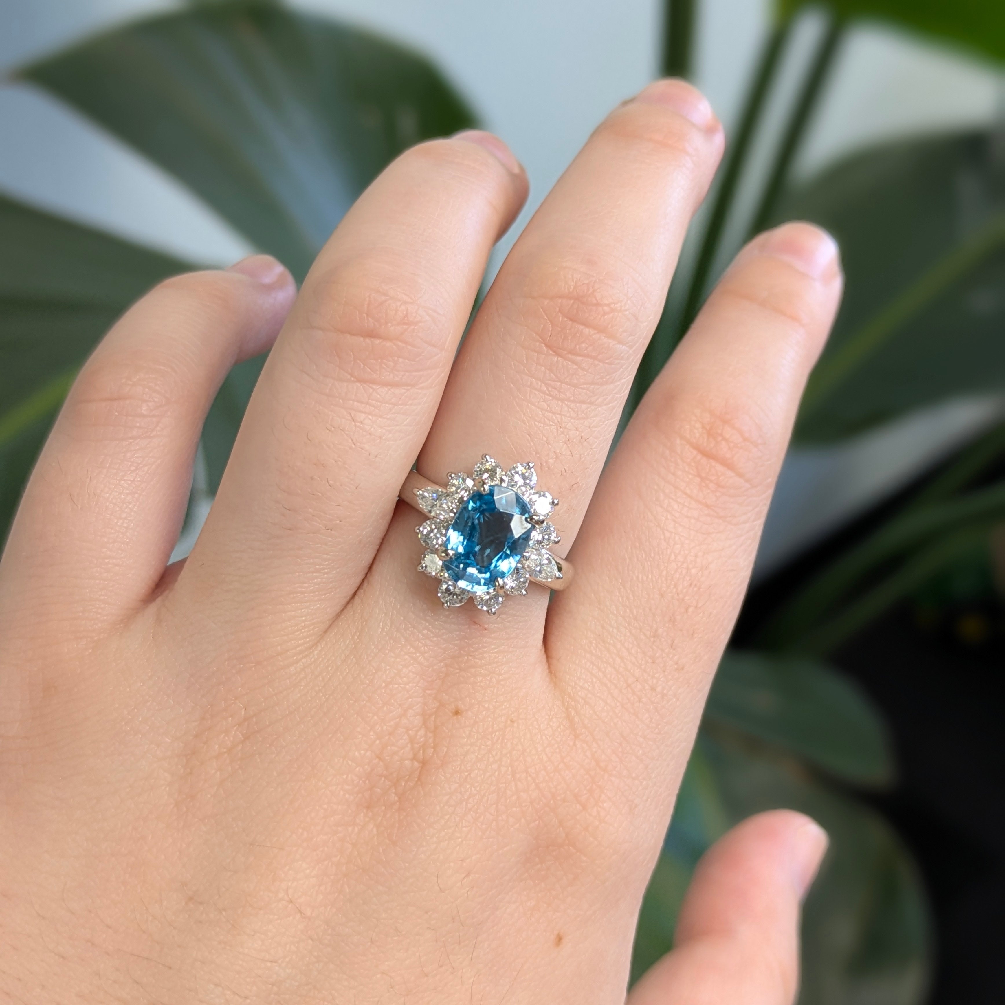 Oriana Estate Blue Zircon Ring with Natural Diamonds Accents: Platinum, 10x7mm