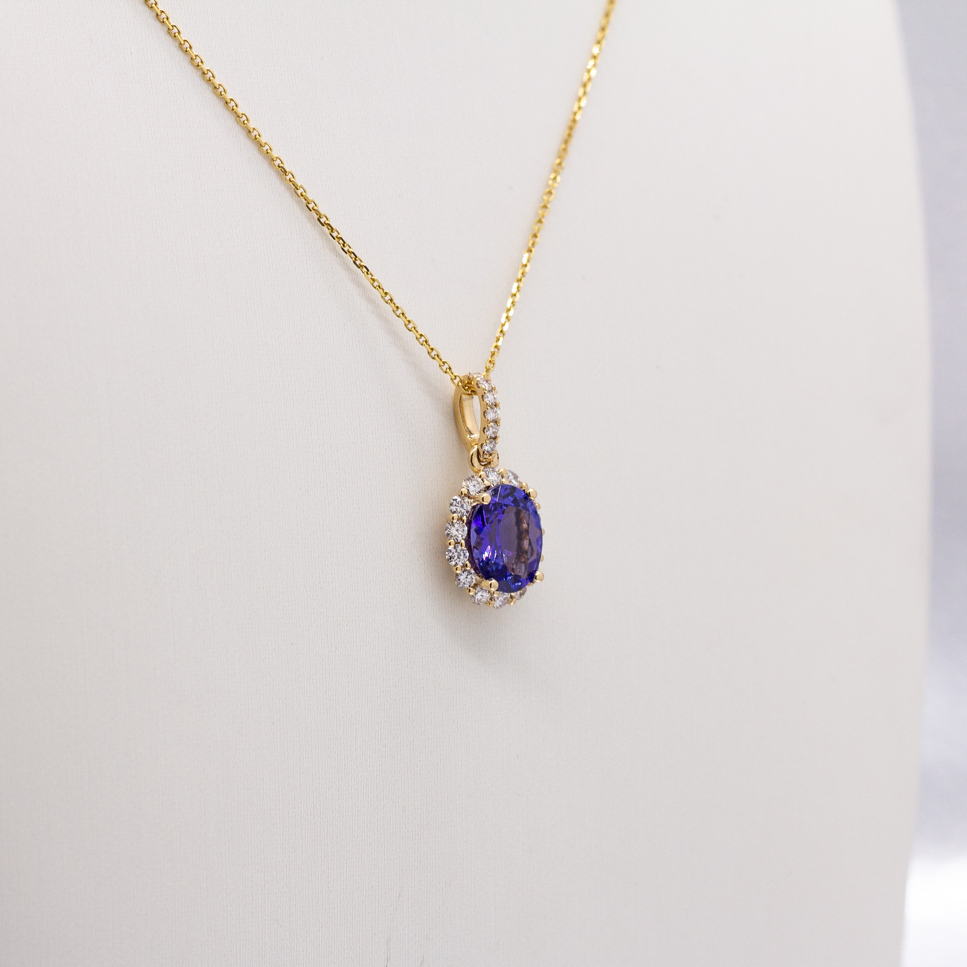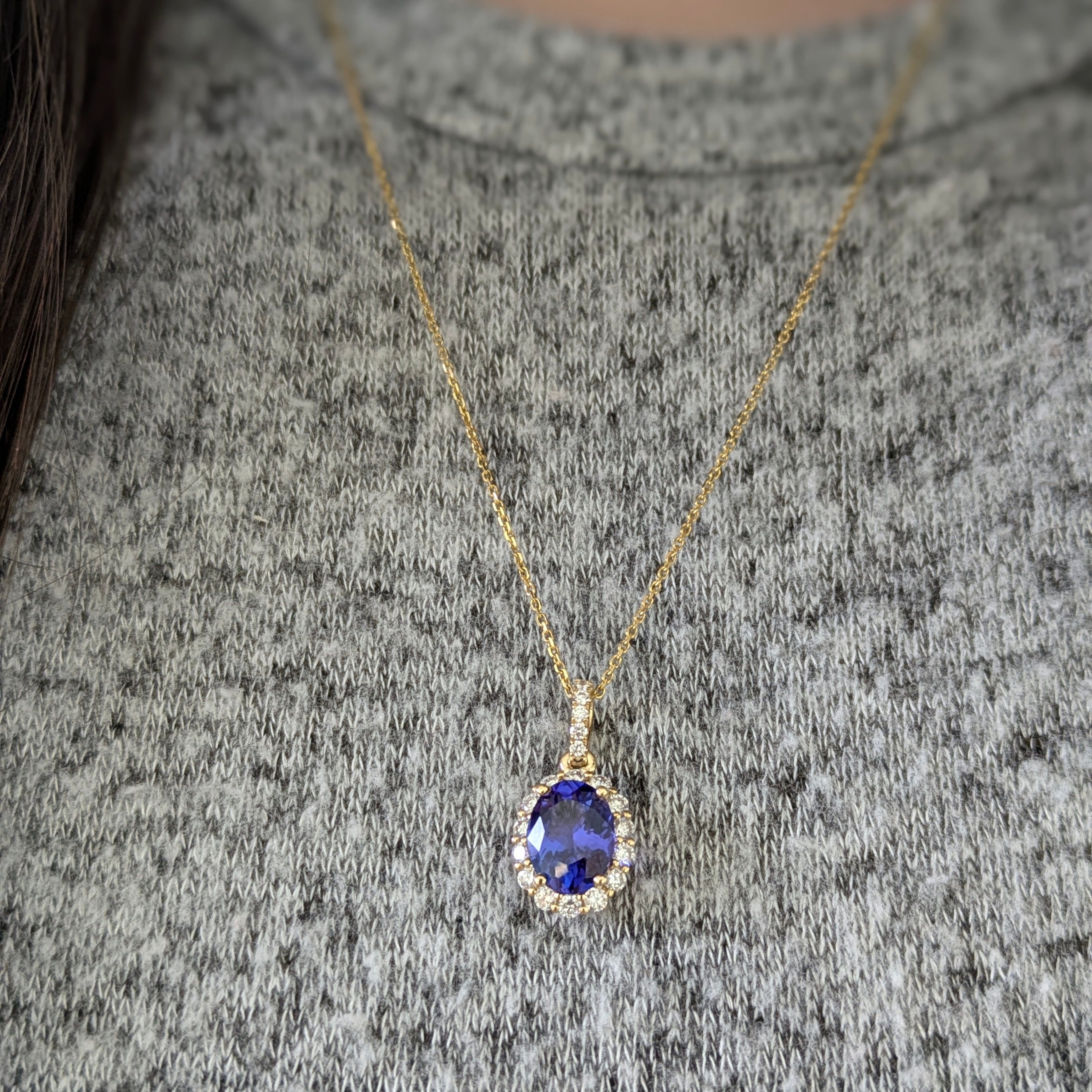 Azura 14k Solid Gold Tanzanite Pendant with Natural Diamonds Halo | Oval 9x7mm
