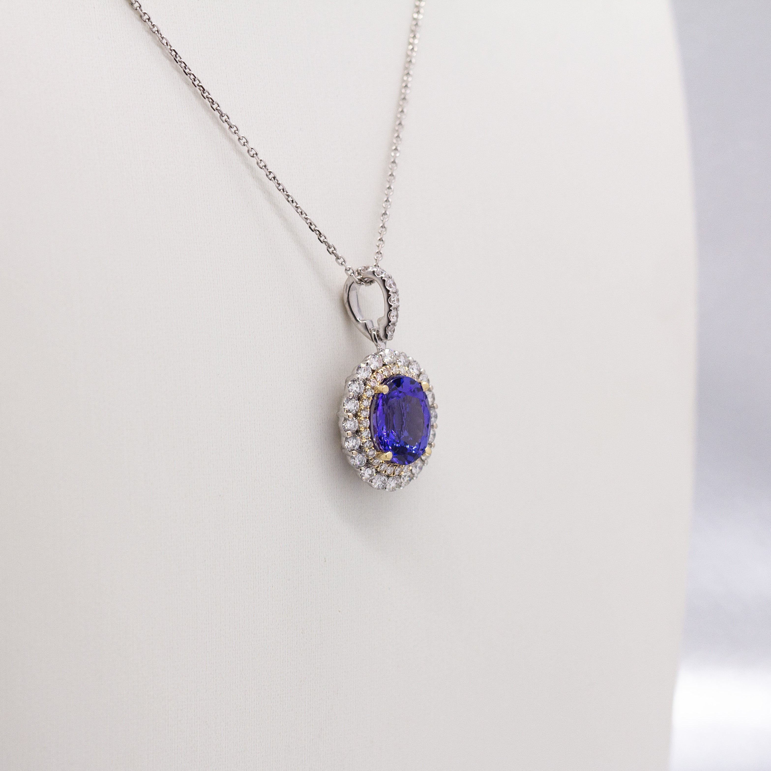 Soleil 14k Dual Gold Tanzanite Pendant with Natural Diamonds Halo | Oval 9x7mm