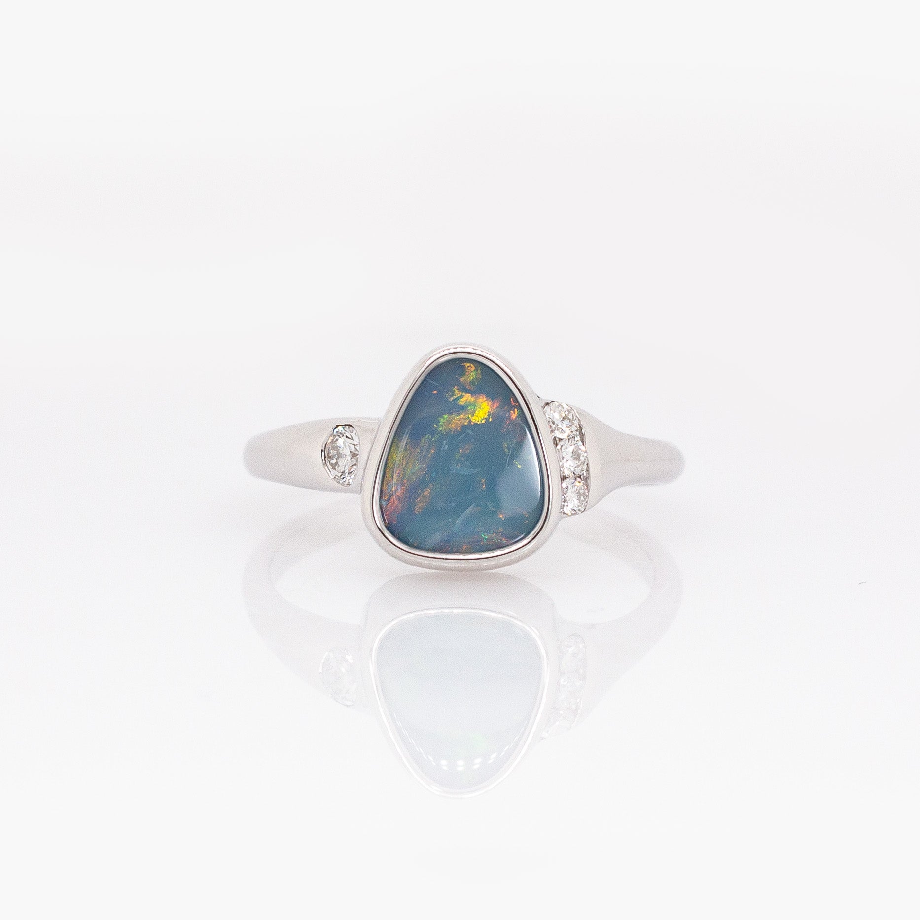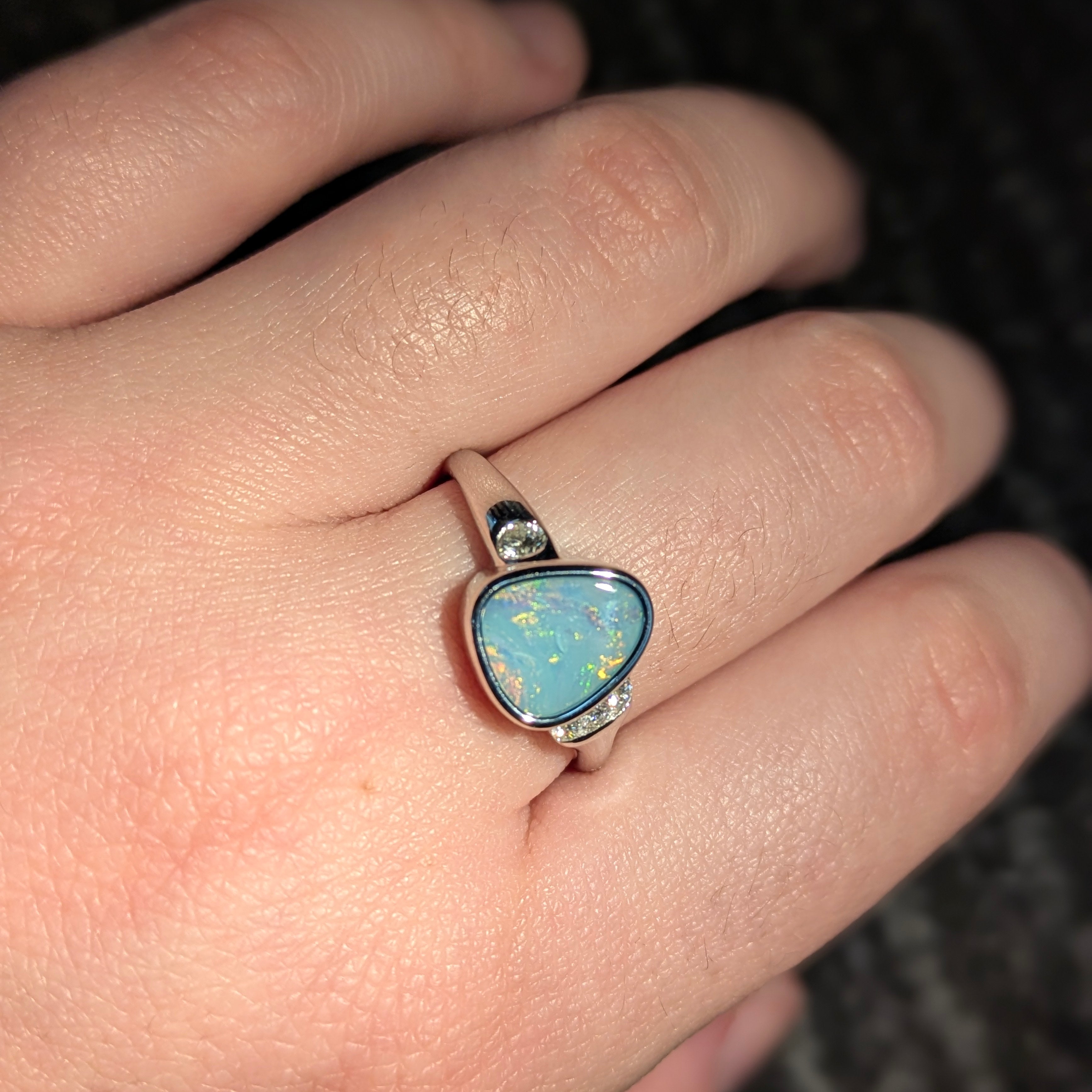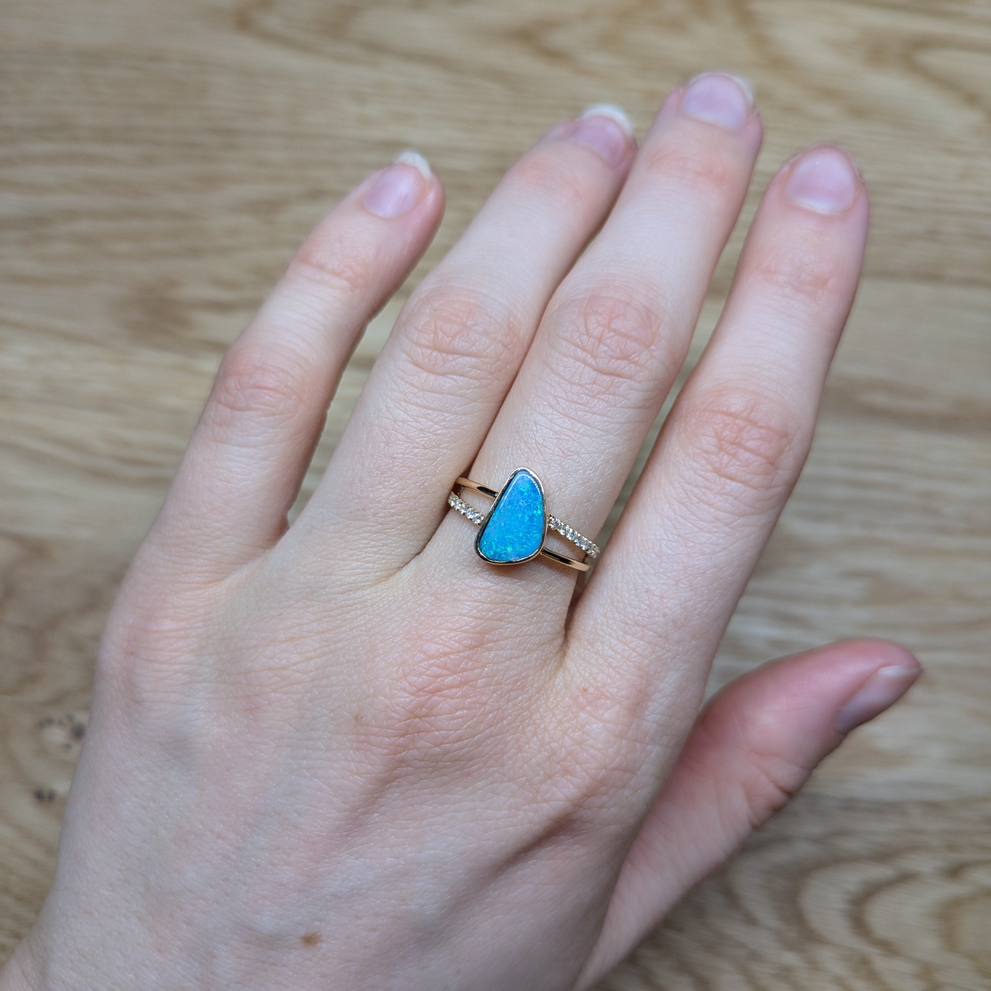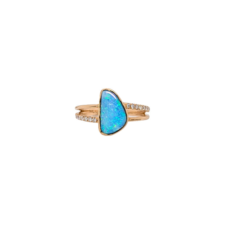 Mabel Australian Boulder Opal Ring with Natural Diamond Accents: 14K Solid Gold