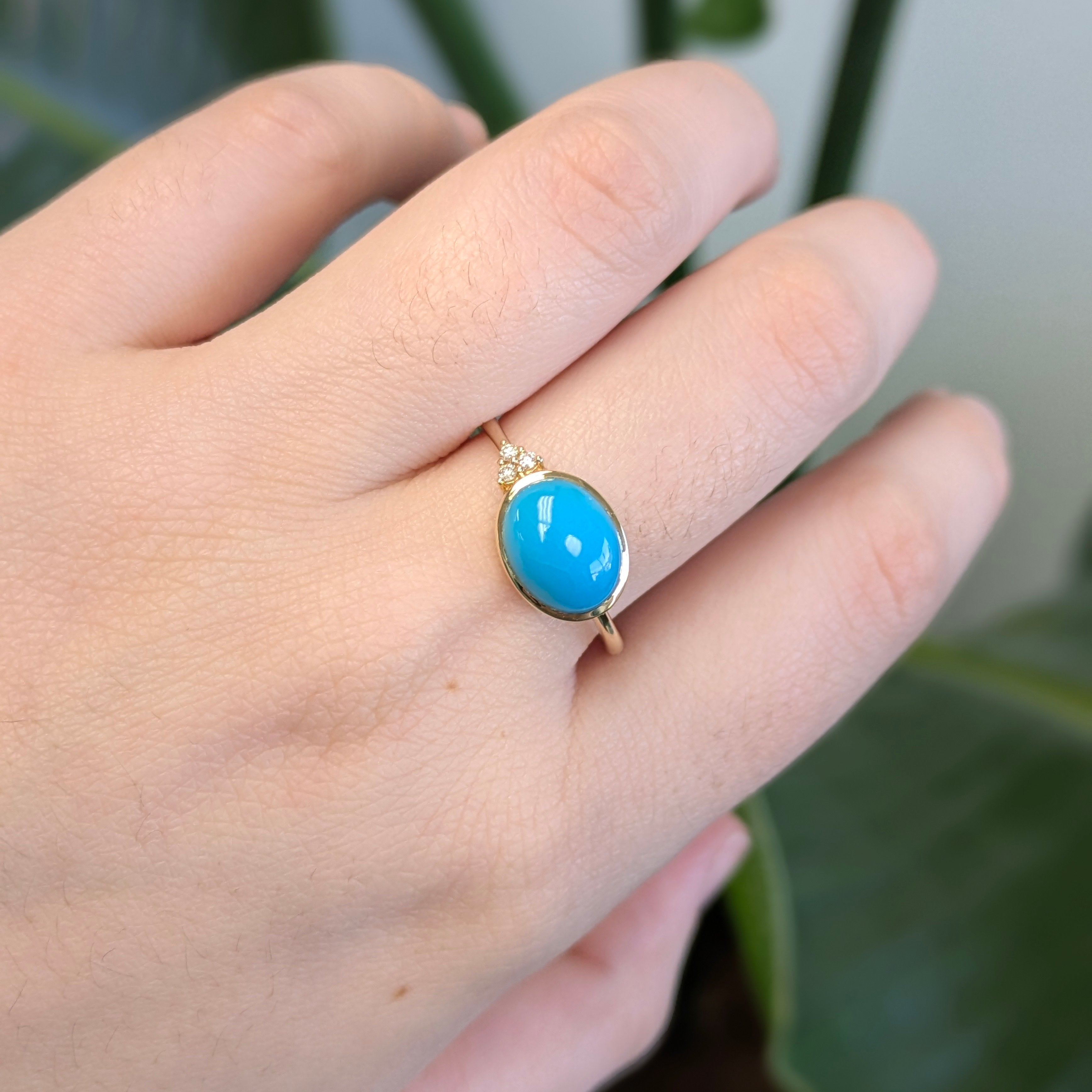 Amaris 14k Solid Gold Sleeping Beauty Turquoise Ring with Natural Diamond Accents | Oval 10x8mm