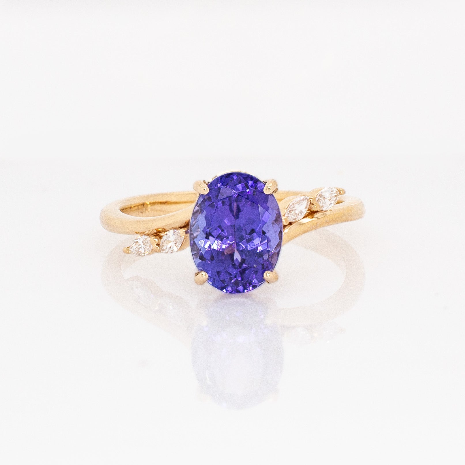 Ziya 14k Solid Gold Tanzanite Ring with Natural Diamond Accents | Oval 9x7mm
