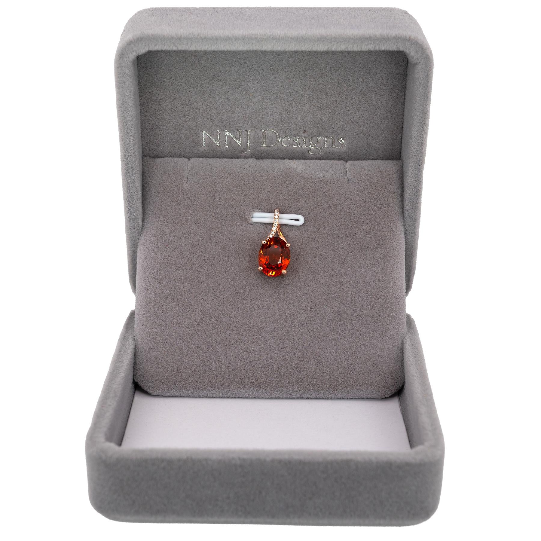 Portia Solid 14K Gold 2.6cts Spessartine Pendant with Natural Diamonds Accents, 9x7mm