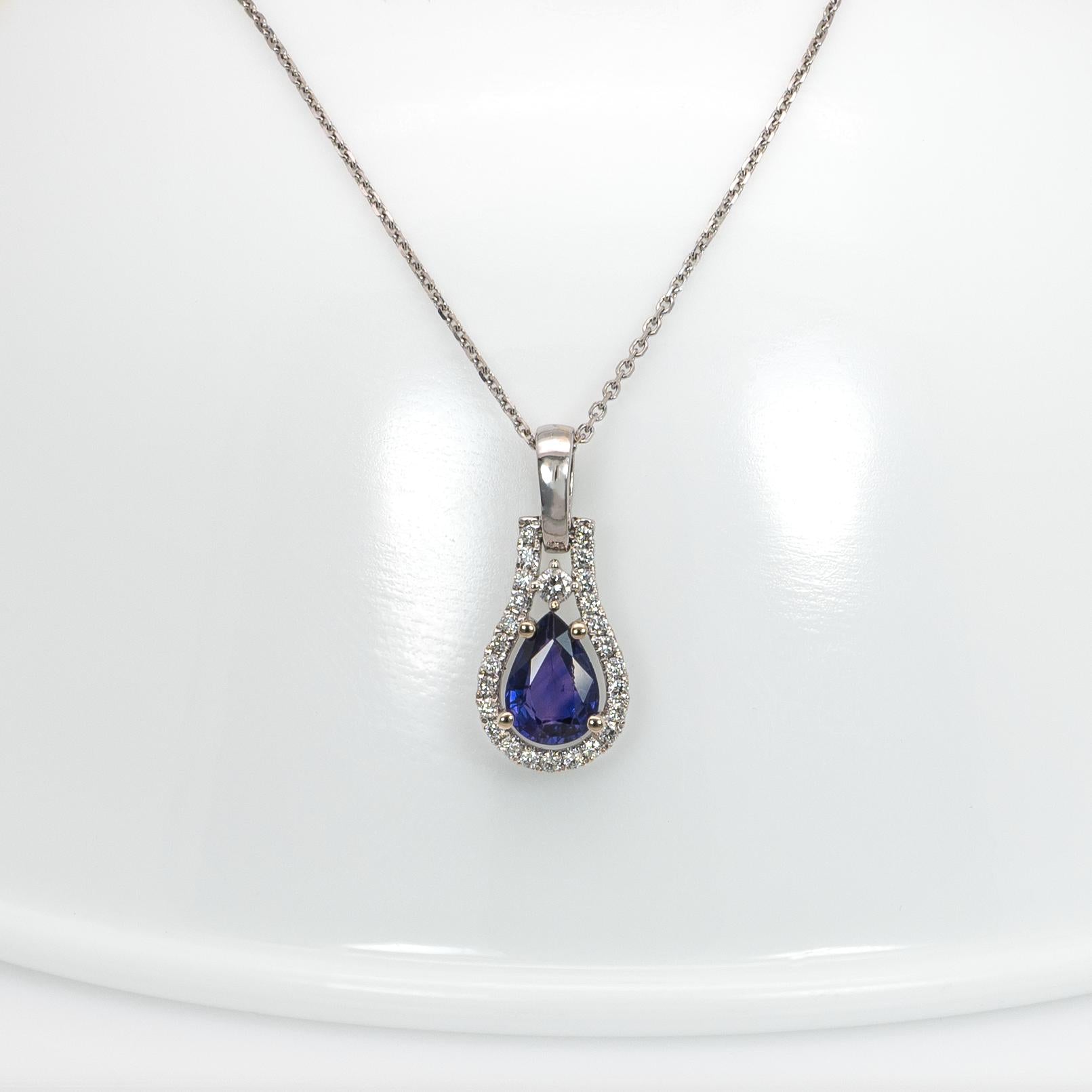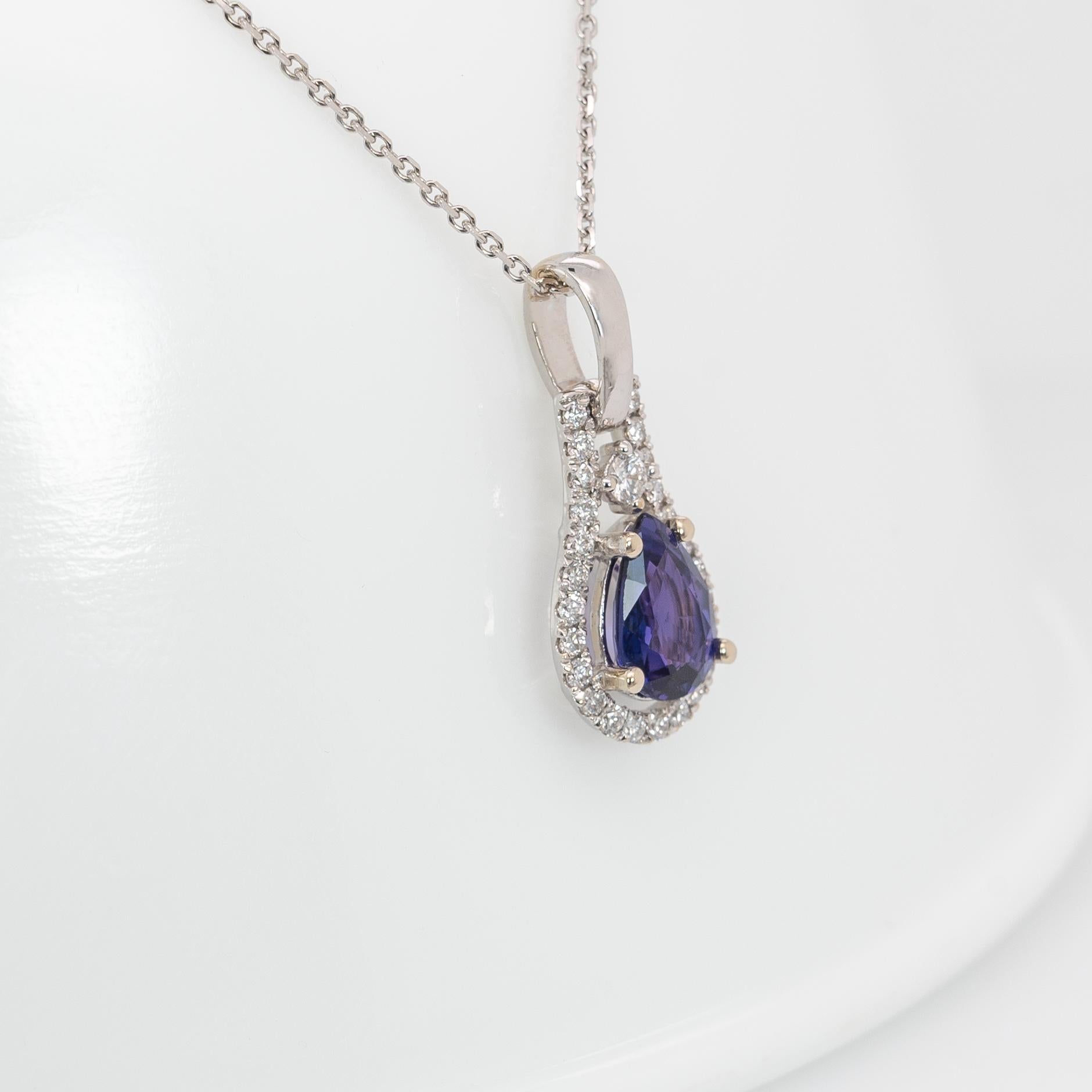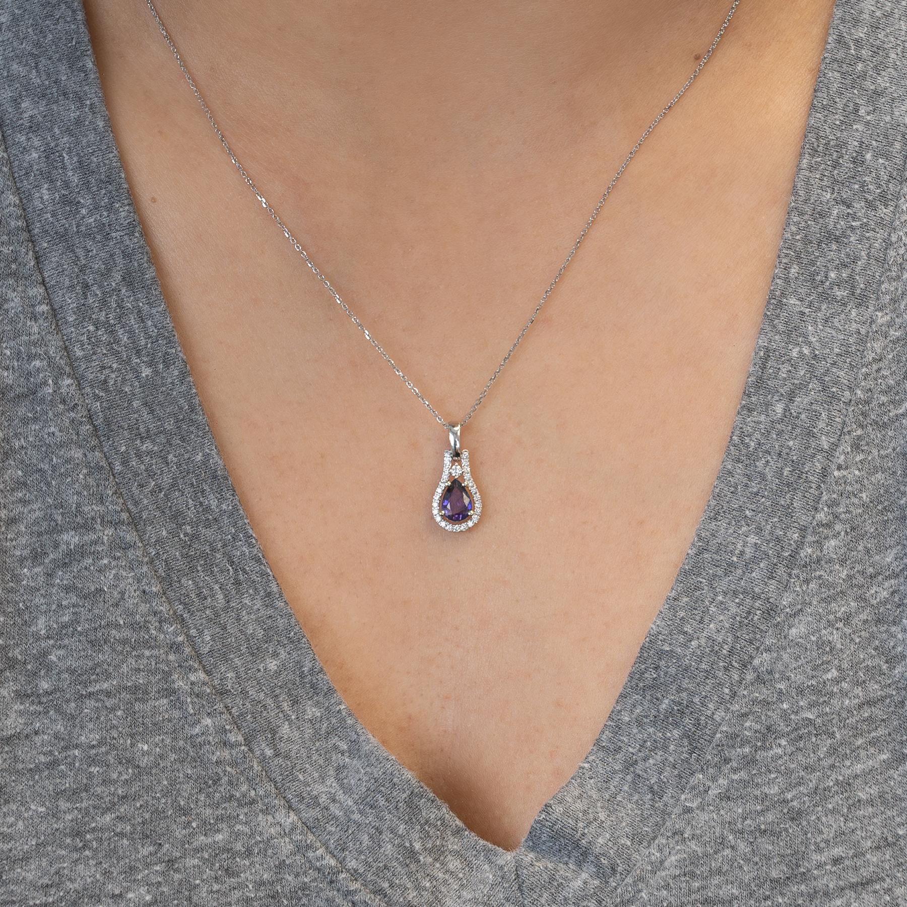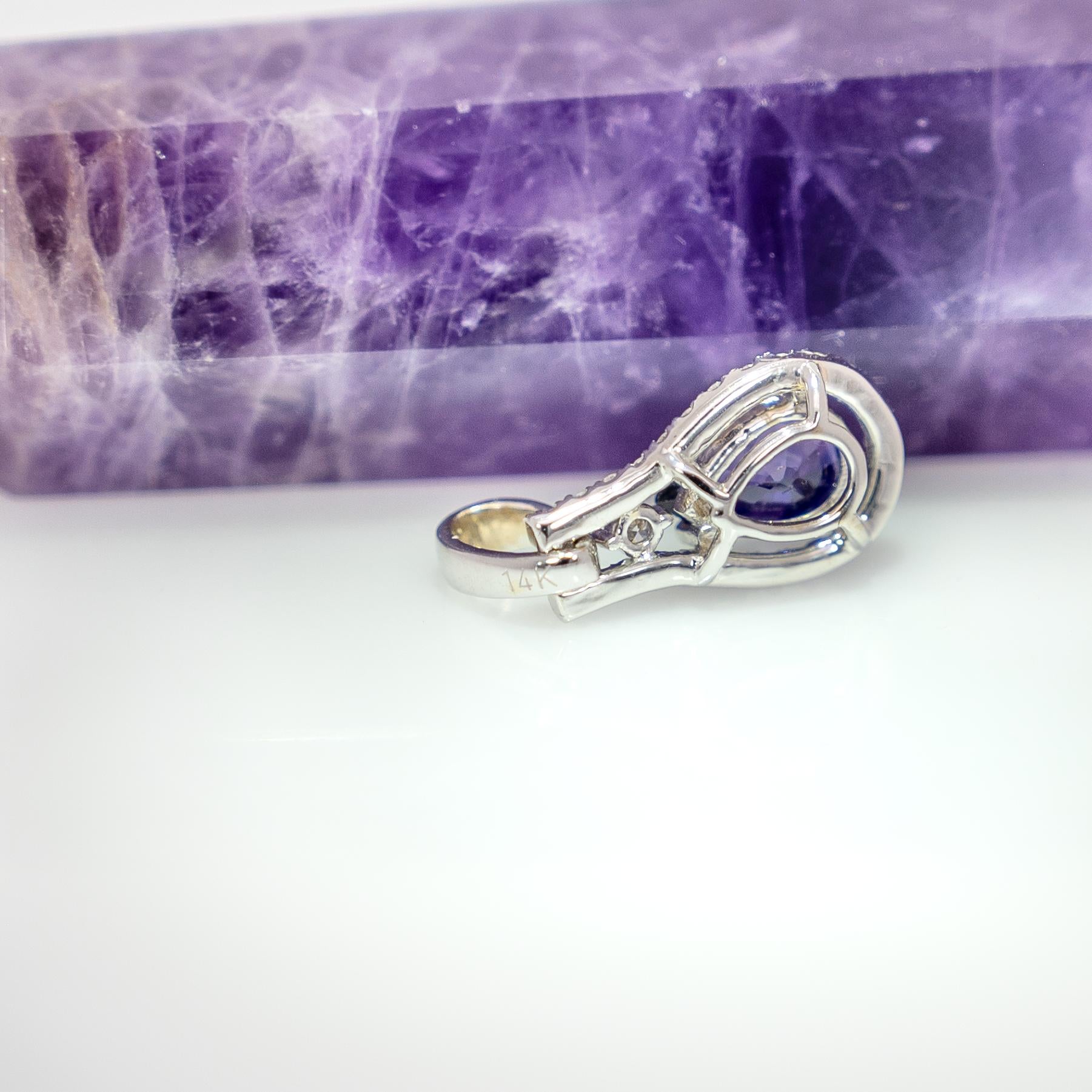 Yuvi Solid 14K Gold Purple Sapphire Pendant with Natural Diamonds Accents, 7x5mm
