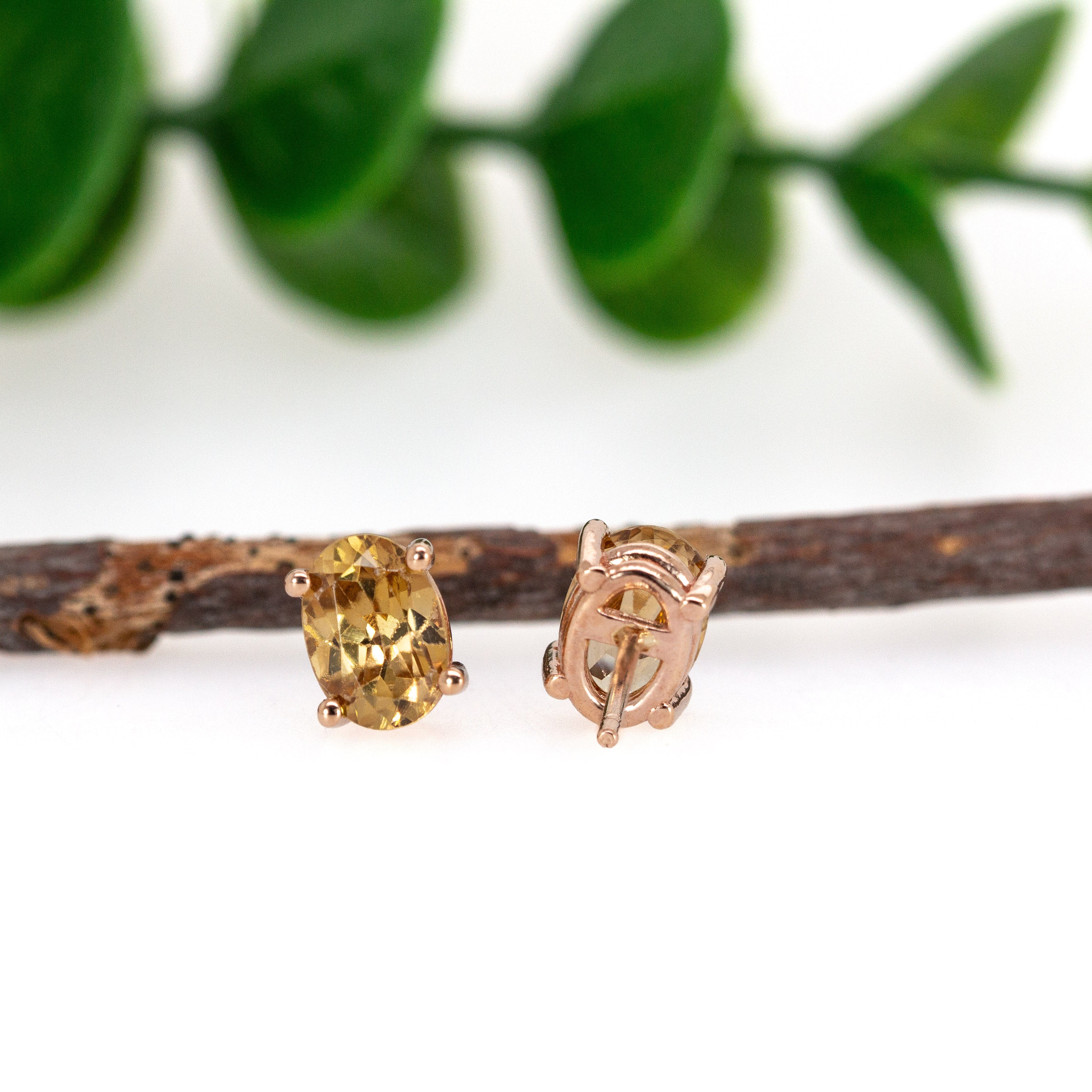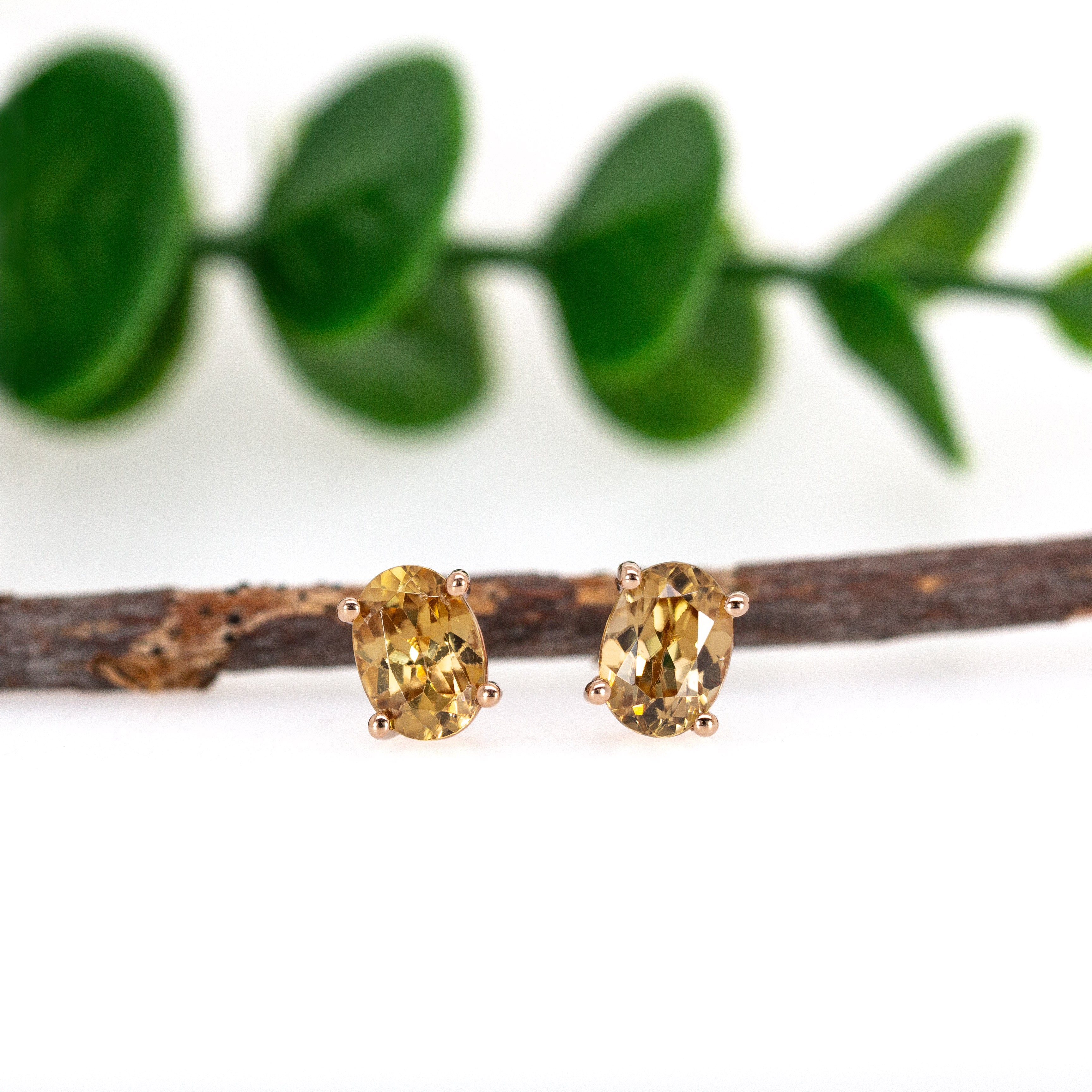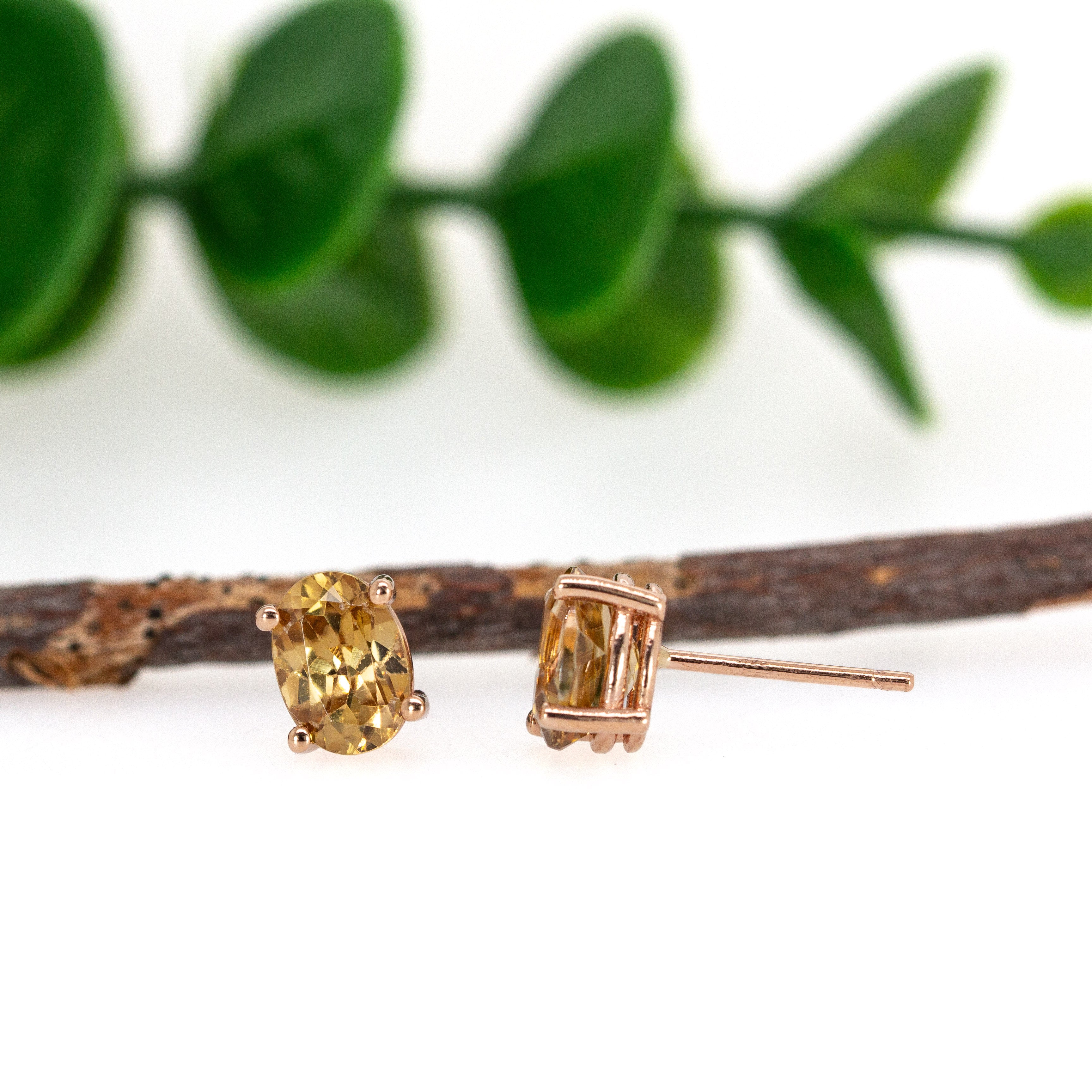 14K Gold Cambodian Champagne Zircon Solitaire Stud Earrings | Oval 7x5mm