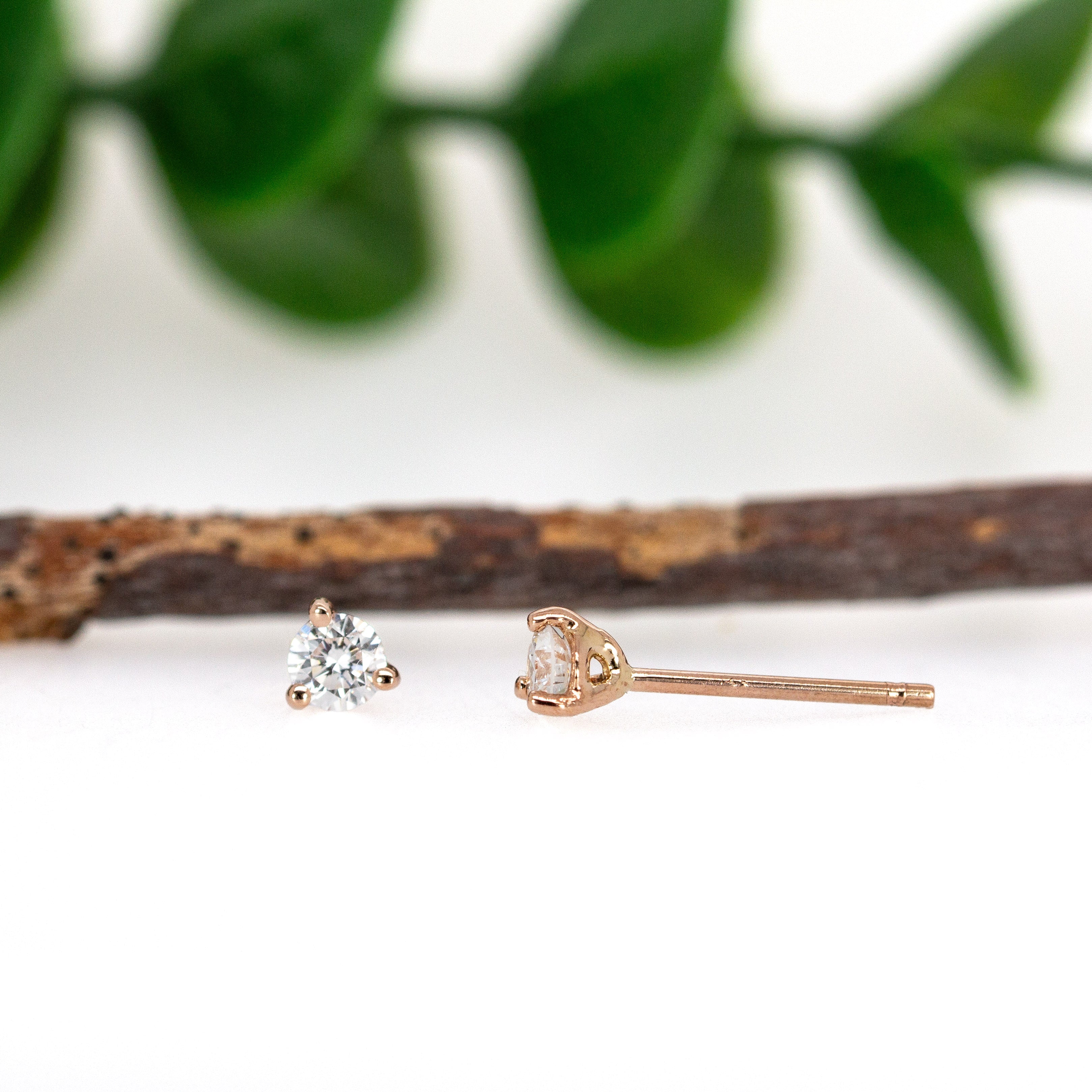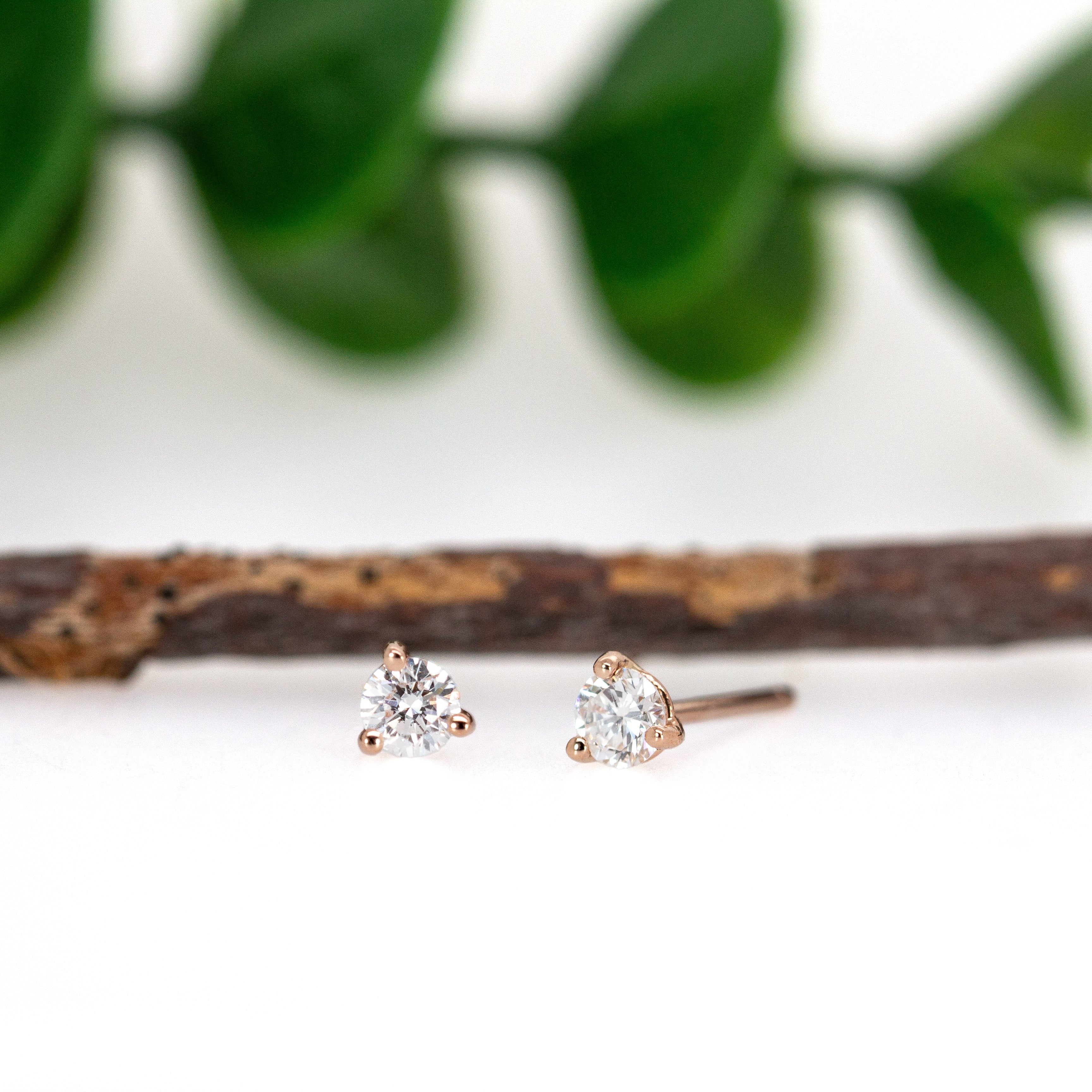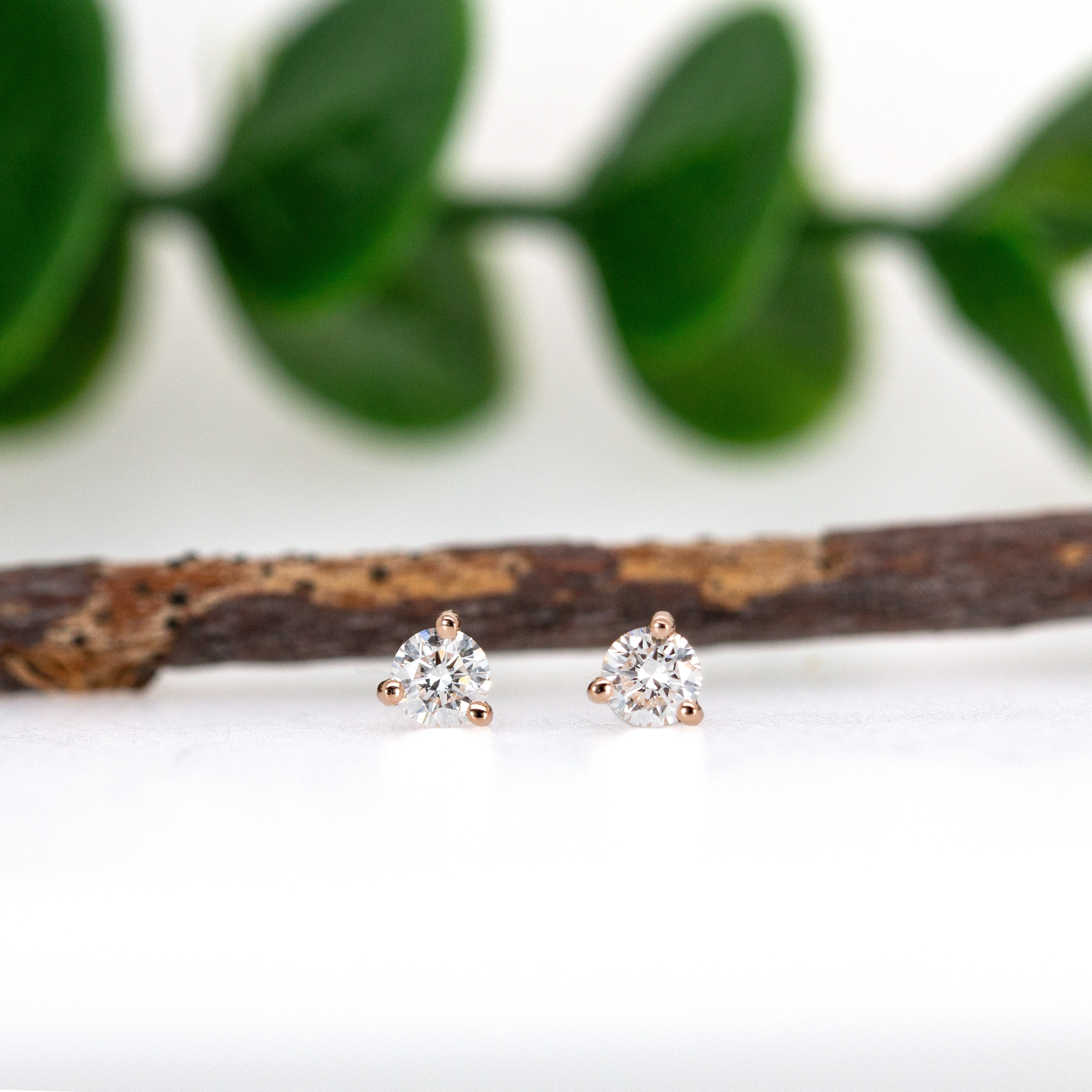 Less is more with these dainty 3mm 4mm 5mm 6mm lab-created diamond studs in solid 14k gold. Their minimalist 3-prong martini setting allows maximum light to dance through the stones for unmatched brilliance. A modern twist on a classic staple, these earrings are a meaningful gift for her birthday or a stylish addition to her daily jewelry lineup.