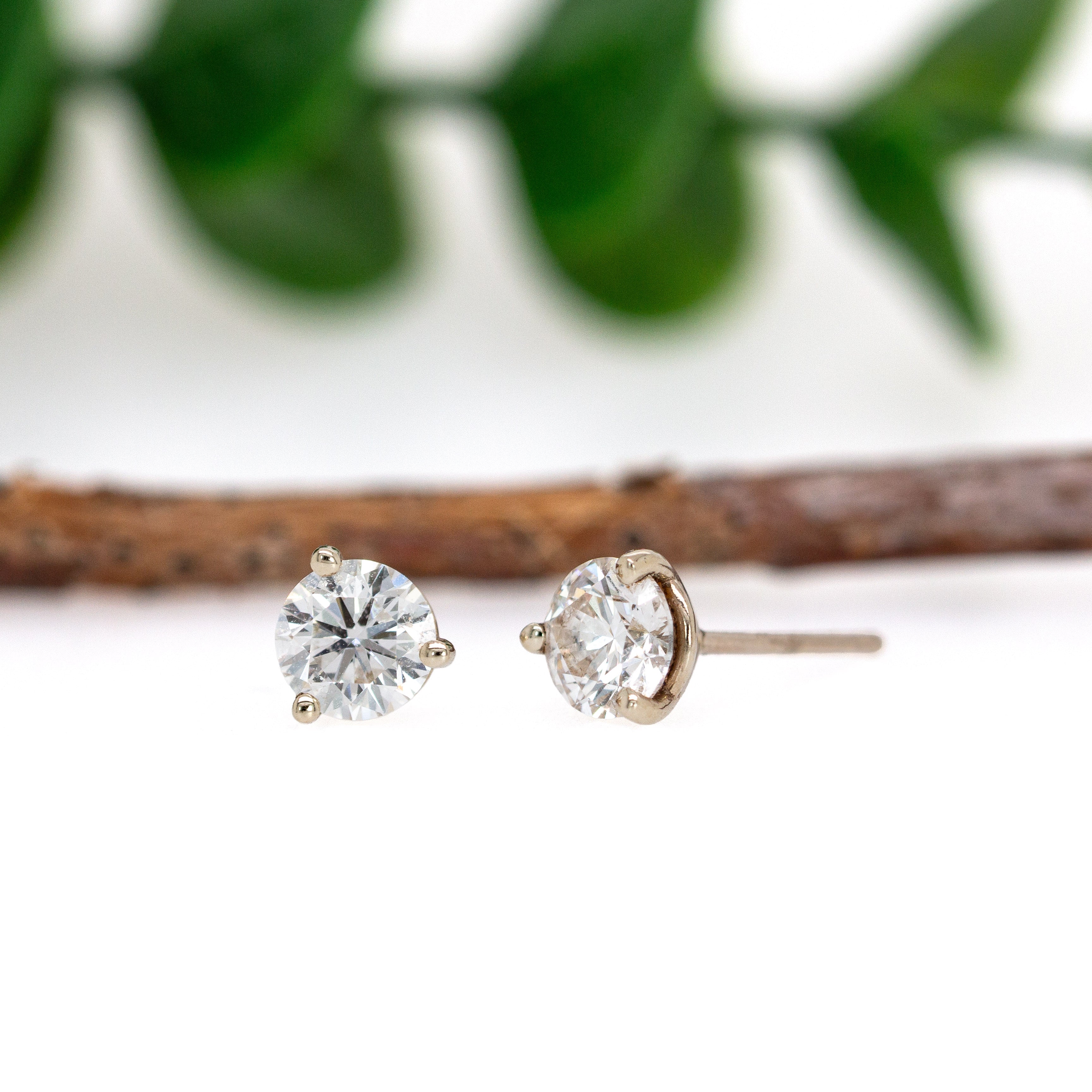 14K Solid Gold Lab-Created Diamond Martini Solitaire Stud Earrings | Round 3mm 4mm 5mm 6mm