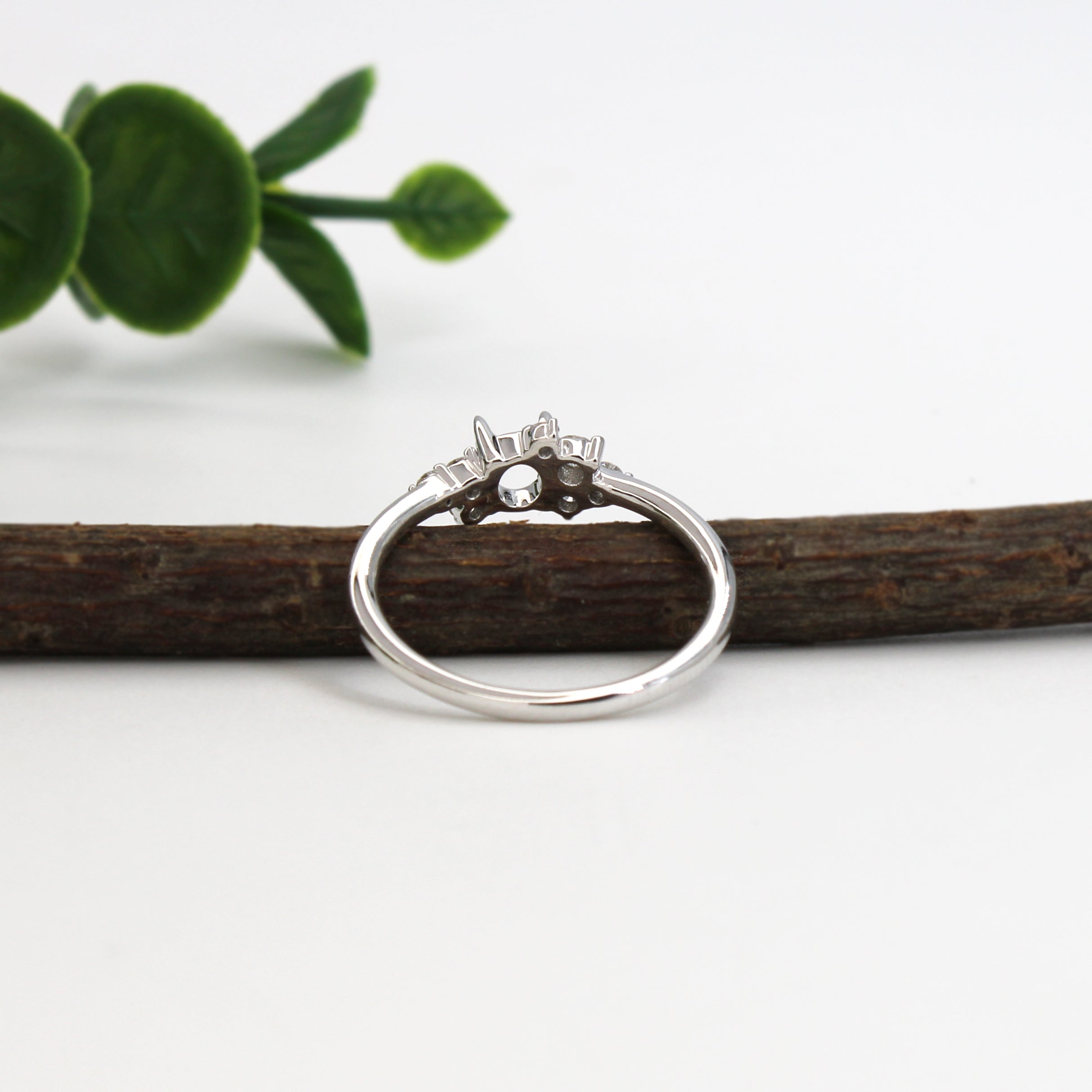 This elegant 14K white gold semi-mount diamond ring features a stunning floral design, with delicate diamond accents that create a captivating shimmer. The center setting is designed to hold a gemstone of your choice, making it the perfect setting for a personalized engagement ring or special occasion gift. The intricate details and graceful finish of the ring offer timeless beauty and sophistication, ideal for anyone seeking a classic yet unique piece of jewelry.