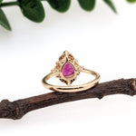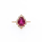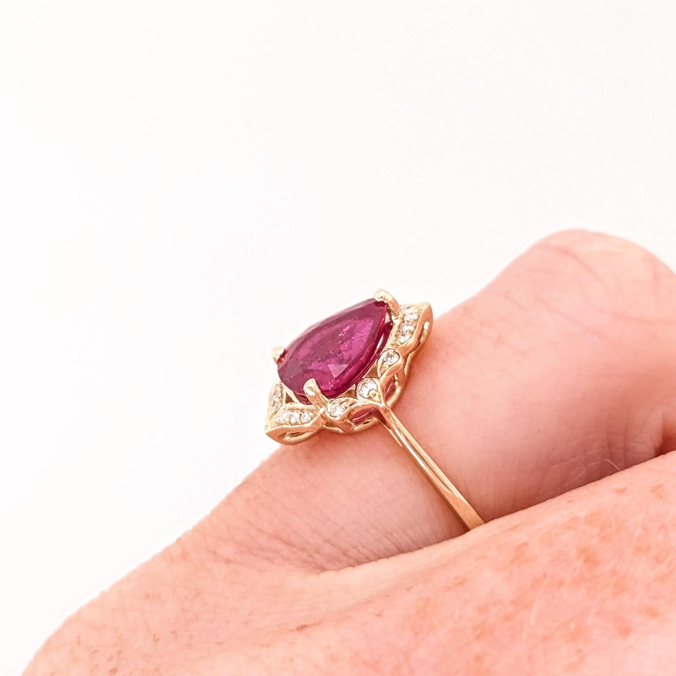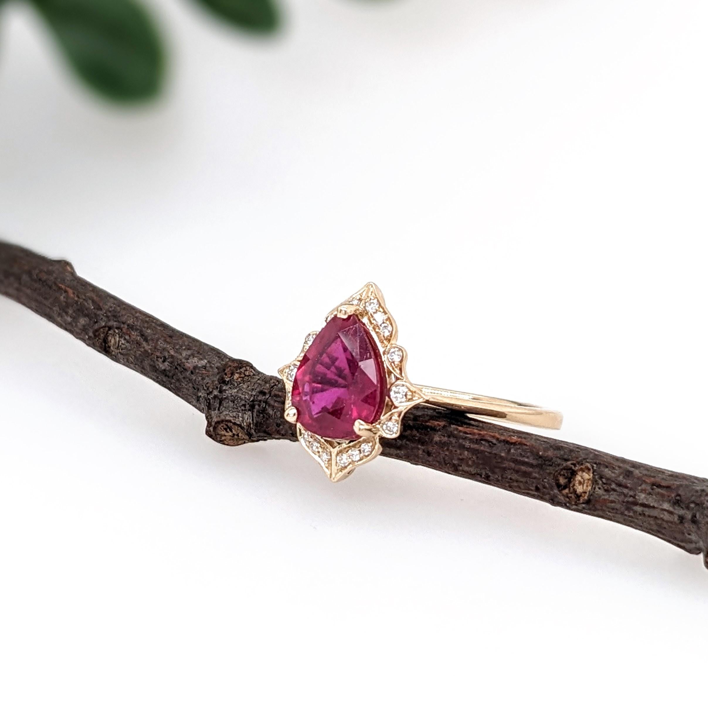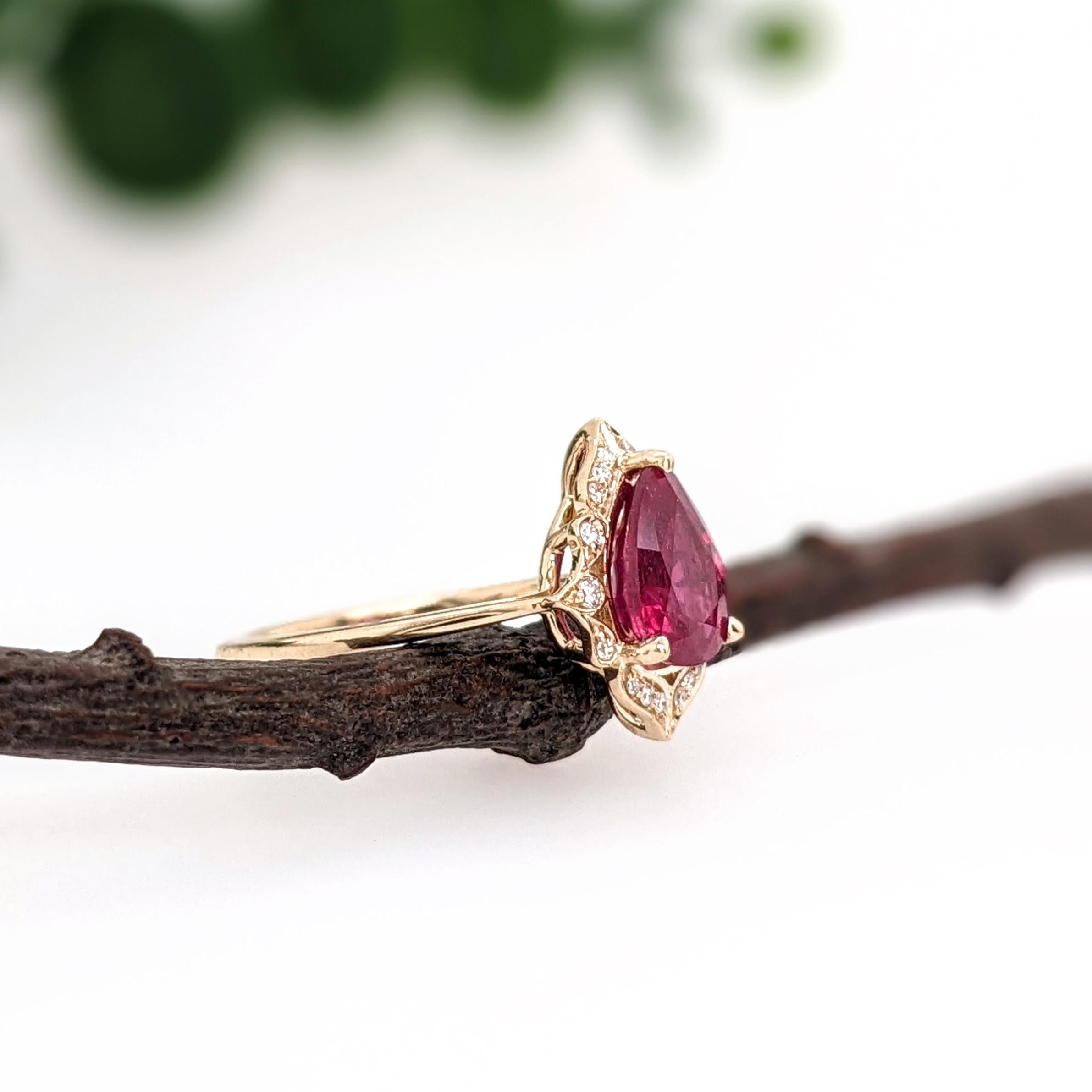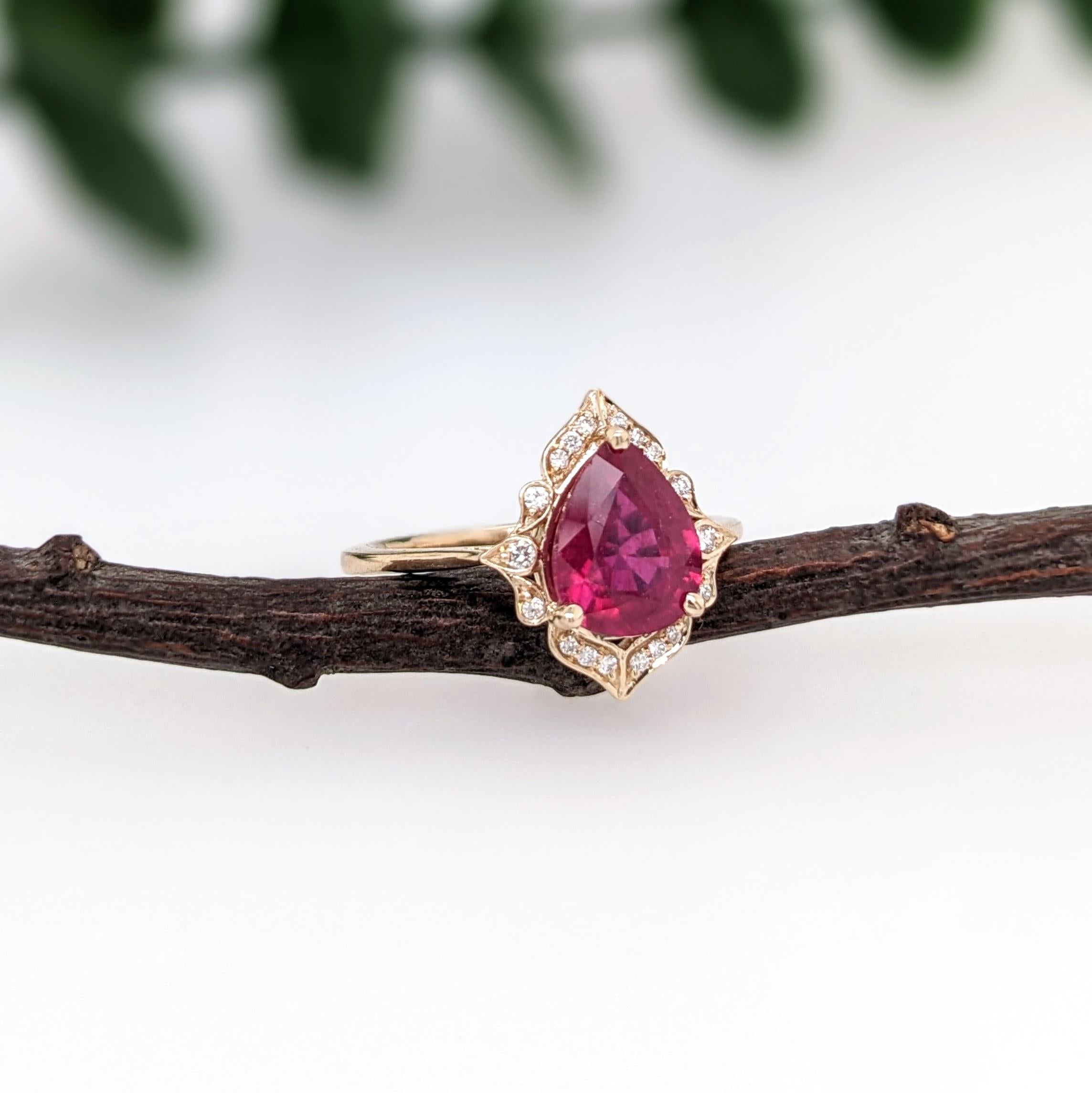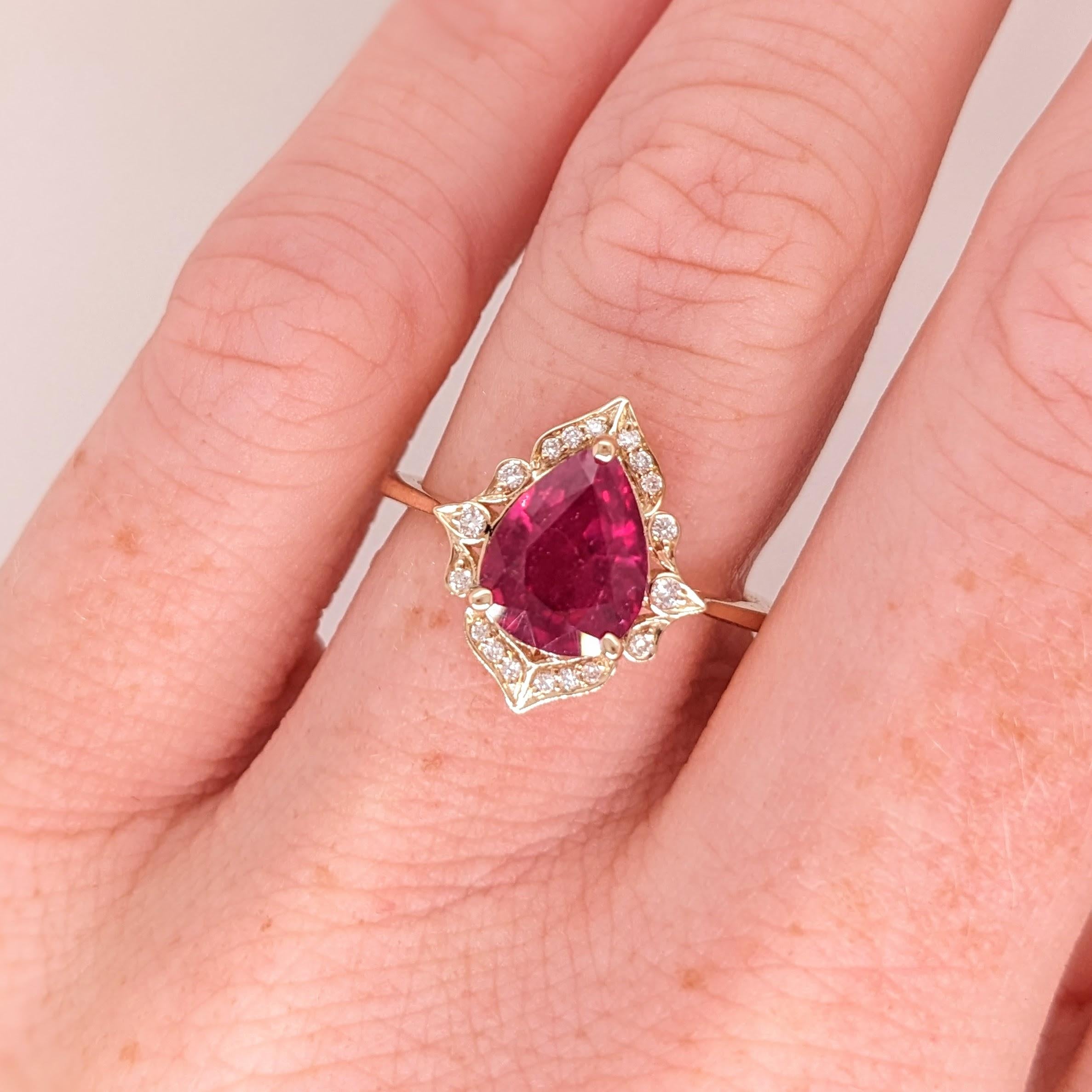 2.1cts Red Ruby Ring w Earth Mined Diamonds in Solid 14k Yellow Gold | Pear 9x7mm | July Birthstone