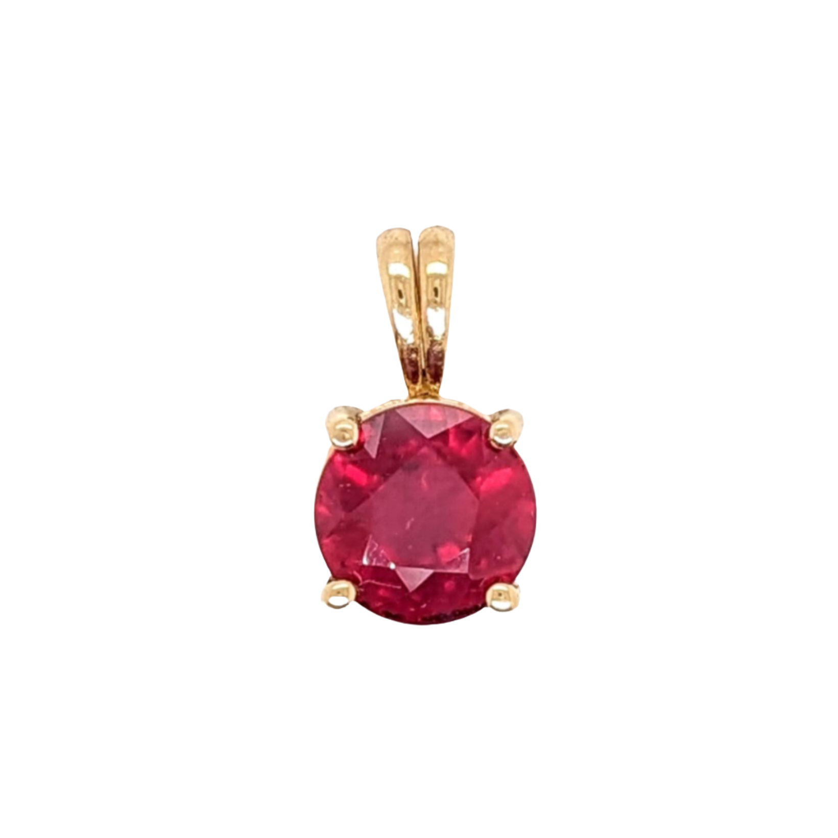 2.8ct Red Ruby Pendant in Solid 14K Yellow Gold | Round 8mm | Solitaire Pendant