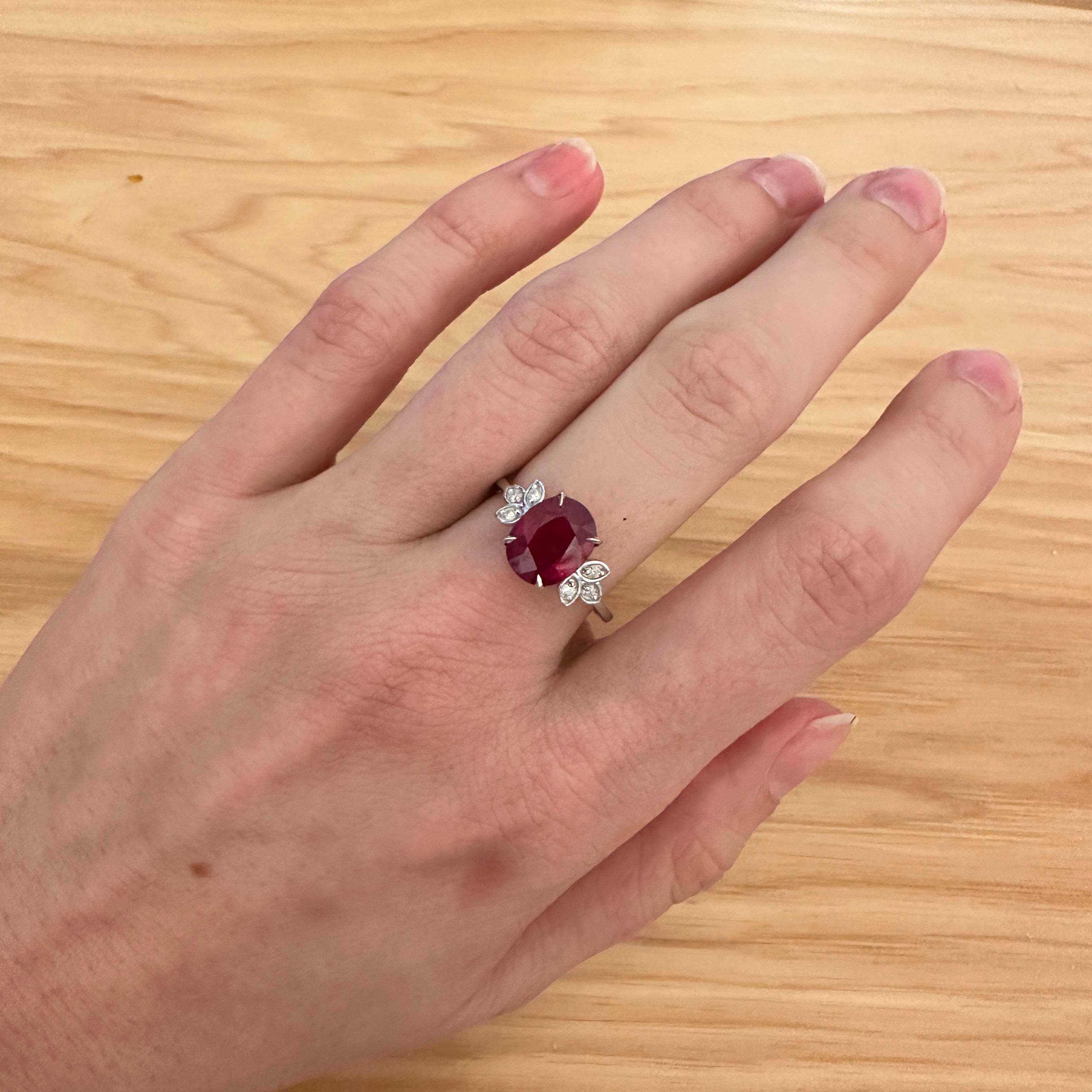 This beautiful ring features a 4.01 carat oval Ruby gemstone with natural earth mined diamonds set in solid 14K gold. This Ruby ring makes a lovely July birthstone gift for your loved ones!