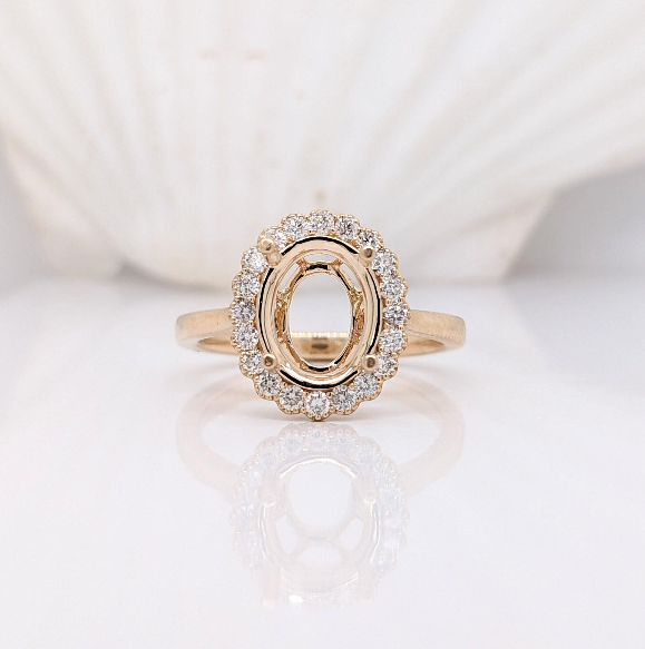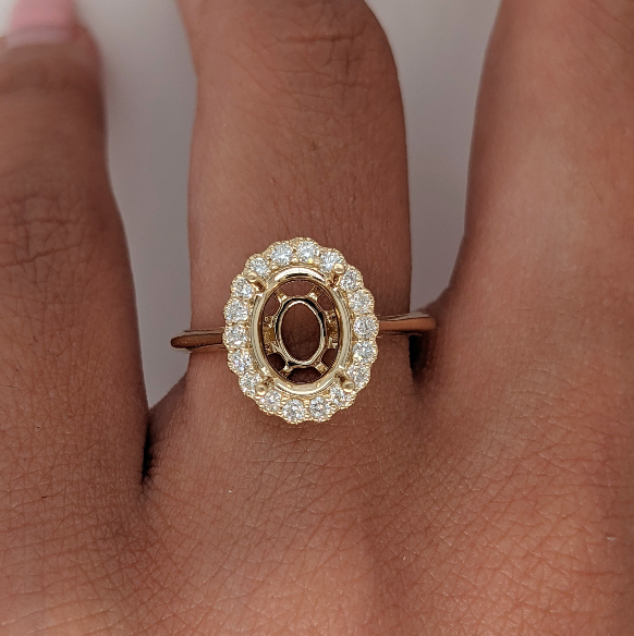 Abigail 14K Solid Gold Natural Diamonds Ring Setting | Oval Shape | Customizable