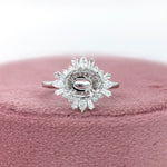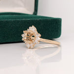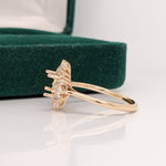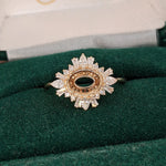 14K Solid Gold East West Ring Setting: Pear, Baguette & Round Diamond Accents