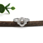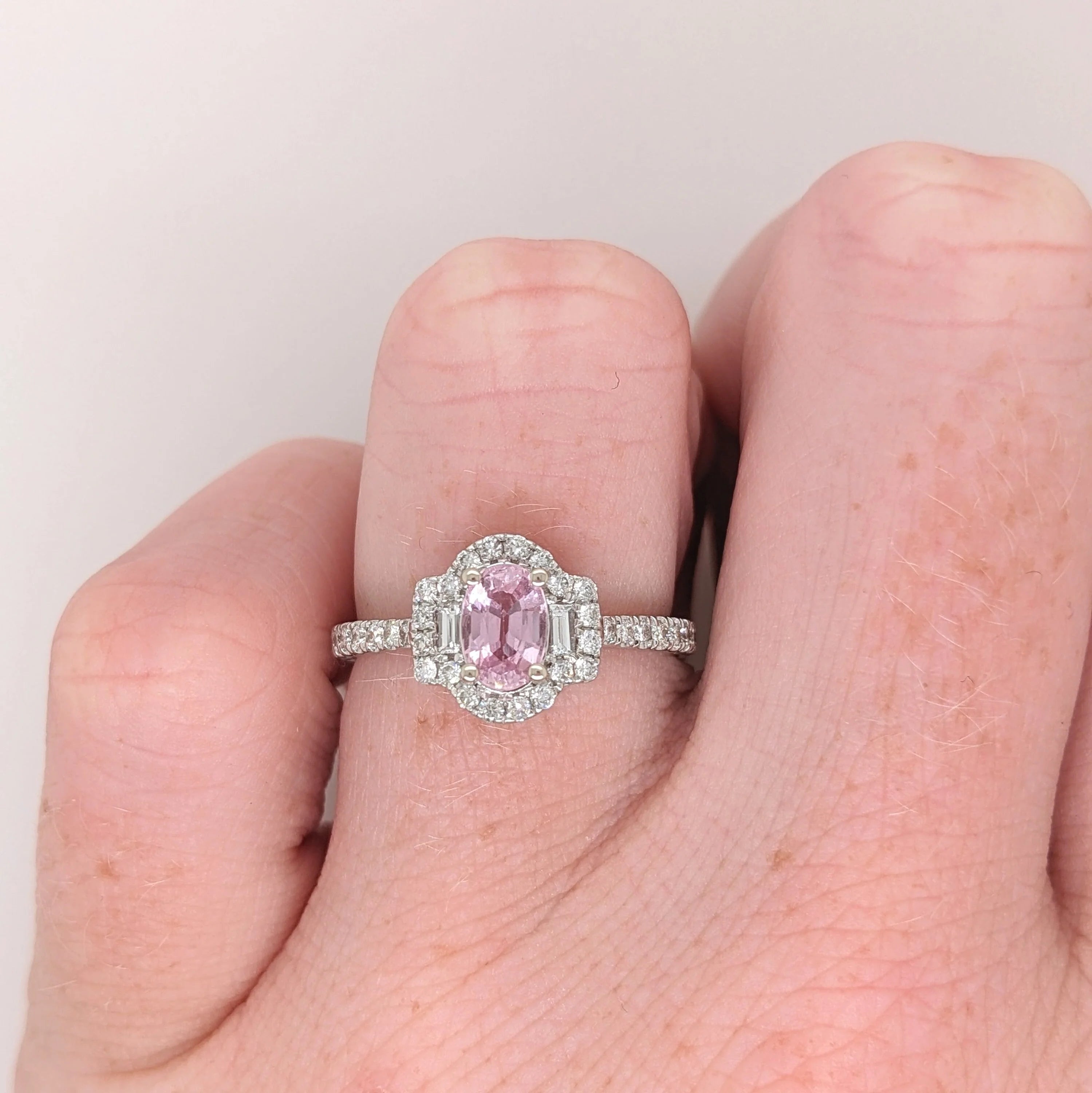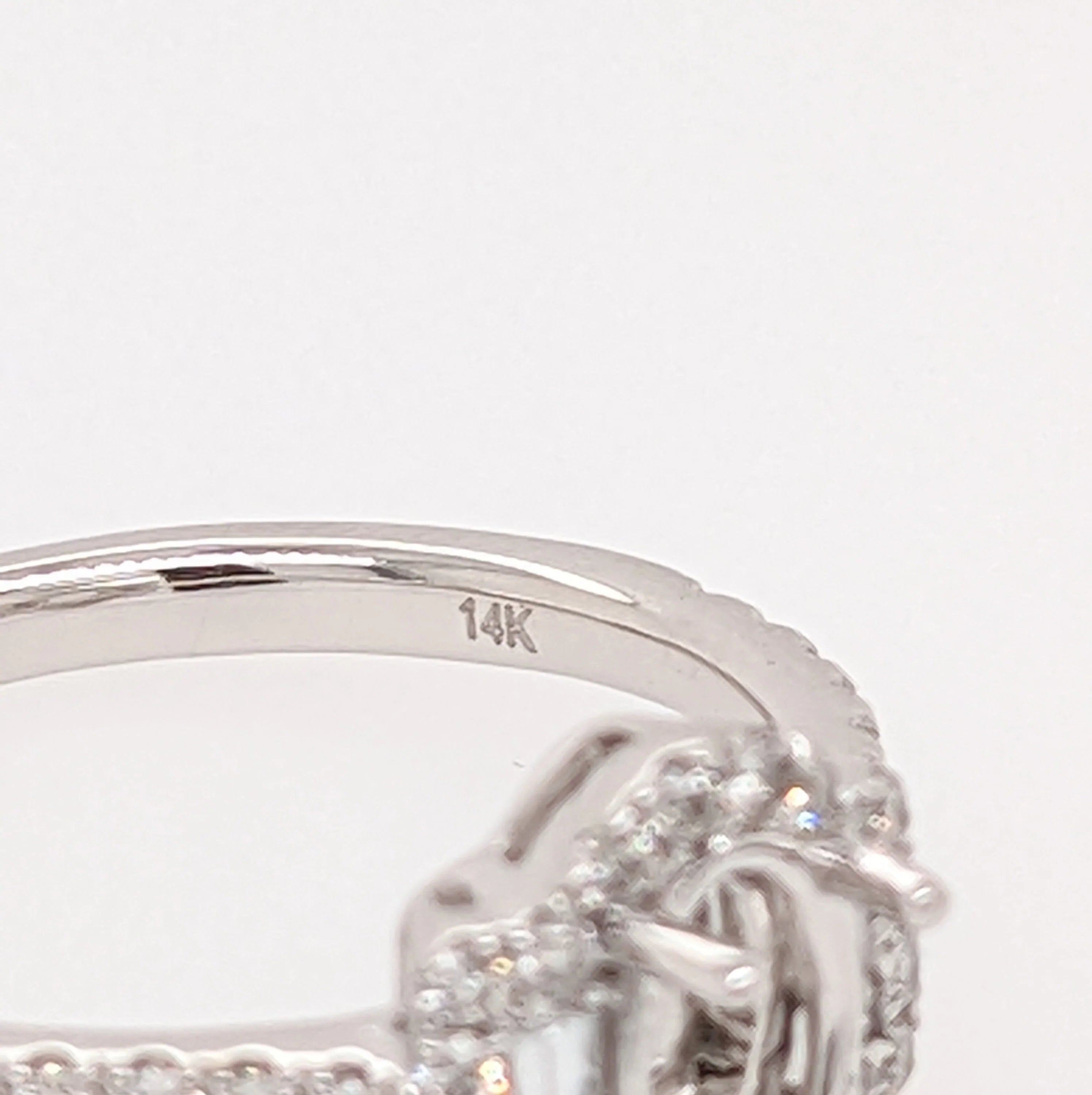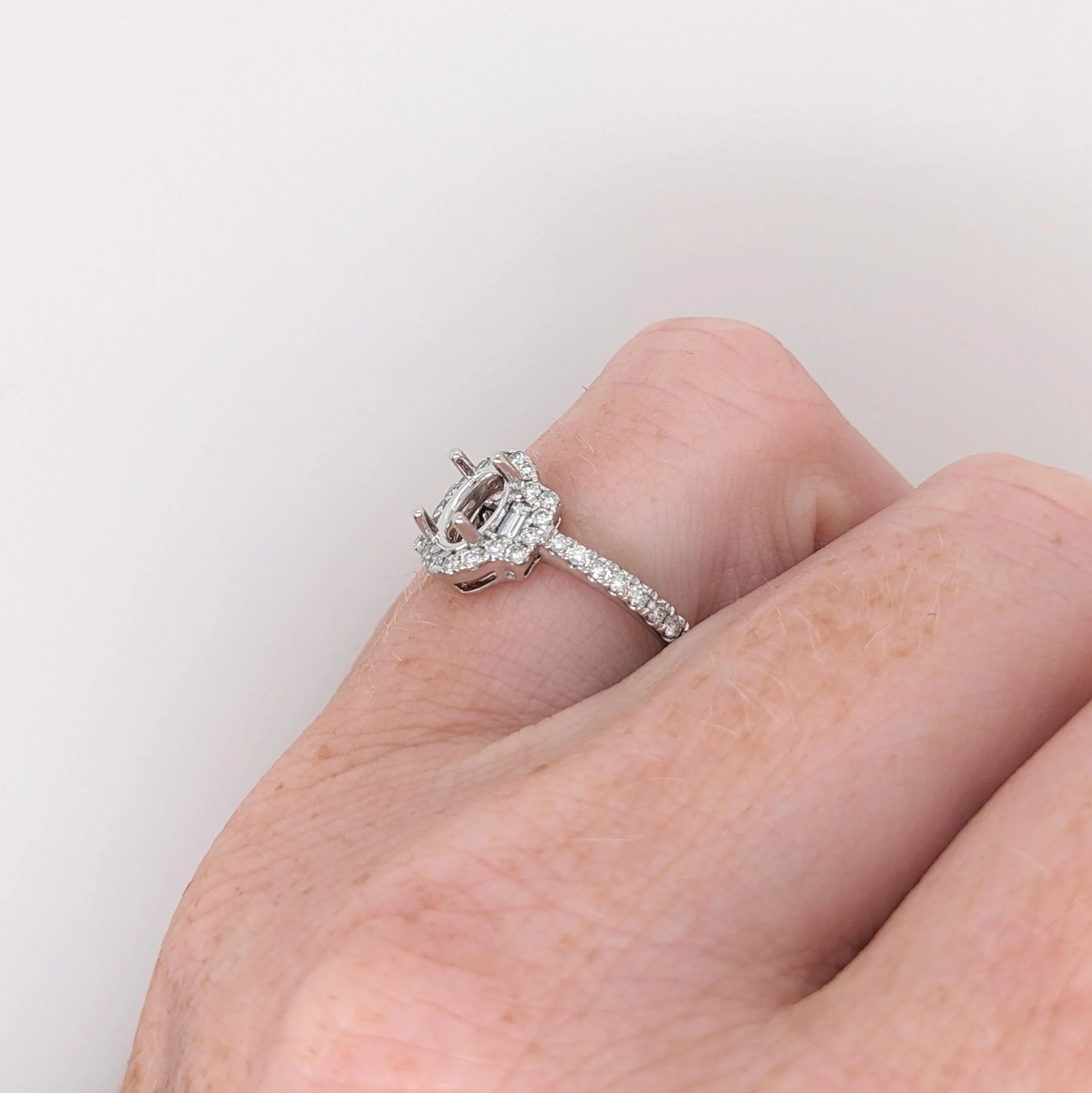 Collection Quality 14K gold ring semi mount featuring an oval shape basket pave diamond halo and baguette diamond split shank. A statement art deco ring design perfect for an eye catching engagement or anniversary. This ring also makes a beautiful birthstone ring for your loved ones.