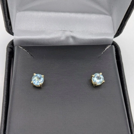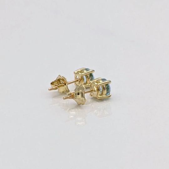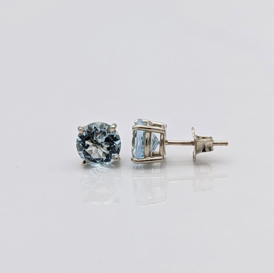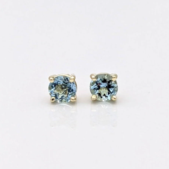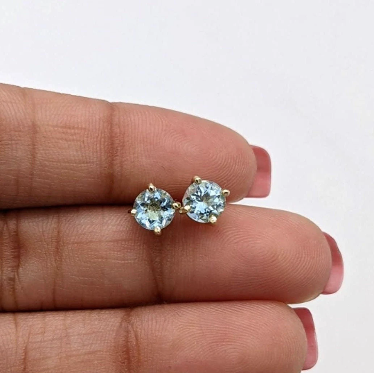 Four Prong Round Aquamarine Solitaire Stud Earrings | 3mm 4mm 5mm 6mm 7mm 8mm