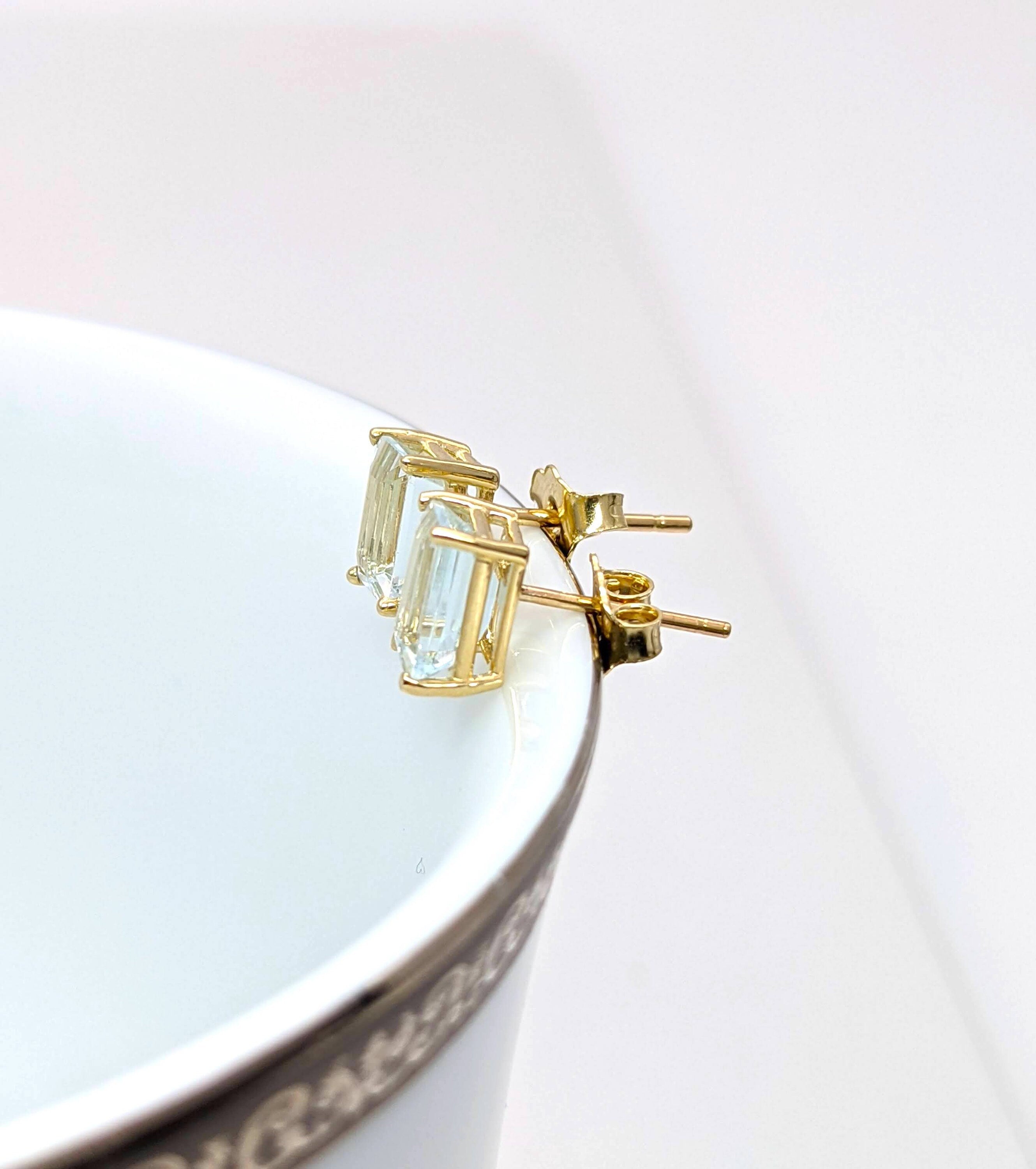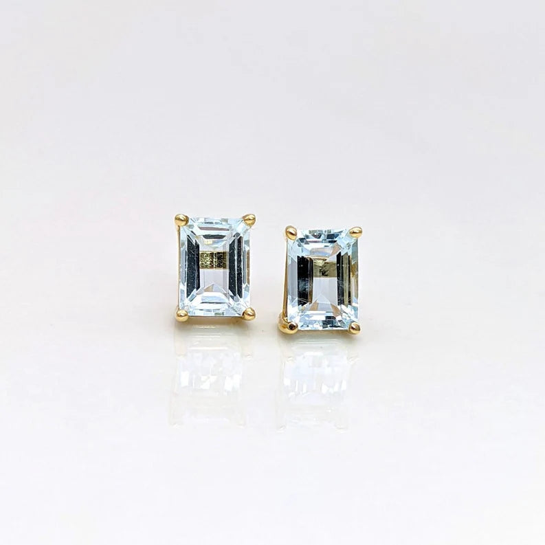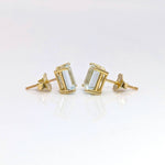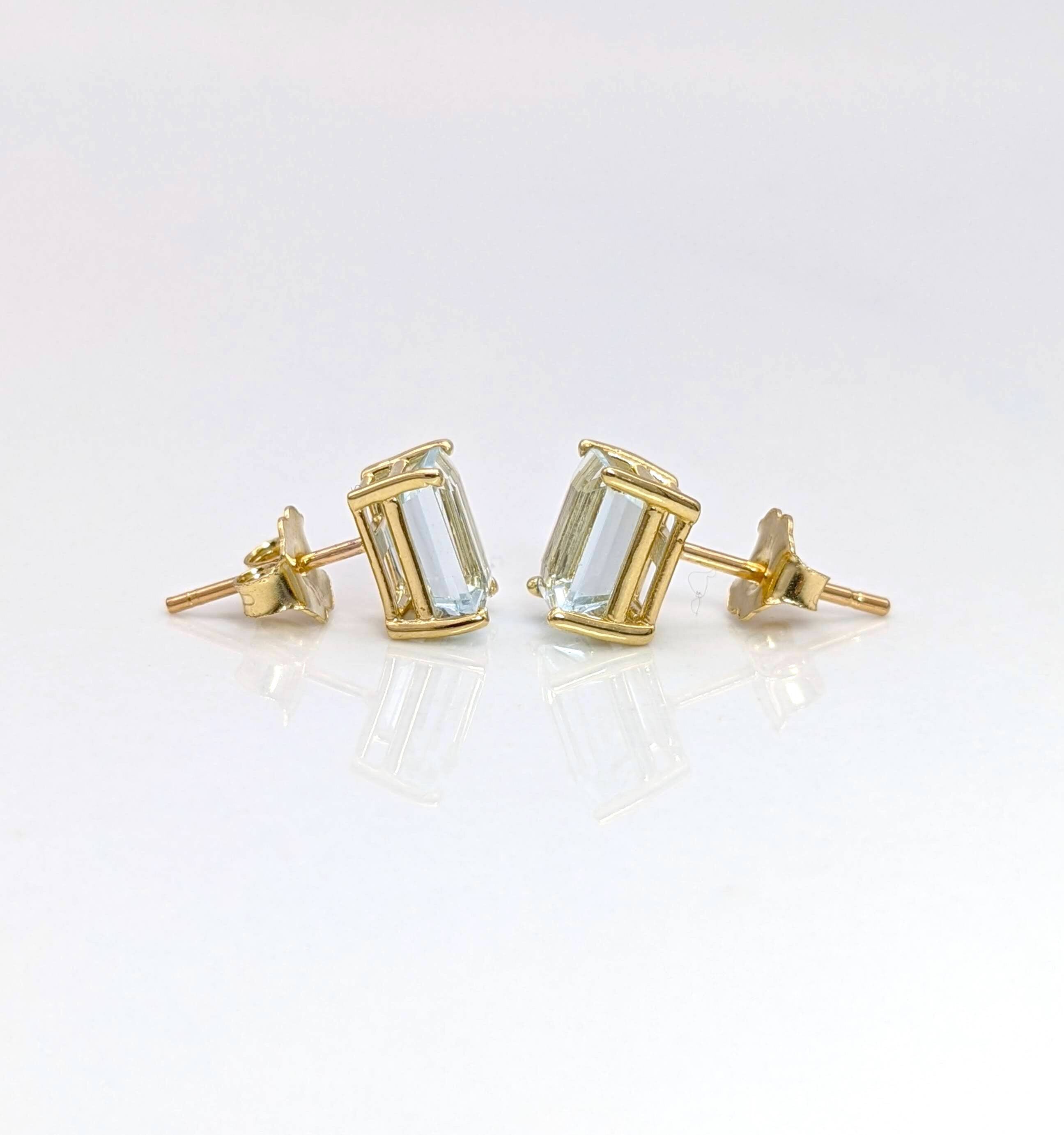 Aquamarine Solitaire Studs in Solid 14K Gold | Emerald Cut 7x5mm 8x6mm