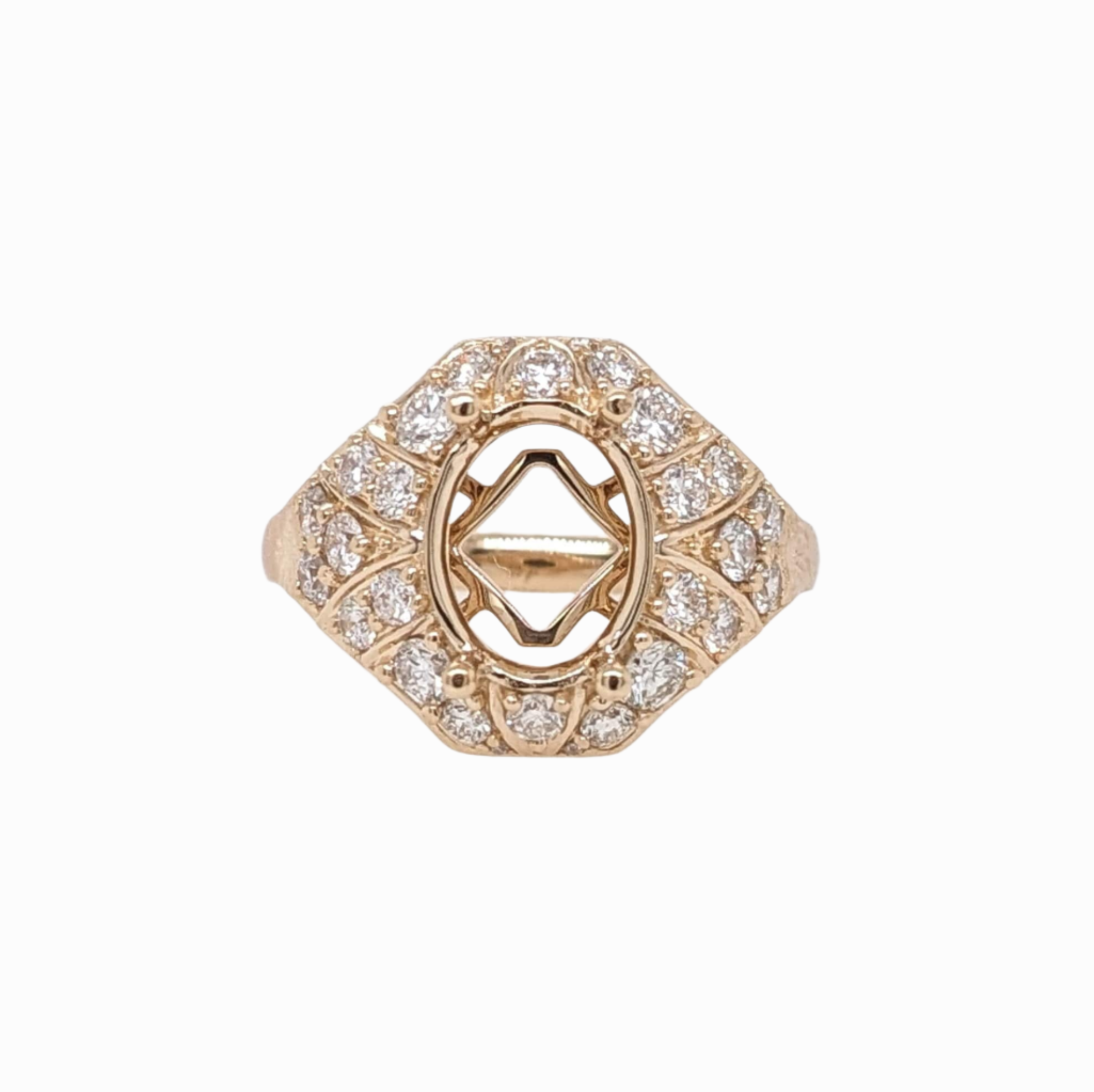 Art Deco Style Ring Setting W Earth Mined Diamonds in 14K Solid Gold | Oval Cut