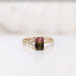 Asymmetrical Diamond Accented Ring Setting | Emerald Cut 6x4mm 7x5mm 8x6mm