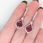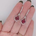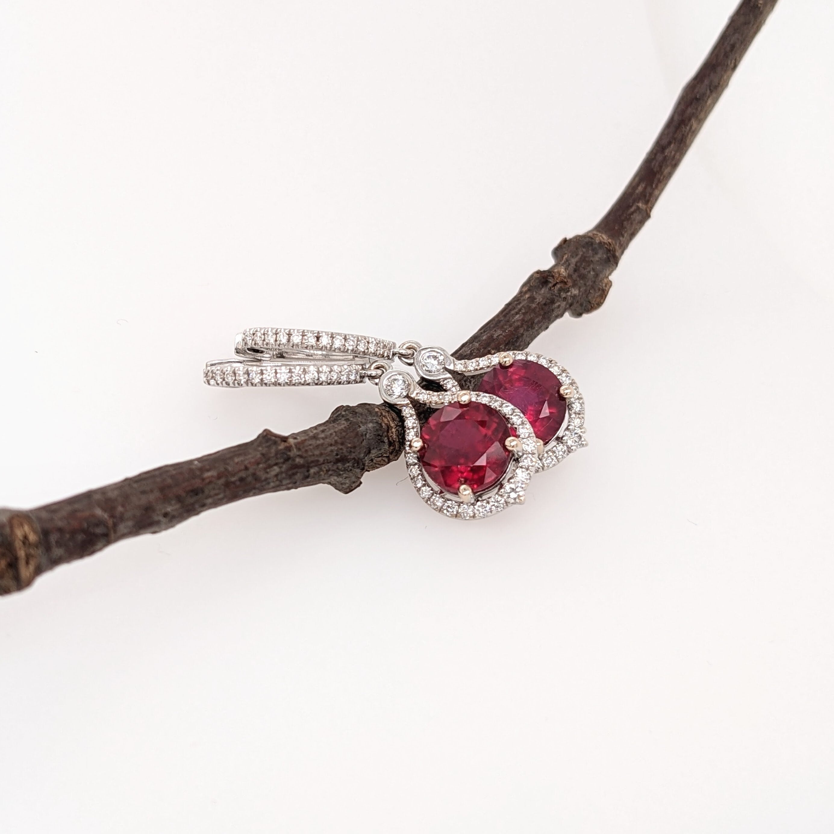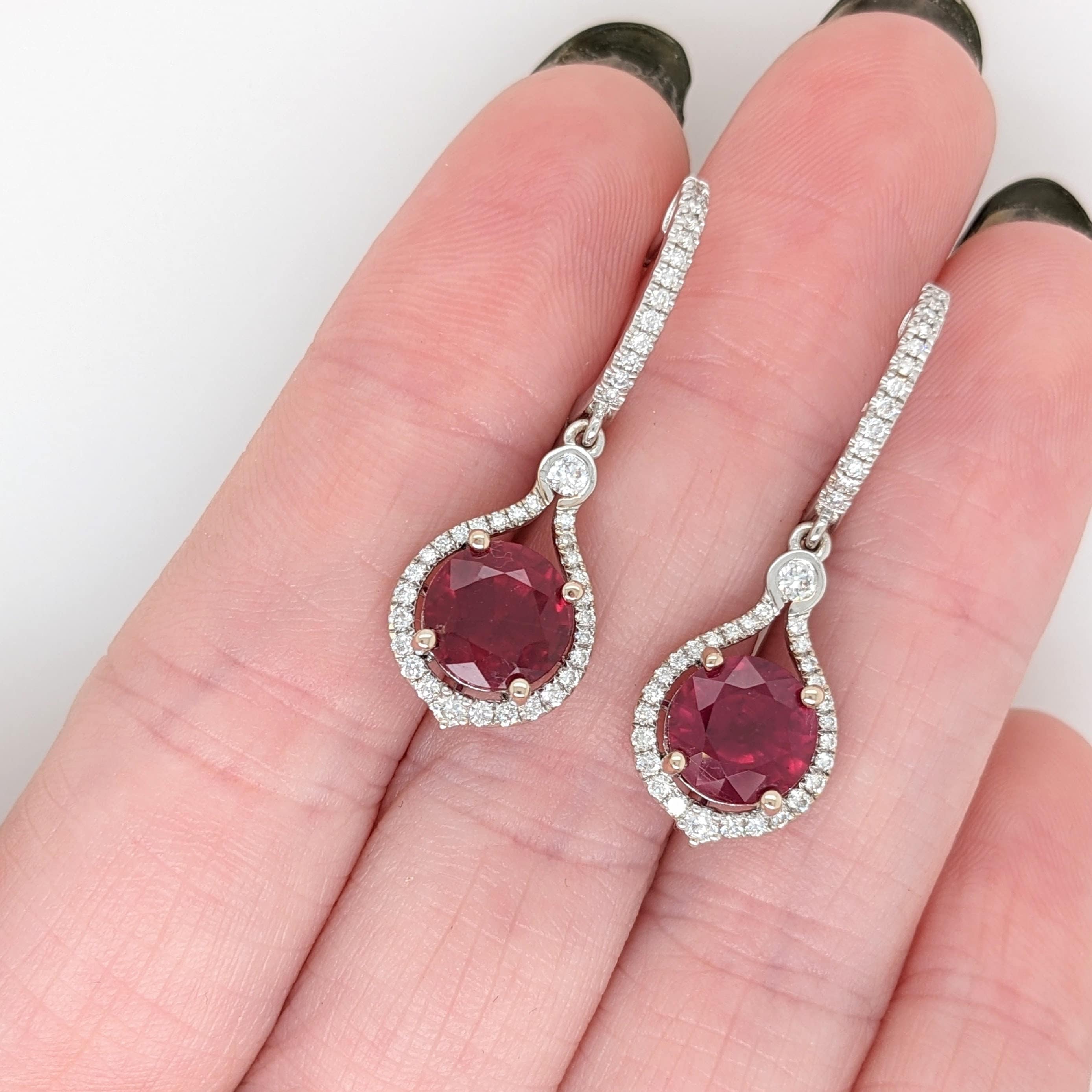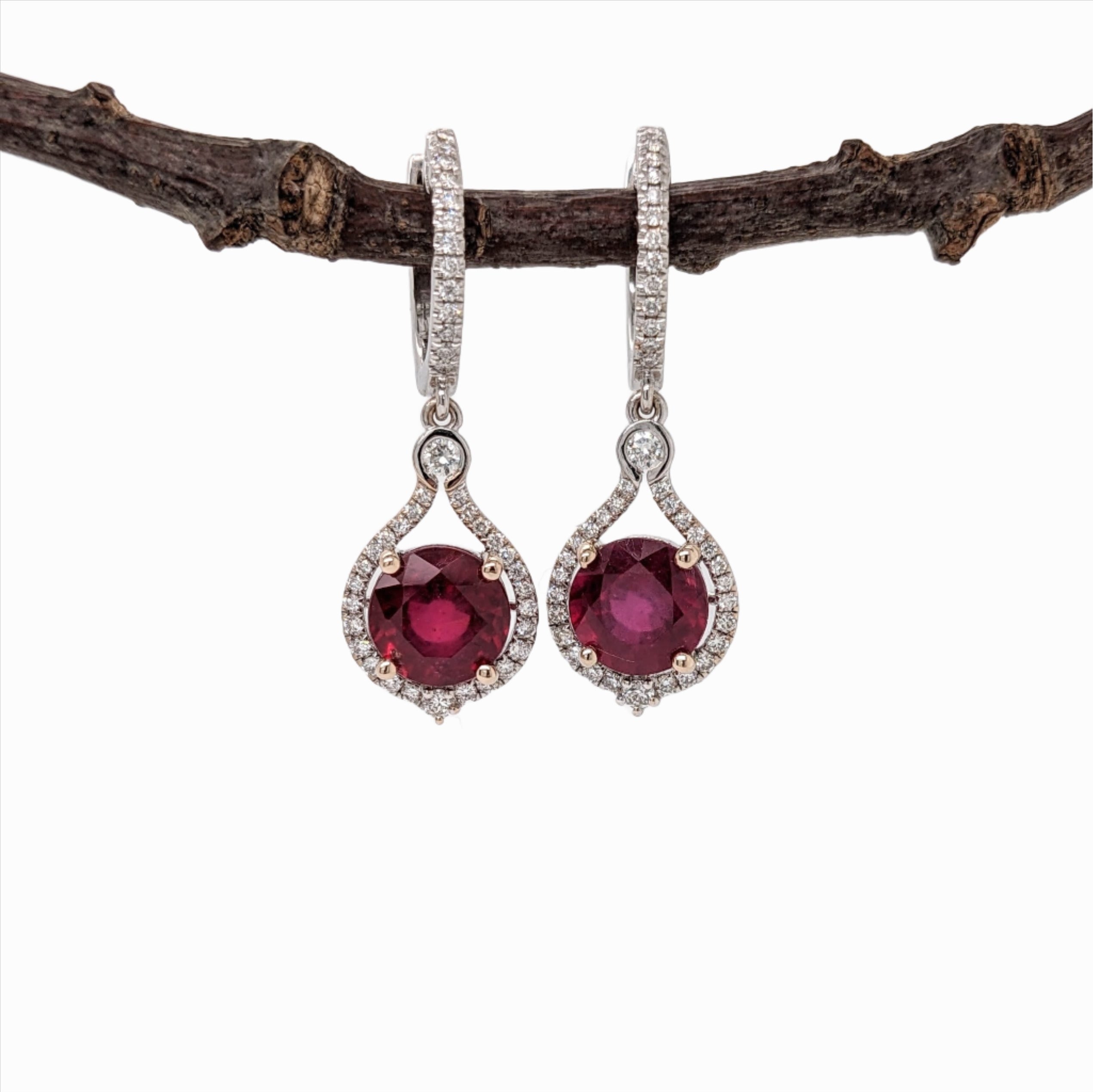 Attractive Red Ruby Dangle Earrings w Diamond Accents in Solid 14K Gold | EM 8mm