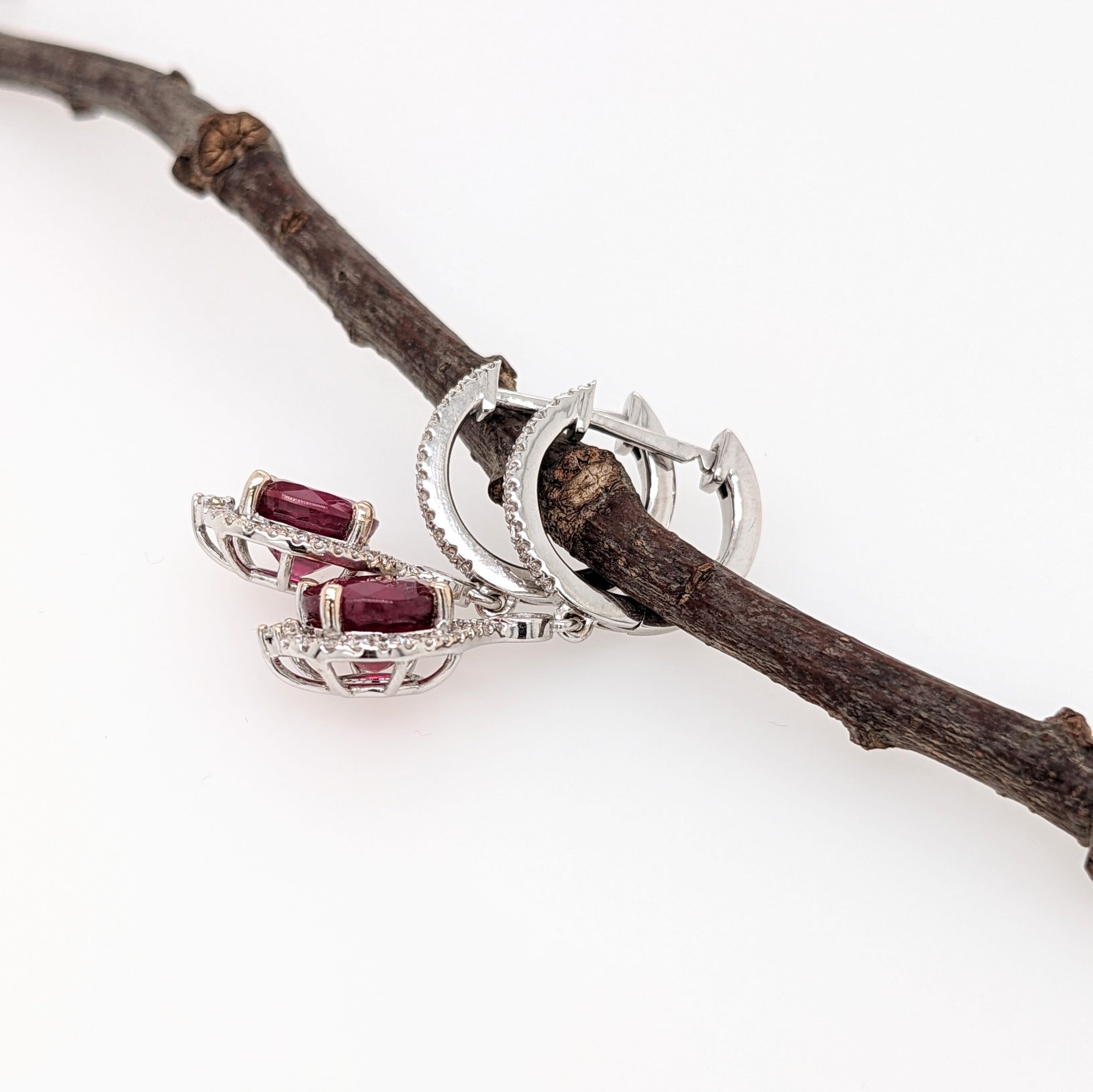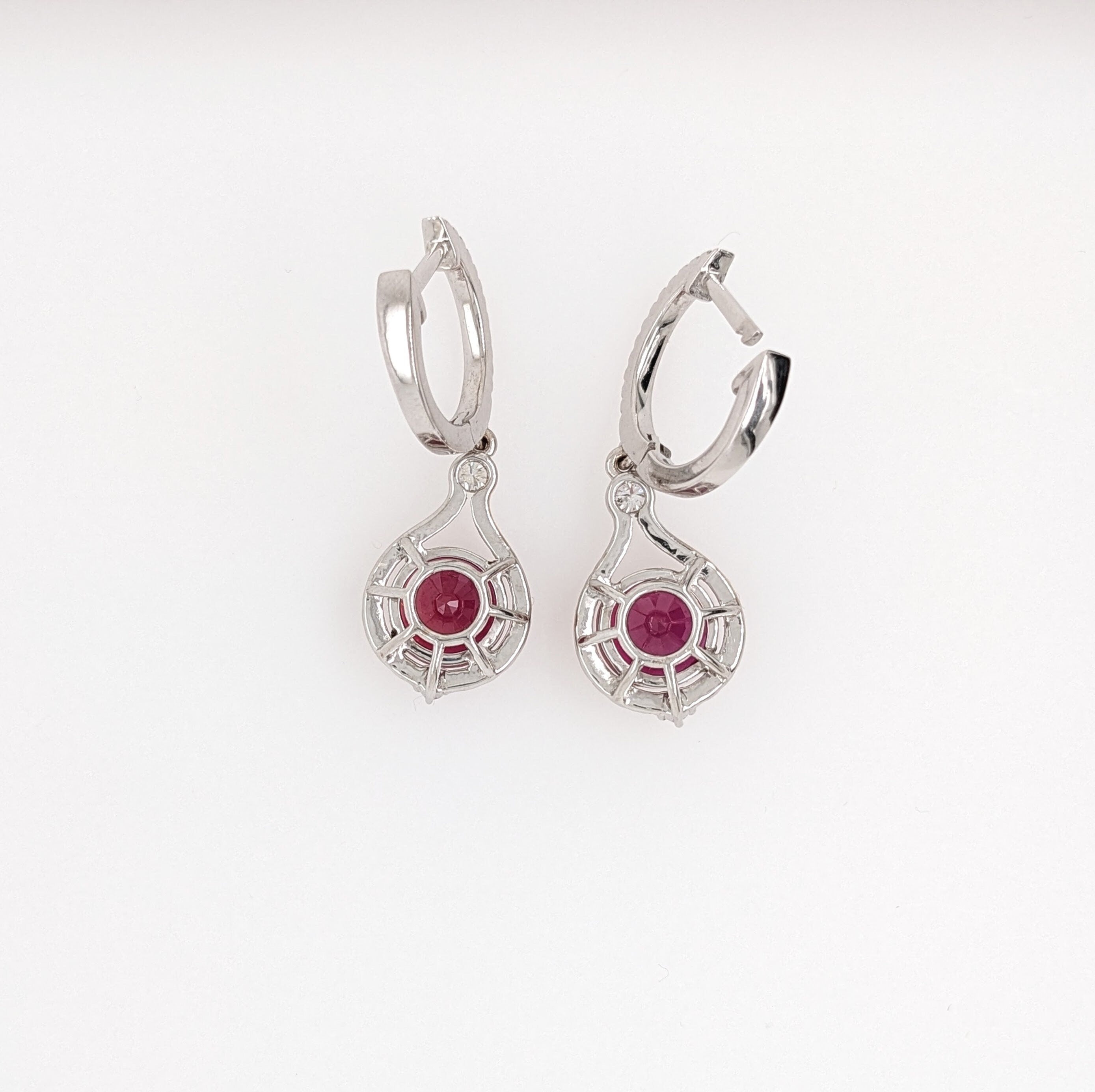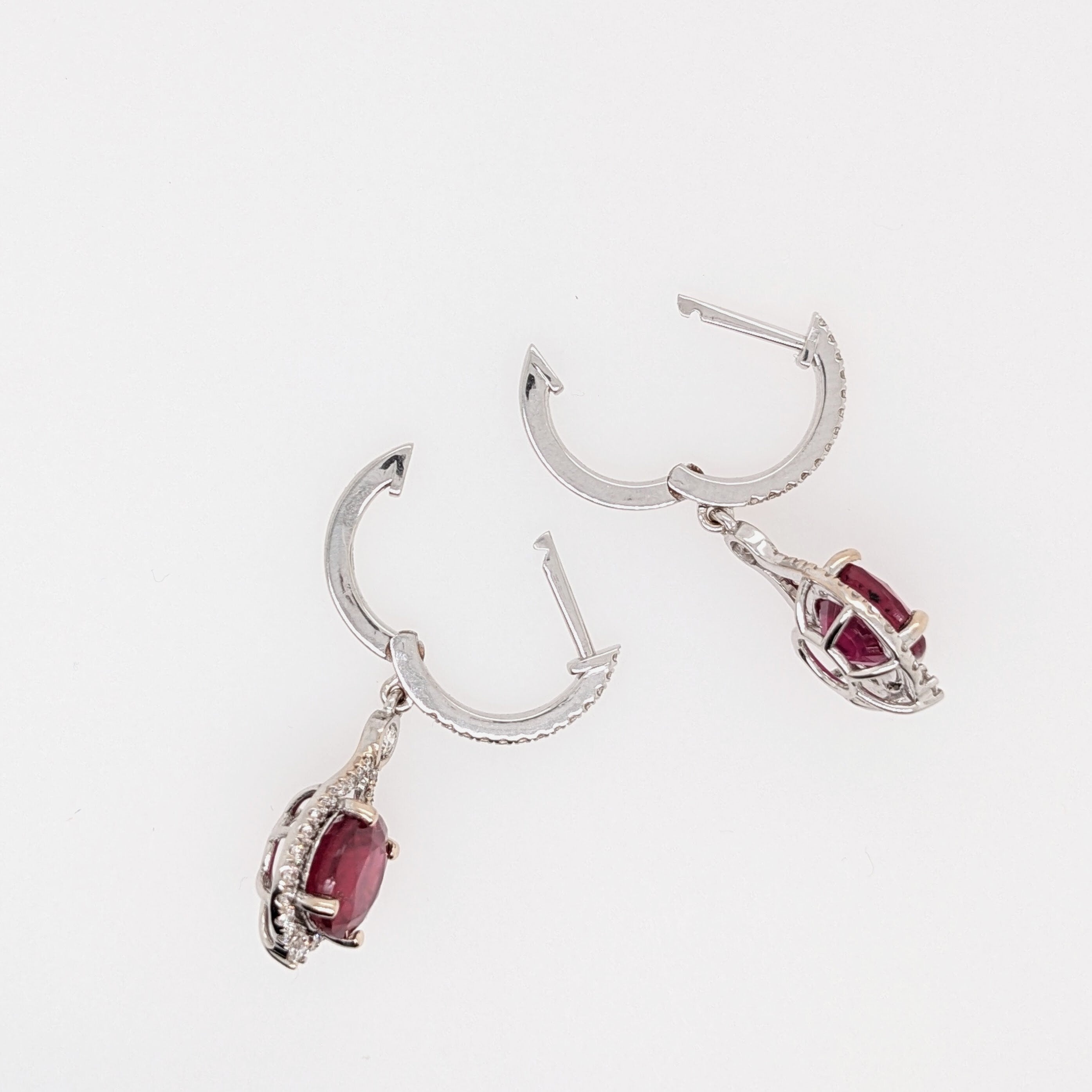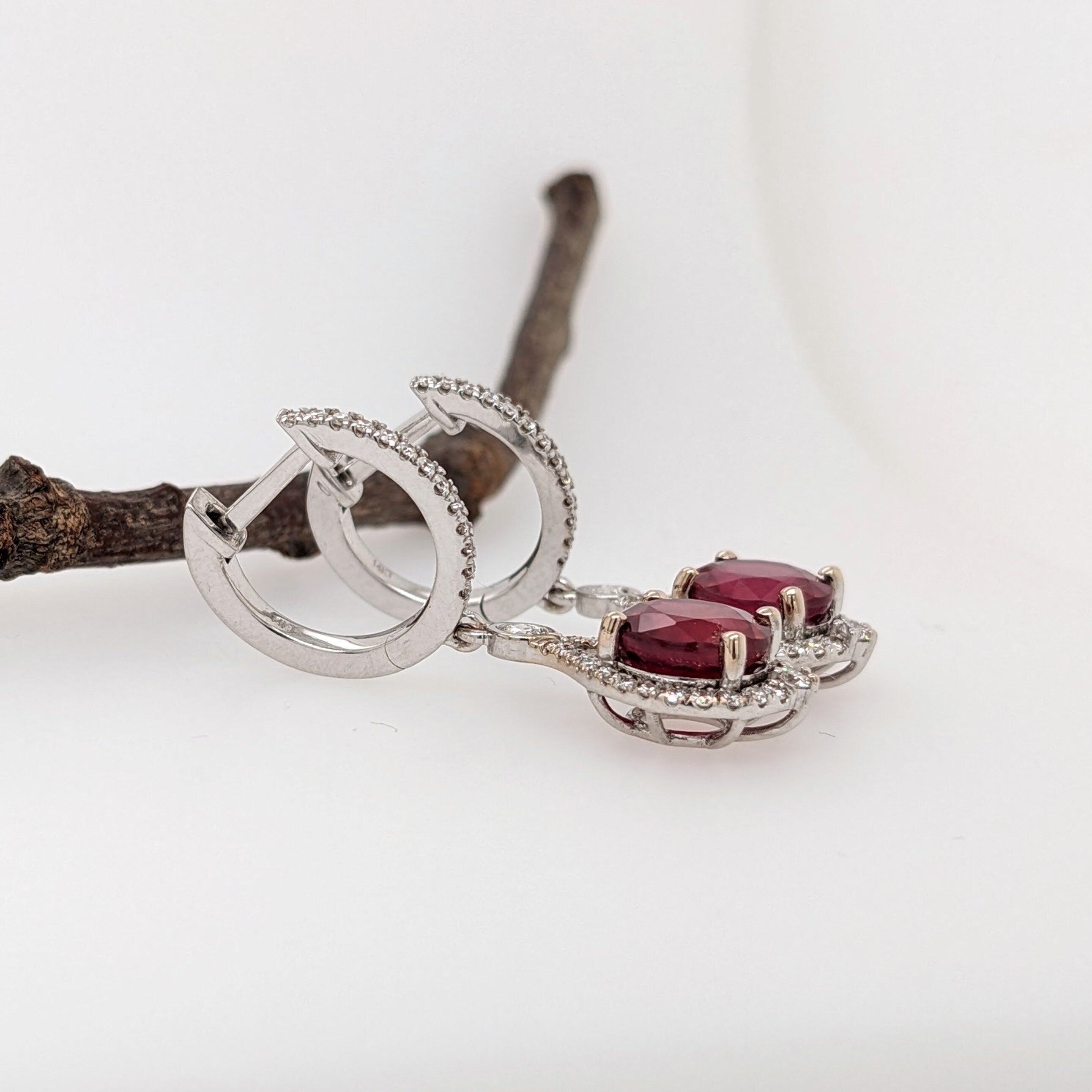 Attractive Red Ruby Dangle Earrings w Diamond Accents in Solid 14K Gold | EM 8mm