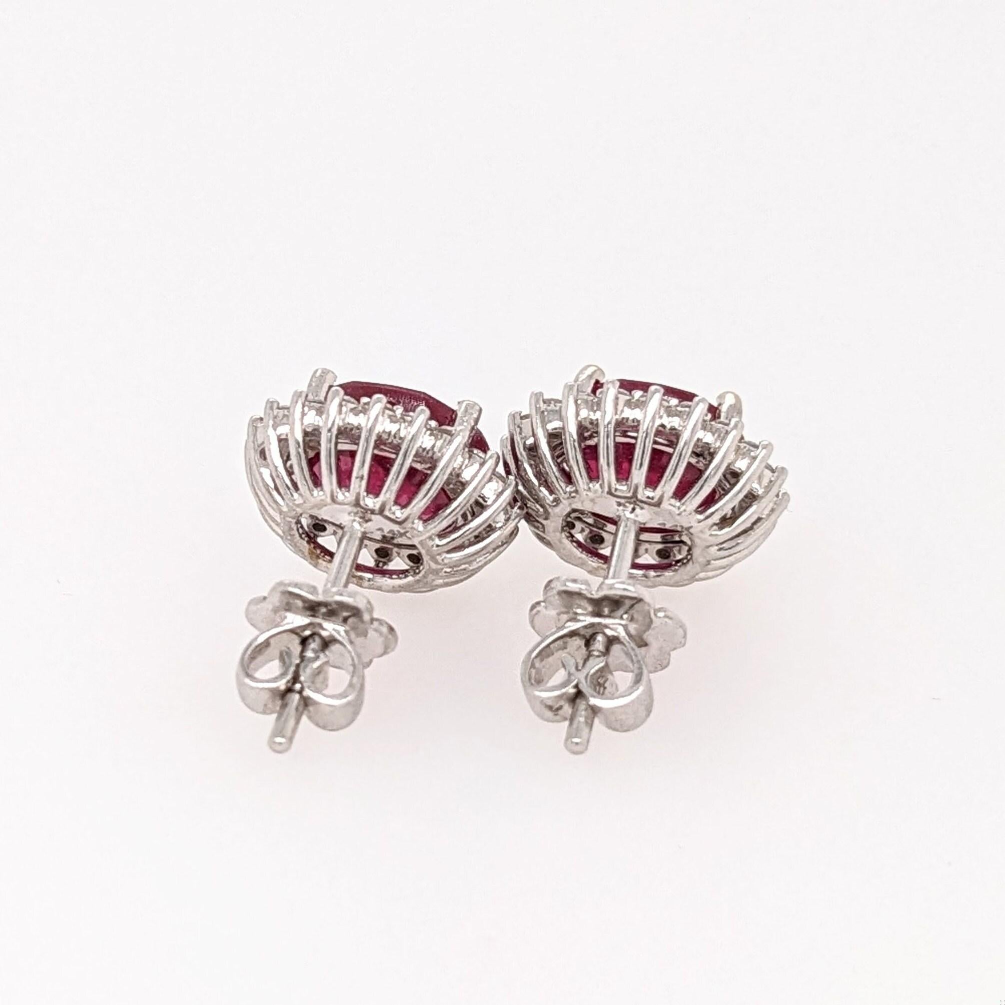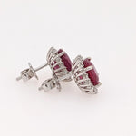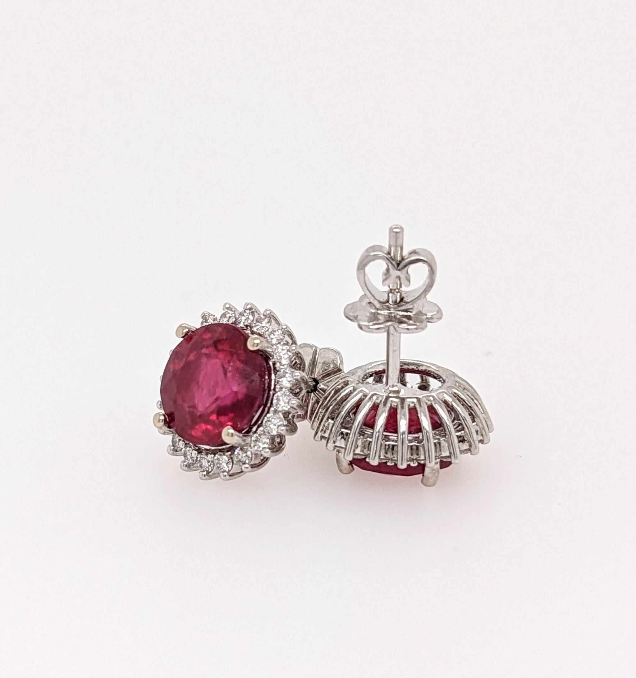 Beautiful Ruby Stud Earrings w Earth Mined Diamonds in Solid 14k Gold Round 10mm