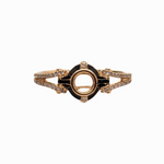 This beautiful ring setting features a round center setting with the stone of your choice along with earth mined diamond accents and black enamel to enhance its beauty set in 14k solid gold. We can customize this semi mount to fit the center stone of your choice!