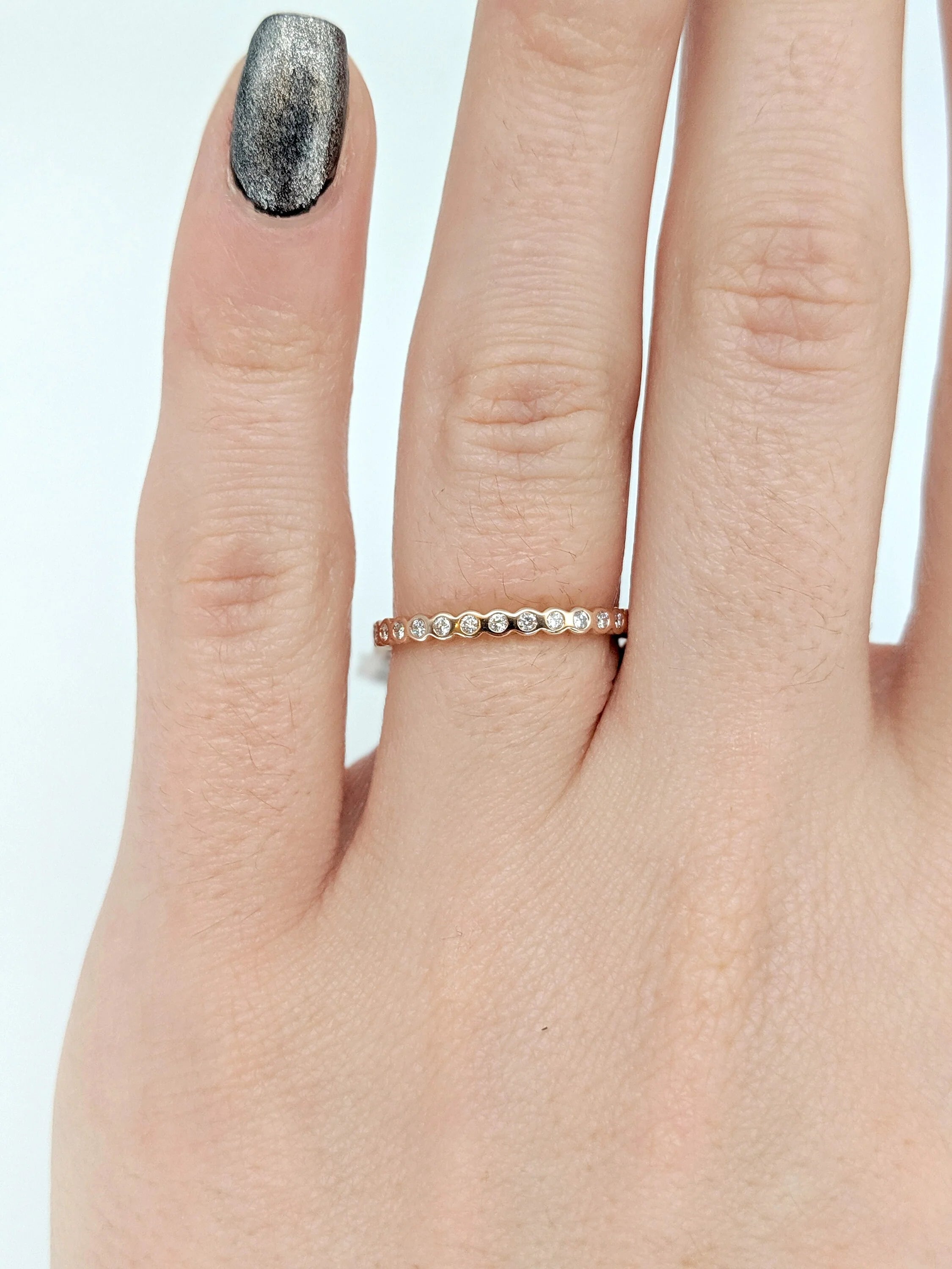 A Bezel-Set Simple Diamond Band Stacking/Wedding Ring in any color 14K Gold. The perfect accent for stacking, for special occasions, or wedding bands!