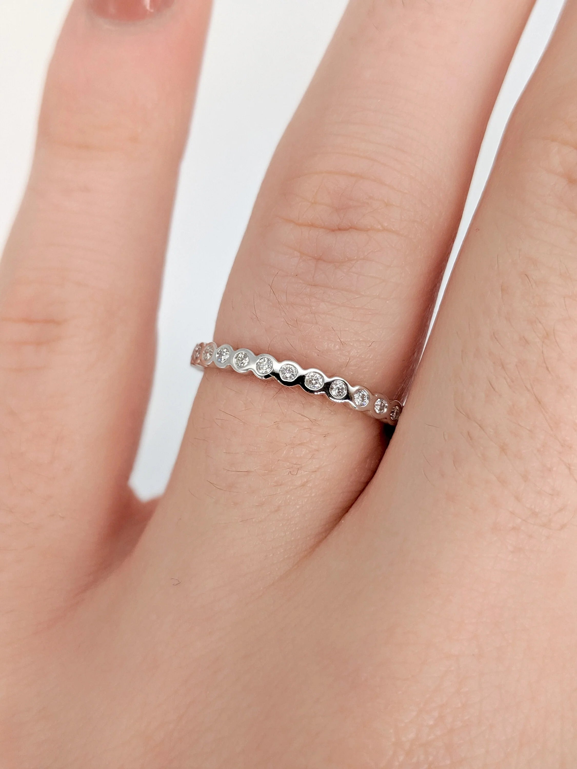 Bezel Set Diamond Band in 14K White, Yellow or Rose Gold | Stackable Ring | Wedding Band | Engagement Band | Promise Band | Sizable