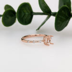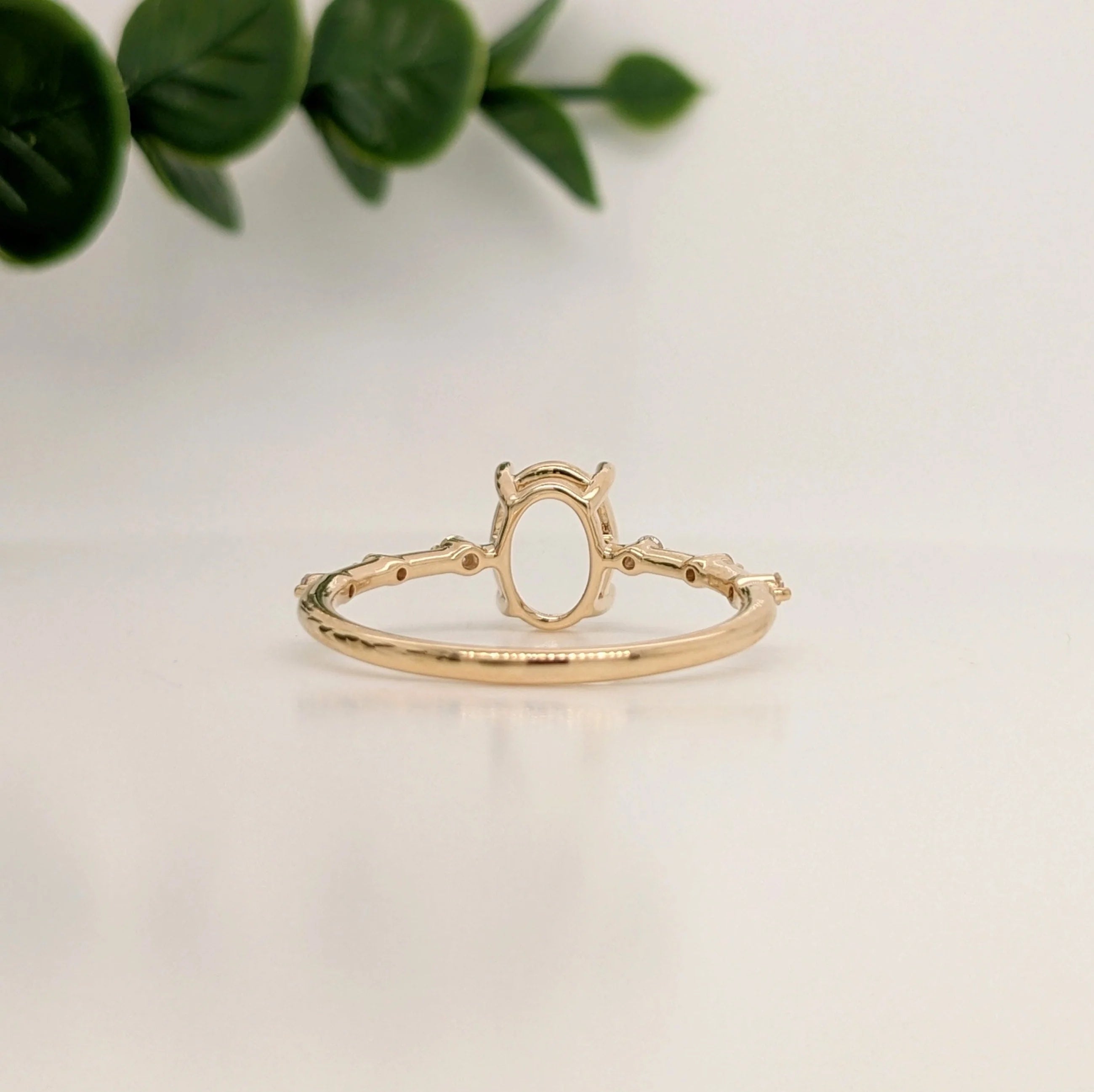 Classic Solitaire Ring Setting with Minimalist Trio Diamond Accented Shank 14K Gold | Oval