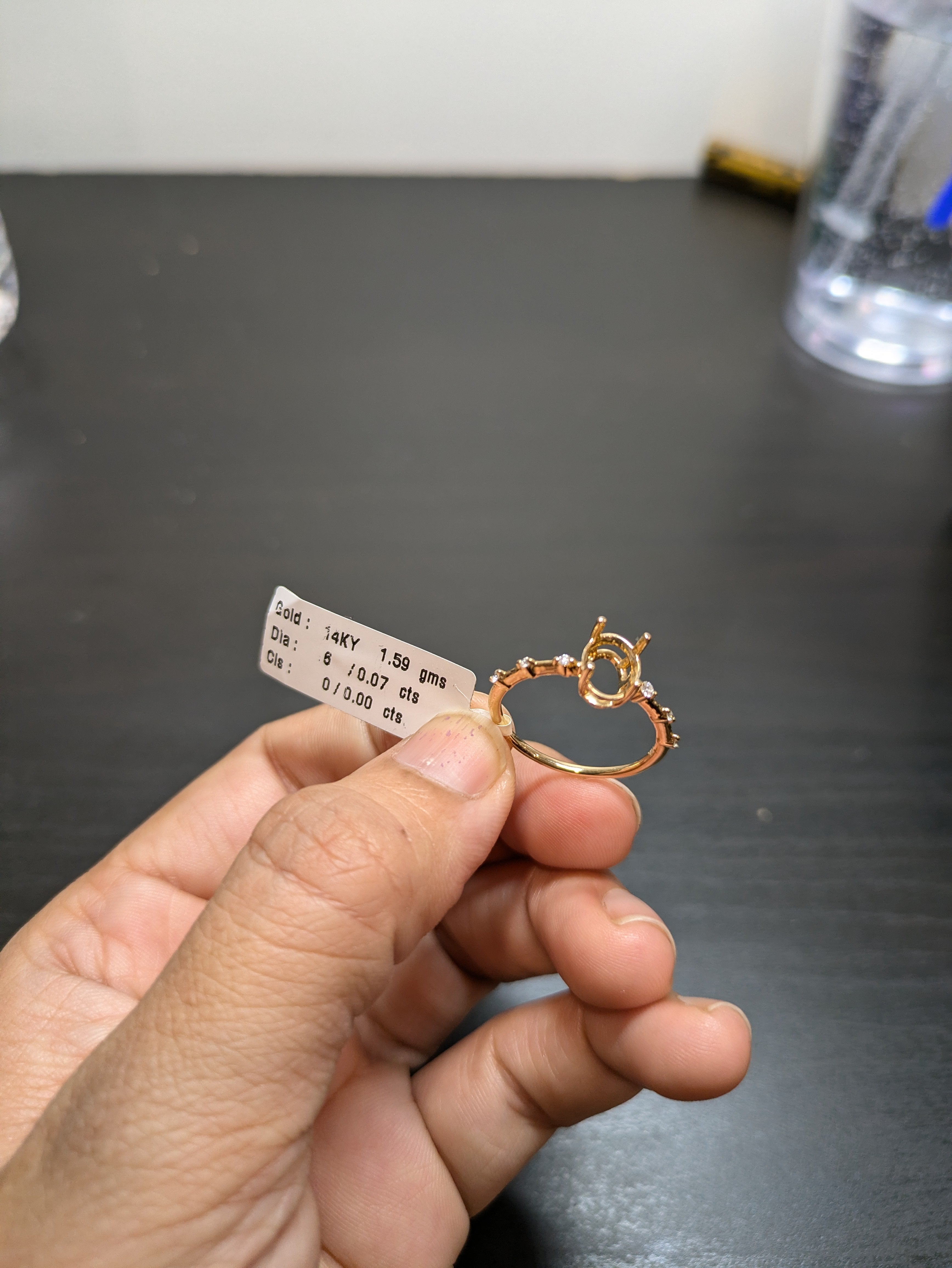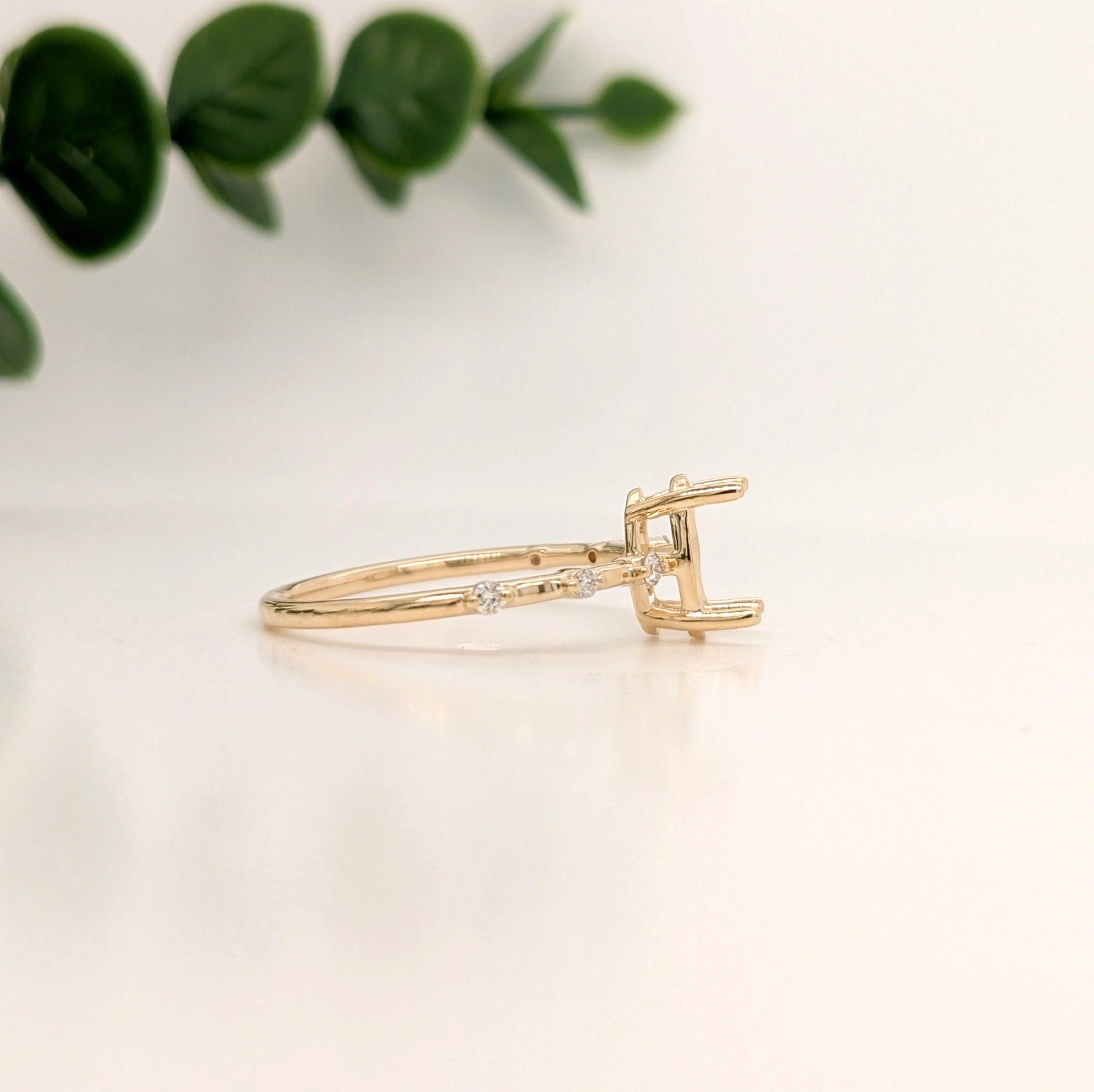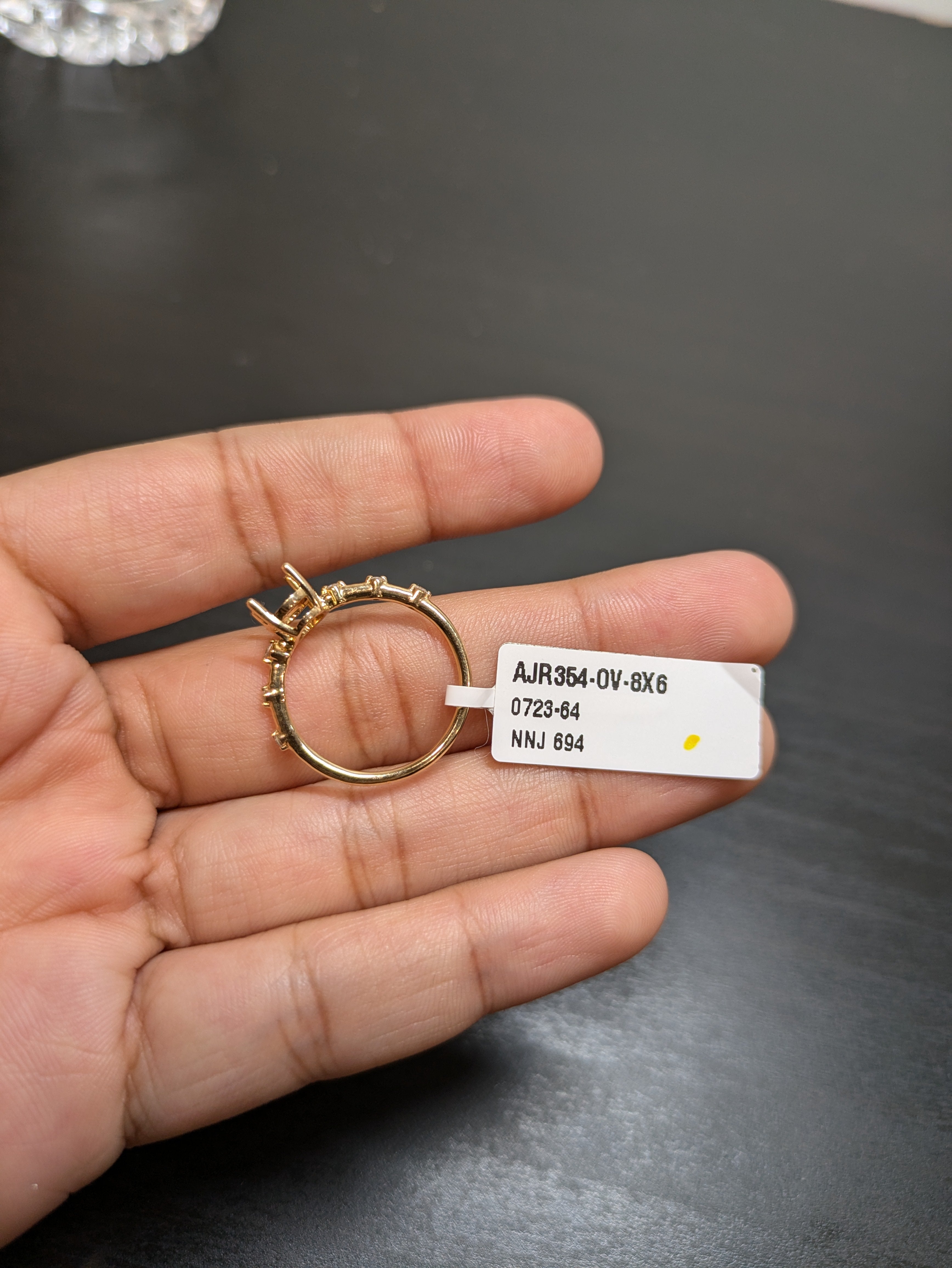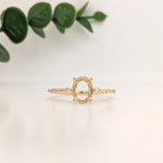 This classic 14K gold ring semi mount features an oval basket with a trio of diamond accents design on the shank. A dainty ring design perfect for an eye catching engagement or anniversary. This ring also makes a beautiful birthstone ring for your loved ones. Available in multiple colors of 14K Gold: Yellow, White and Rose
