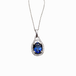 Cute Blue Sapphire Pendant with Natural Diamond Accents in 14K Solid Gold | Oval Shape | Customizable