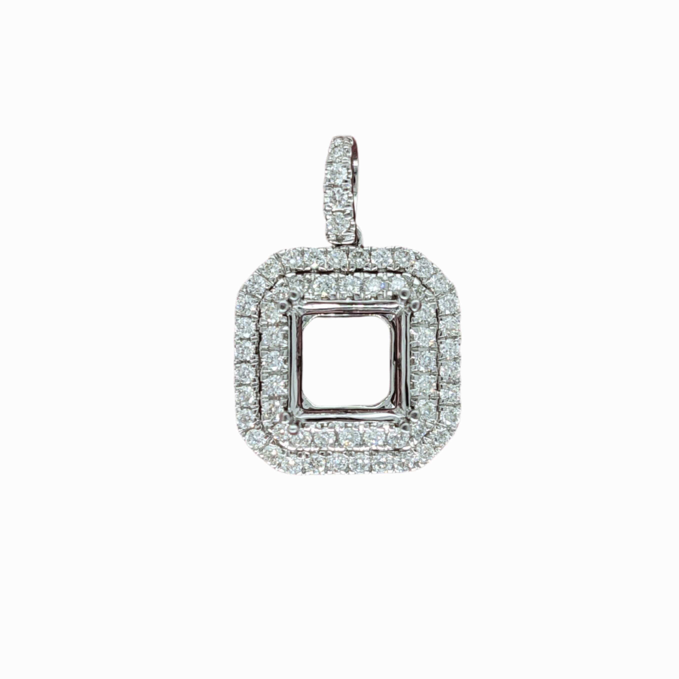 Cute Double Halo Pendant Setting W Natural Diamond Accents in 14K Solid Gold | Princess Cut