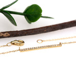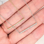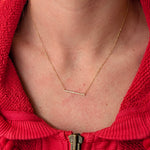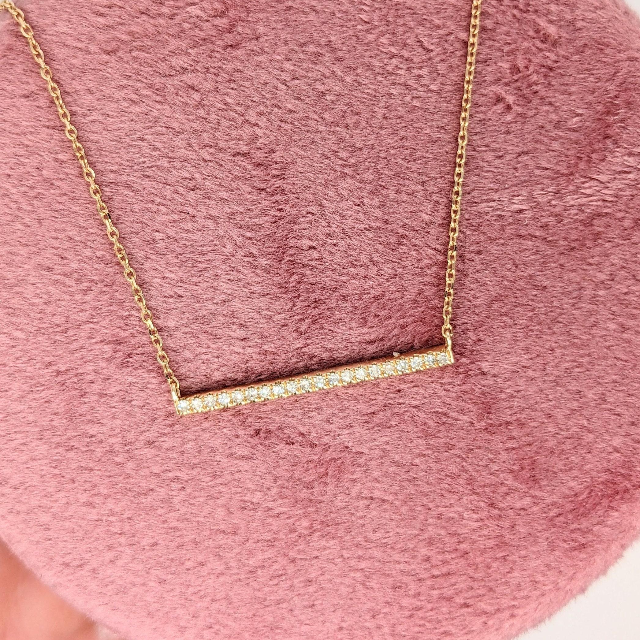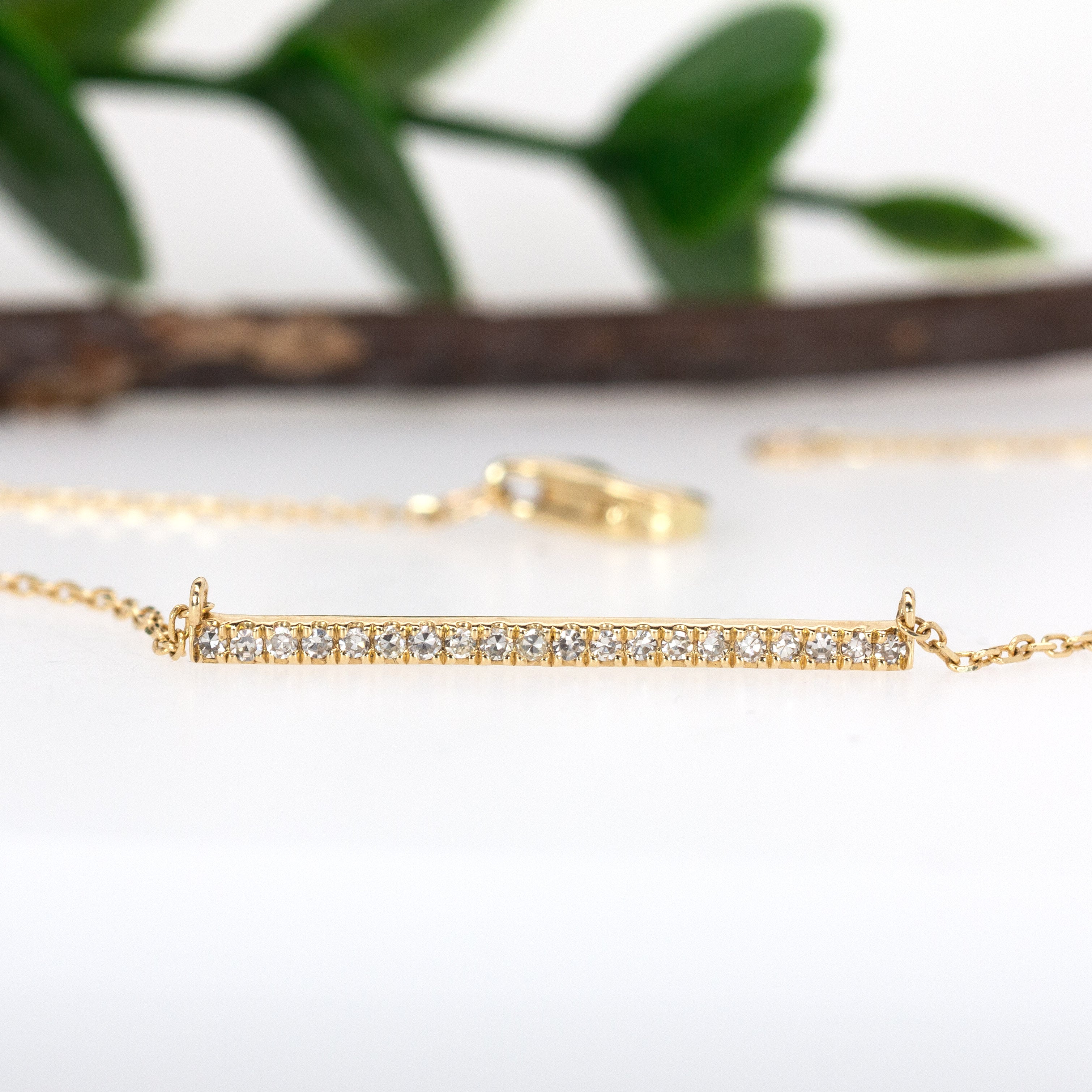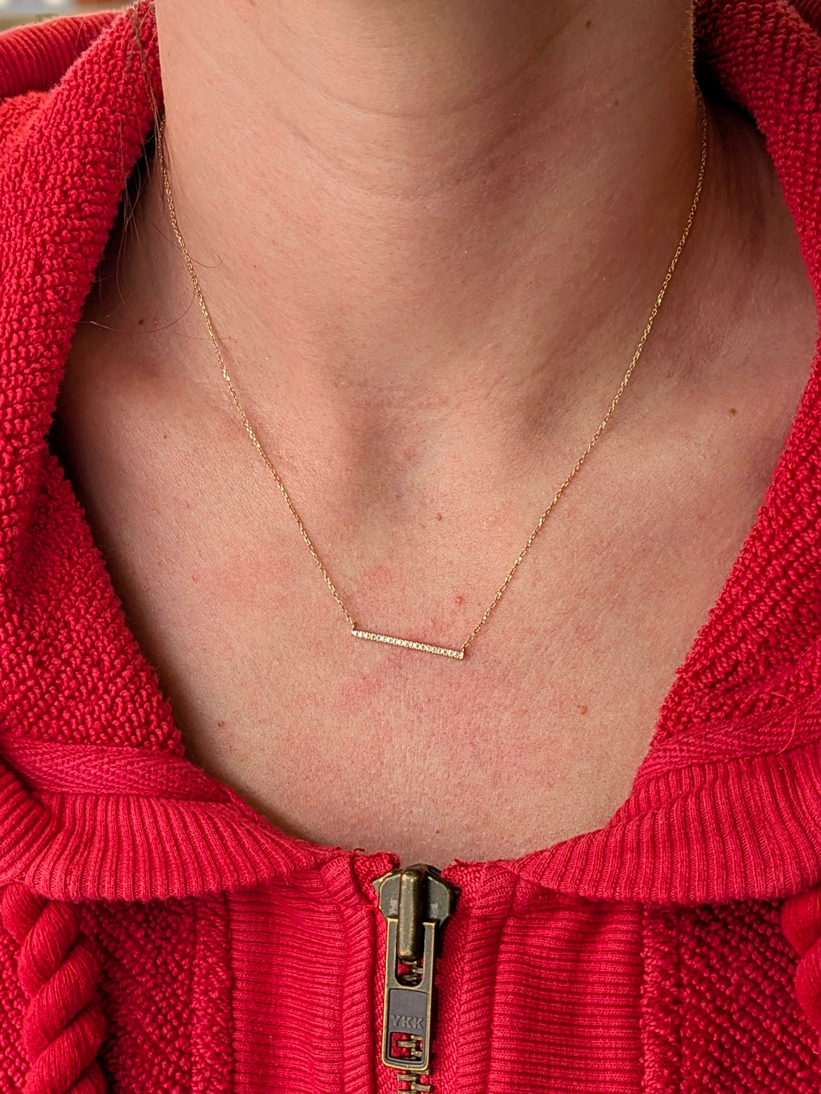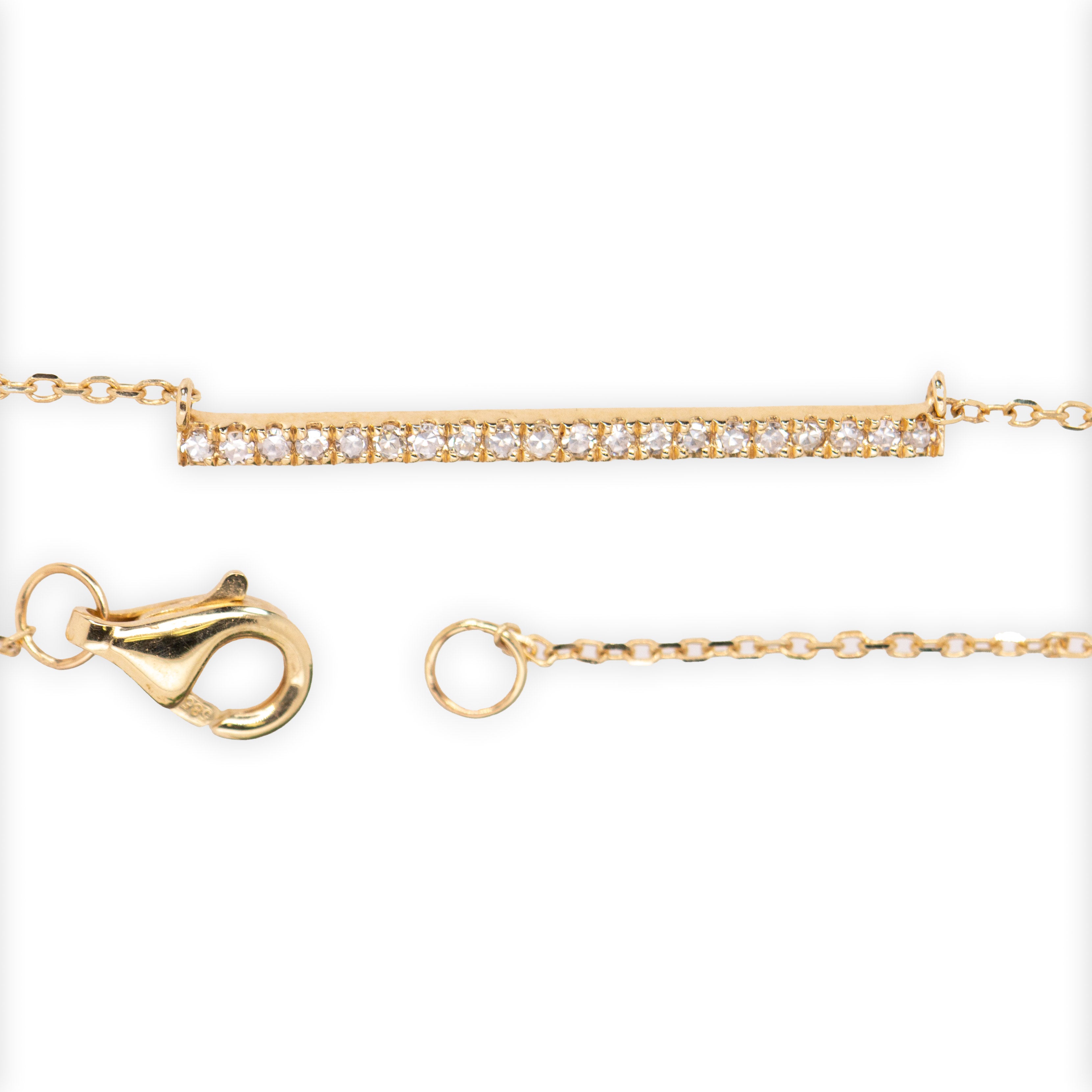 This everyday-wear necklace is make with solid 14k gold and natural, earth-mined diamonds. Available in 14k yellow gold or 14k white gold.