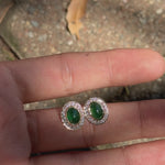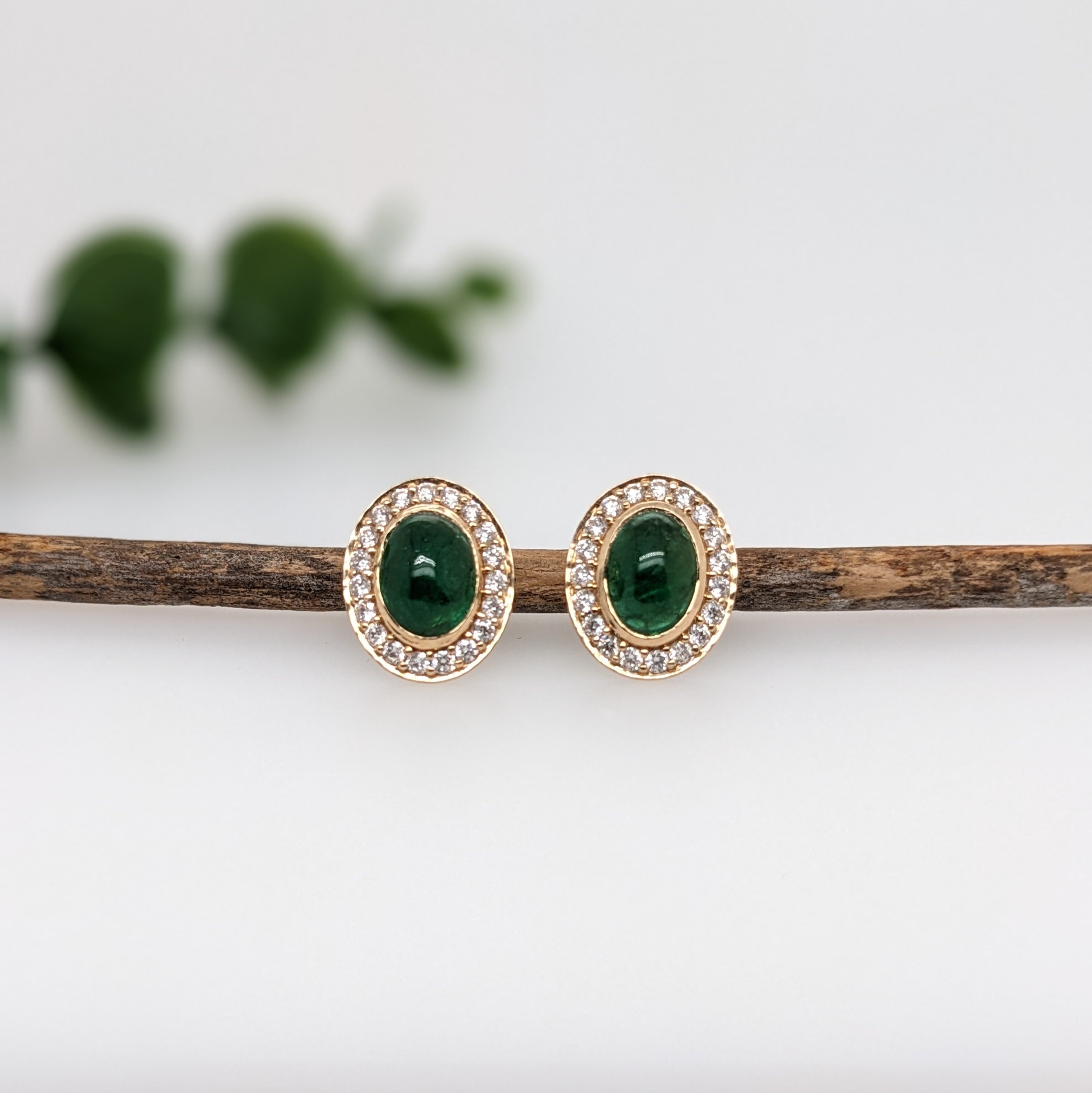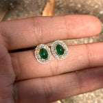 Emerald Stud Earrings w Earth Mined Diamonds in Solid 14K Yellow Gold | Oval 8x6